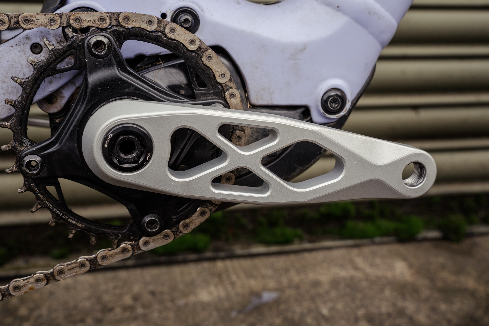 Short cranks. They’re very much in vogue at the moment. And I’m here for it. Pedal strikes are not nice. Having said that, I can’t seem to get used to cranks shorter than 160mm. Which is fine, because these very distinctive cranks from 5DEV are 160mm long (short?). Pedal strike is actually the instigating reason for getting these in for review; we’ve bent pedals and knackered pedal threads on the (170mm) cranks that came on this Spesh Levo SL2. And there’s only really 5DEV who do aftermarket 160mm cranks for this bike/motor.