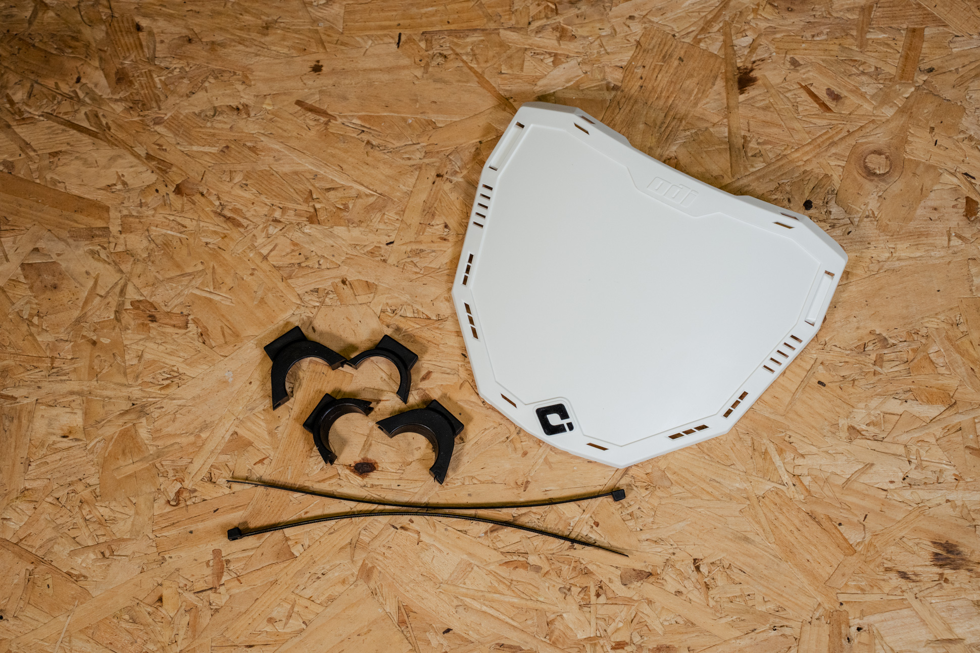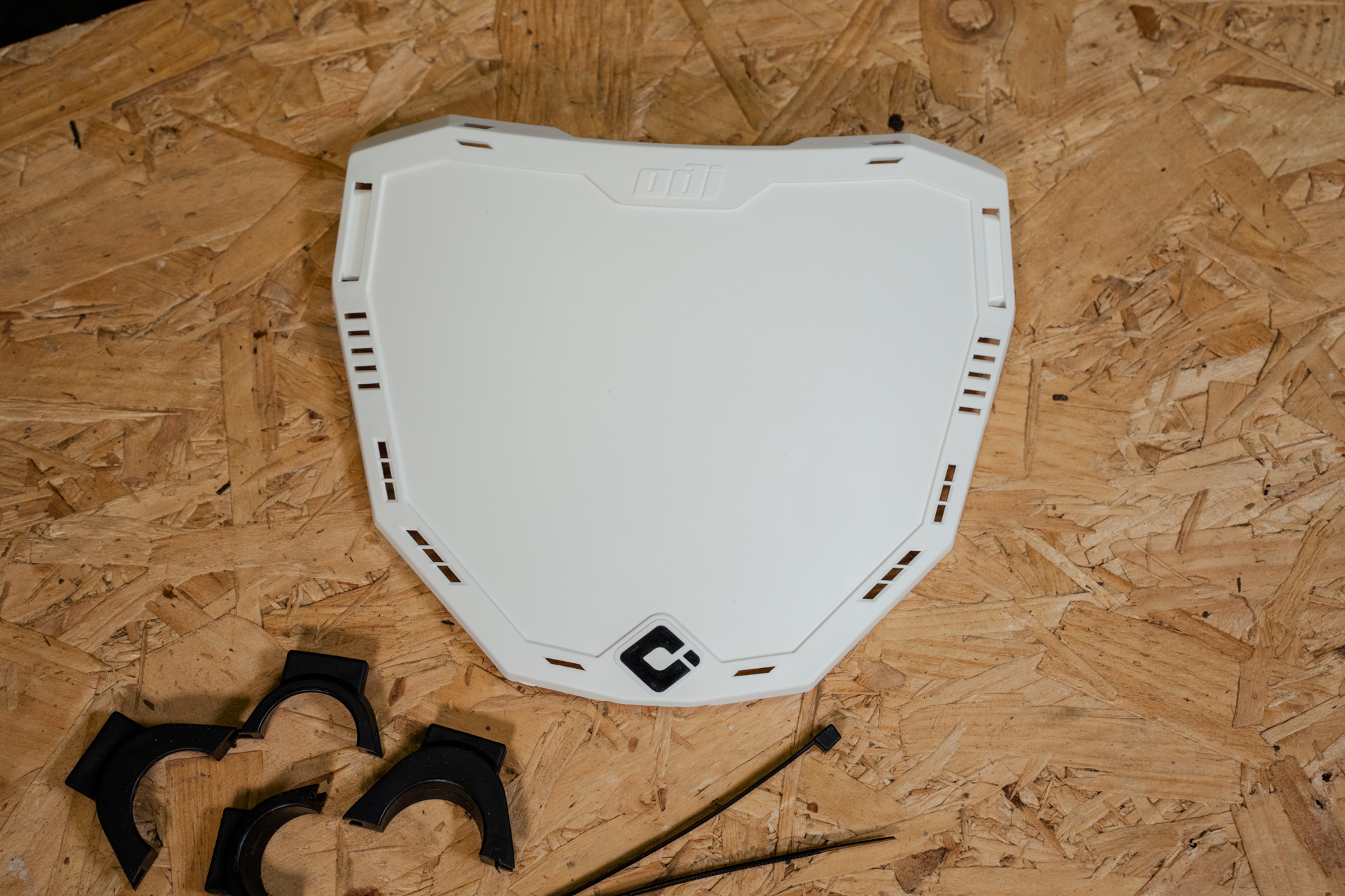 We’ll hand this over to our Aran to use in the imminent race season. ODI: “offset mounting system allows the number plate to sit at difference distances from your handlebars allowing cables to be routed in front or behind it. The Universal Number Plate will fit almost any handlebar. Durable but flexible reinforced construction and multiple attachment points around the edge make it extremely versatile.” Also available in black or grey.