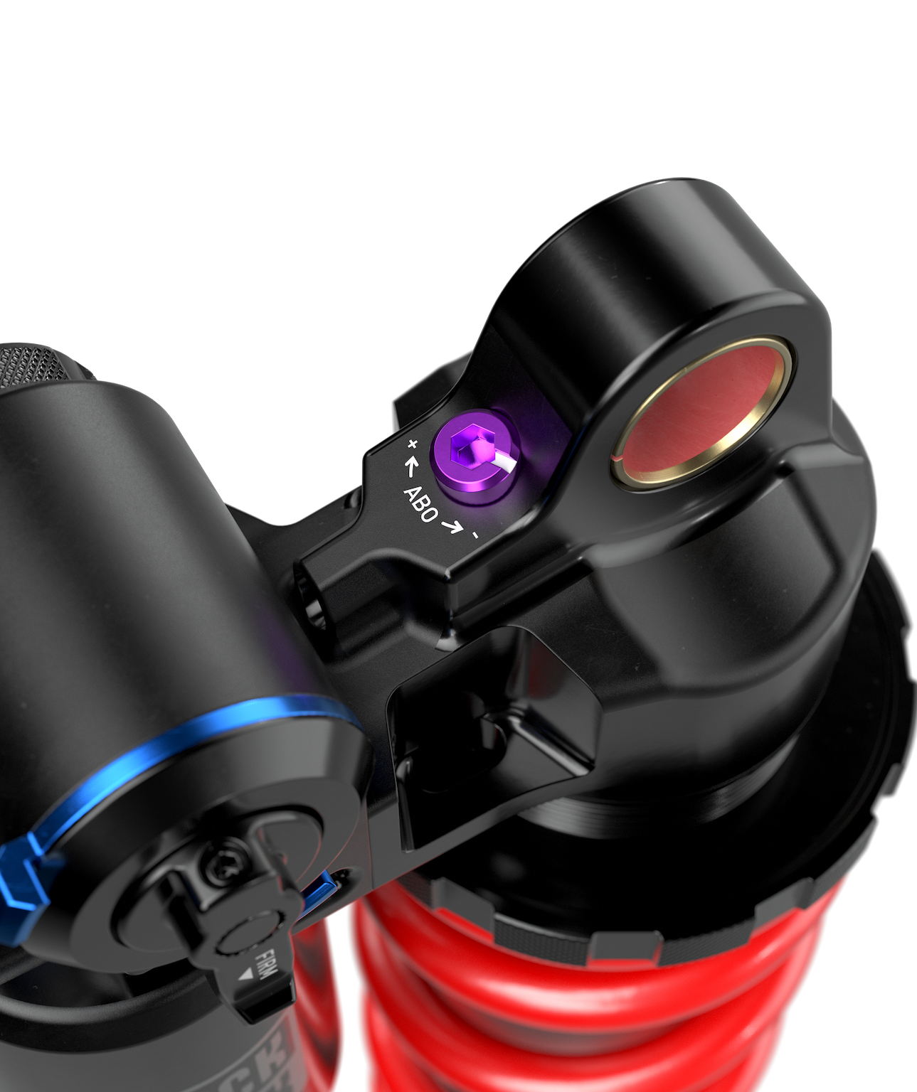 • Adjustable Bottom Out (ABO) offers a convenient dial with five different compression settings to customize the cushioning you experience in the last 20% of travel