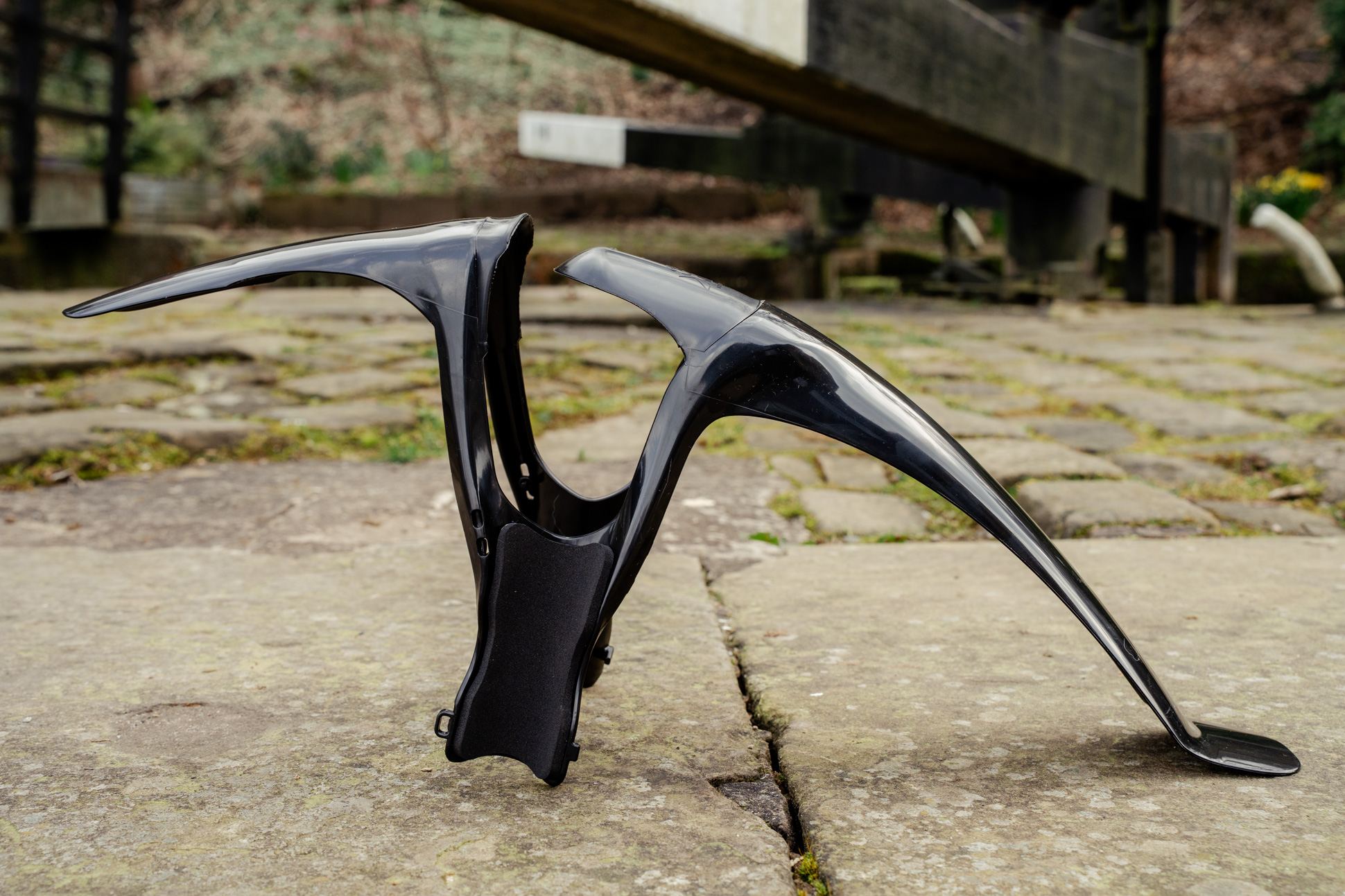 The XLF – not to be confused with Axel F – is a mudguard that I don’t recall ever using before. It looks like it’s got some nice touches. Mainly the fact that it nicely touches your expensive suspension fork. Squidgy rubber pads and O-rings. Other nice features: no zip-ties, full coverage ‘guard, pouty little lip on the rear. ‘Thankfully’ it’s started raining again, so I can get using this straight away. Deep joy.