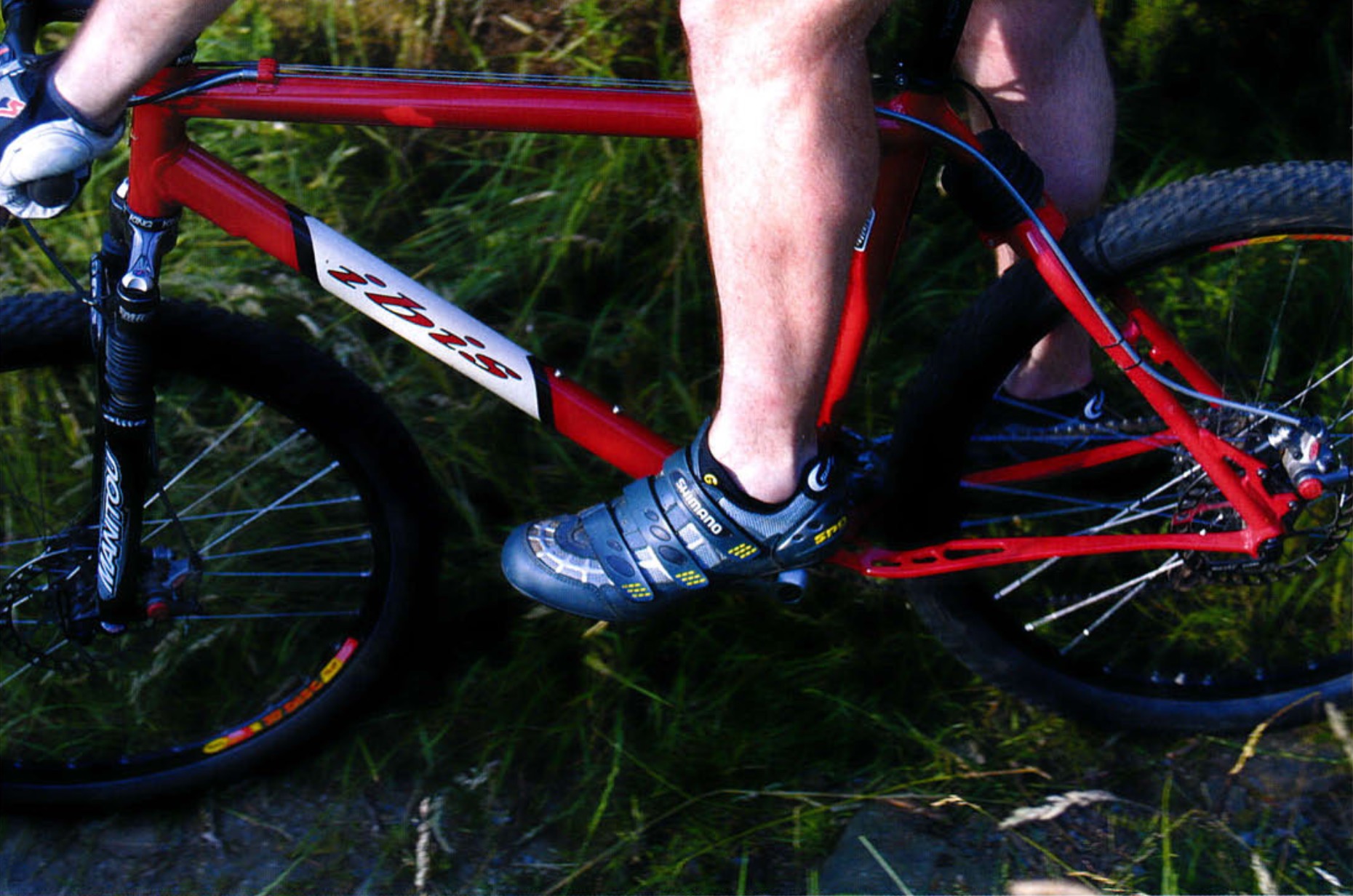Frame // Ibis ‘Moron’ tubing (there’s more-on the end of the tubes, geddit?) TIG-welded double-butted 6061 aluminum alloy mainframe and 6069 rear. Size tested Large 18in C to C, 23.5in top tube