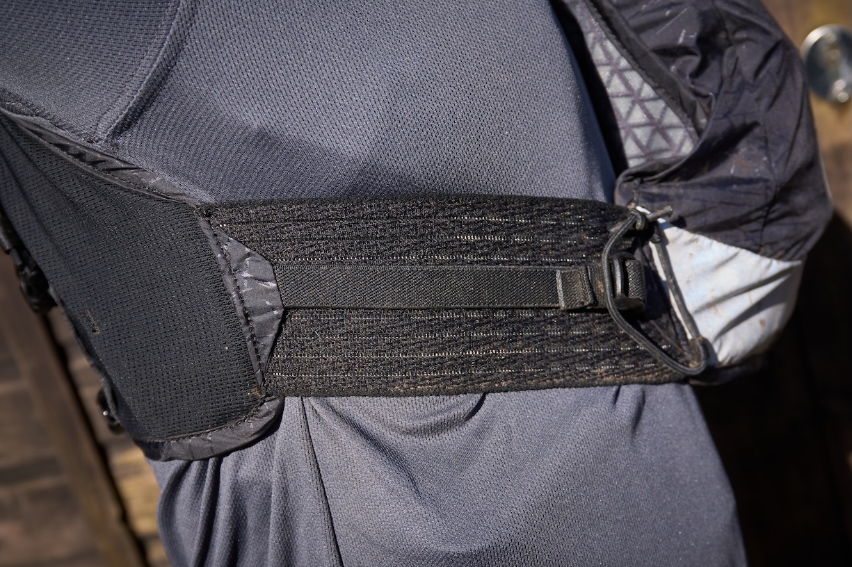 The vest design is also fairly limited when it comes to adjustment, there is only so much stretch to the under arm strap before it becomes tight and restrictive. However, the flipside to this is that when it does fit you, it is incredibly comfortable and stable. The large under arm elasticated straps secure the pack tightly to your back but don’t restrict movement at all.