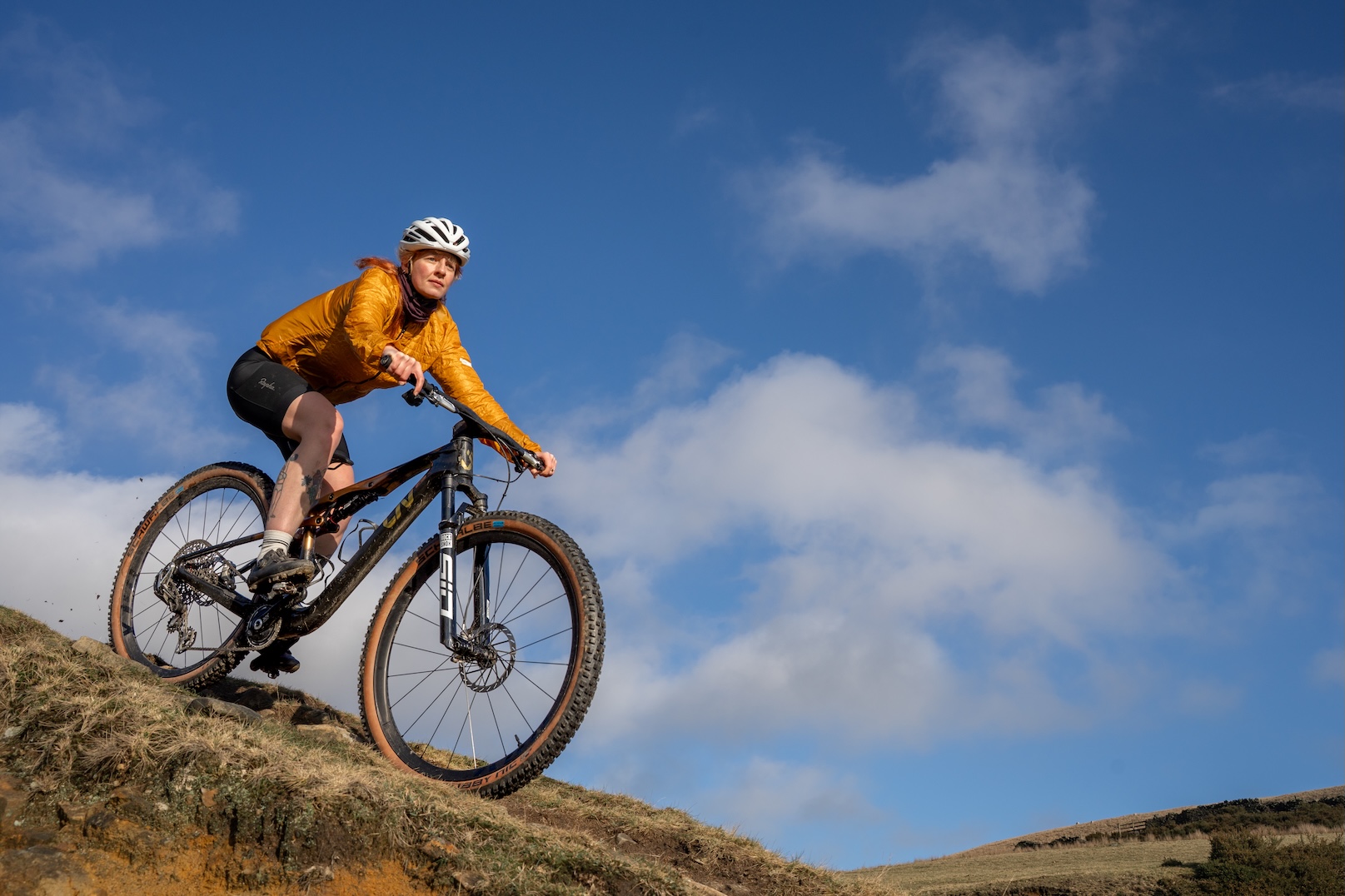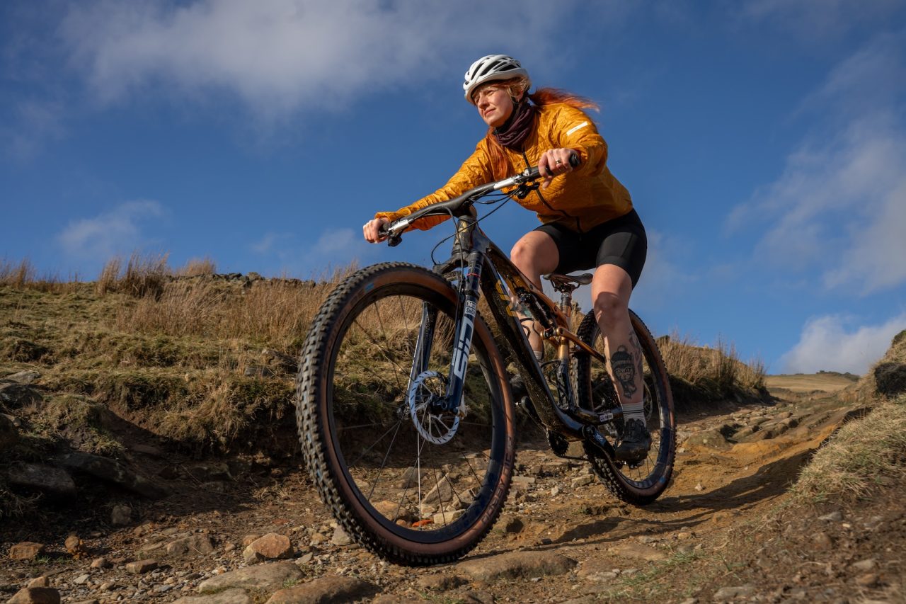 I tested the Medium frame size, rather than the Small. At 5ft 6in, I’m in between these two sizes and after a few rides on the Medium, I’m happy with the reach and don’t feel unduly stretched by the larger frame. I do also appreciate the stability of the slightly longer wheelbase. I usually lean towards more stable trail bikes and down-country bikes, so I was a bit apprehensive about trying something built for cross-country racers. Would it be too twitchy? Would I end up heading straight off course and into the nearest tree? Not at all. Well. There was one tree, but it was at slow speed and entirely down to my own poor line choices…