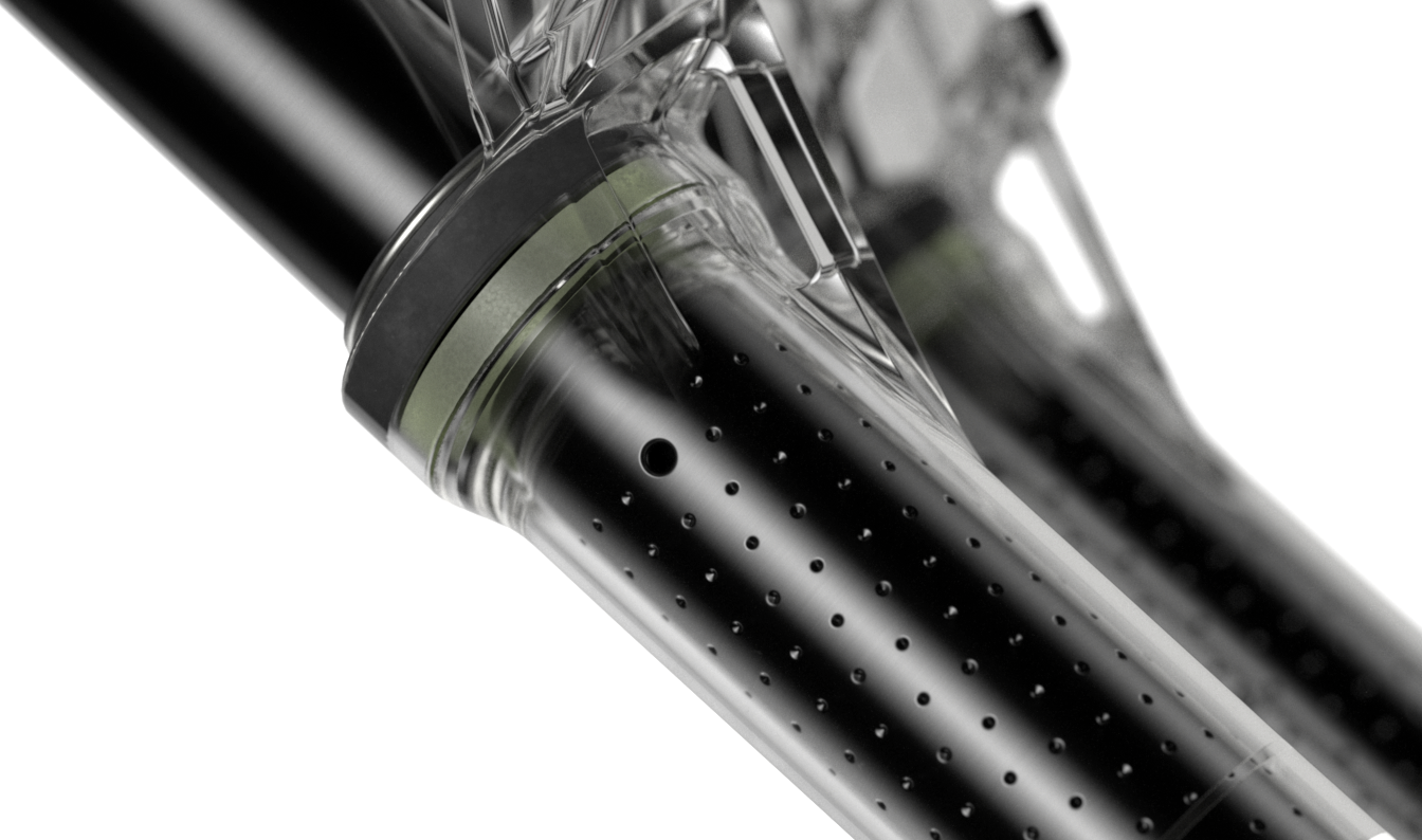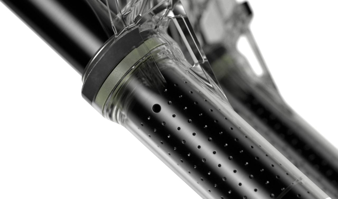 But crucially, there’s less room in the Lyrik for trapped air. Trapped air – where it shouldn’t be at least – in the lowers can be a reason why forks behave inconsistently. It introduces what is essentially ‘air damping’ into the mix. This trapped air – combined with friction from bushing bind and/or ‘dry’ seals – makes a fork behave erratically. There’s also a breather hole in the stanchions allow for the lower leg air volume to increase as the fork goes through its travel.