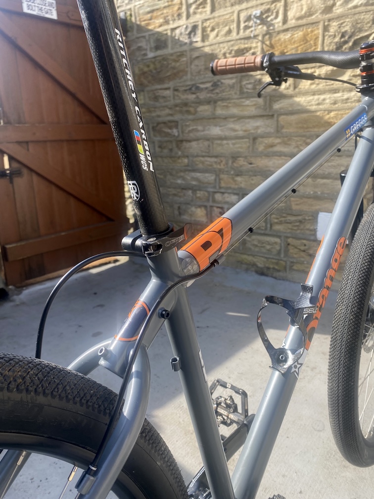 This bike is known as Trigger’s Broom, it’s been through coutless guises over the years and the only original part left on the frame is the seatclamp. I bought a nice Hope one for it, but I’m keeping the original Orange one on, just for posterity.