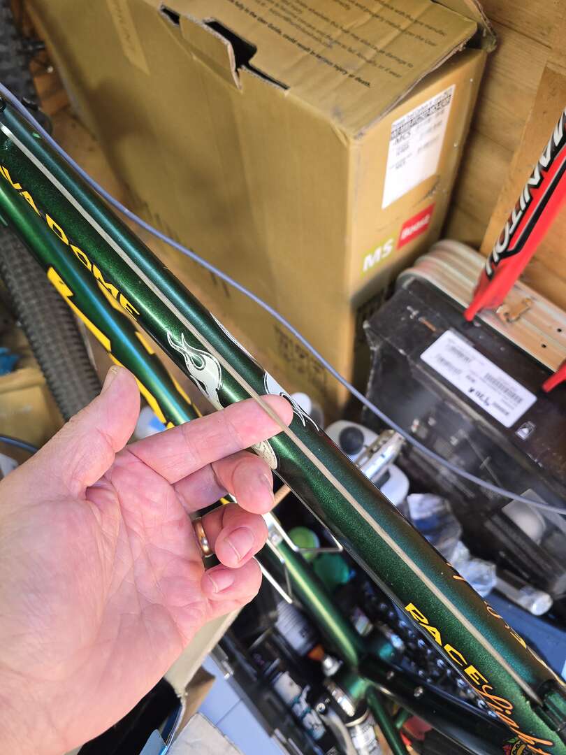 Seeing as I’d got all that lot, and a few other bits (saddle, grips etc), the next step was to sort the tatty paintwork out so off it went to be acid dipped and powder coated and some custom graphics ordered, complete with the now obligatory Greggs stickers.