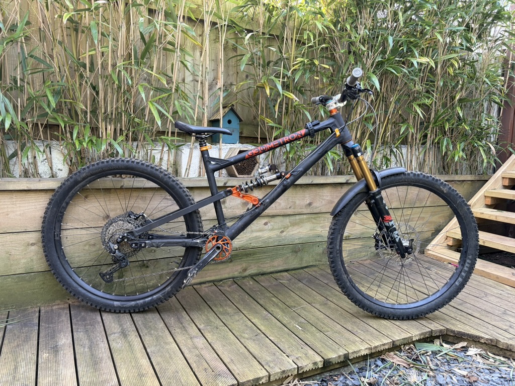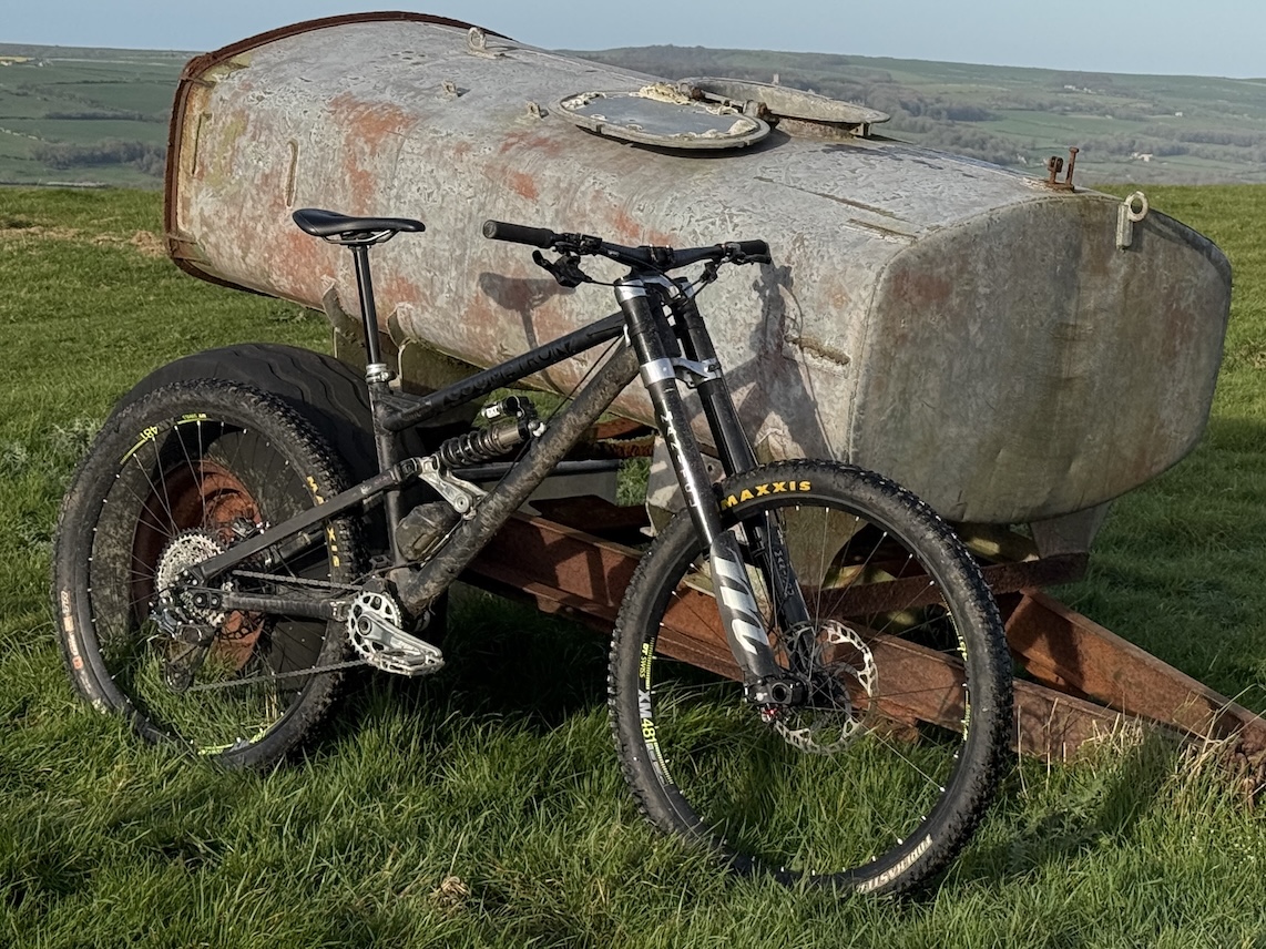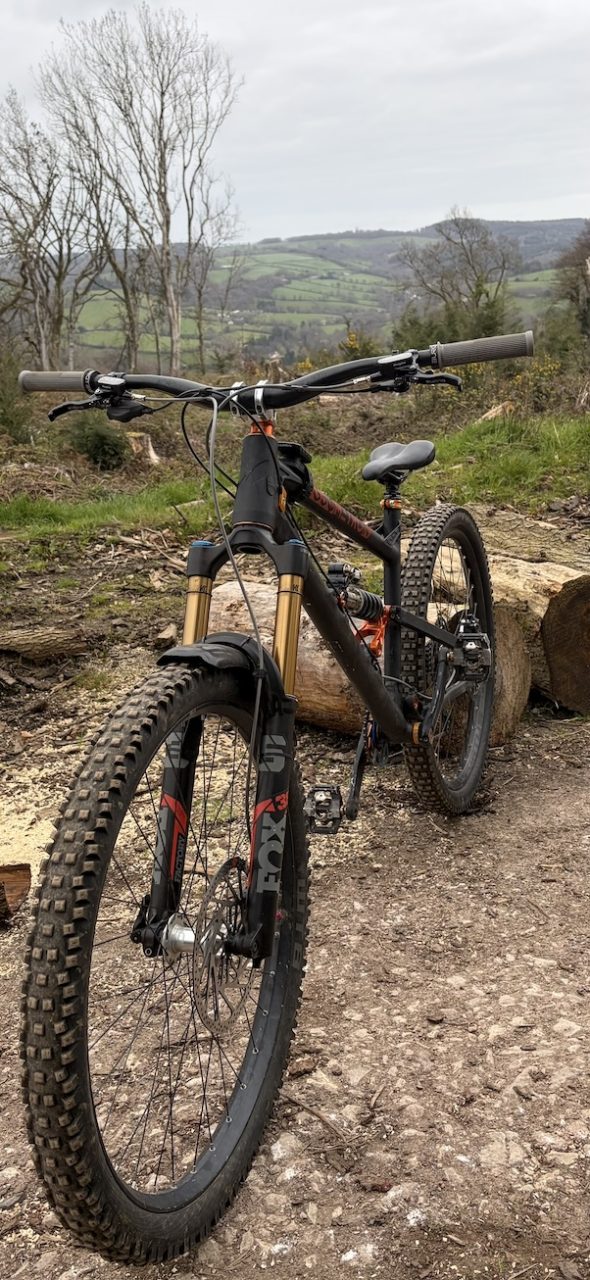 | I had a G16 for years before and this was the obvious choice, from the Purbecks, to Wales and Ligura (where I a have work office) it takes any terrain in its stride, climbs remarkably well, and is easily capable of 100Km XC rides with the right tyres. | I have been a fan of the long low slack bikes for a while and previously had a Privateer 141 with offset bushings. I have been a fan of Geometron bikes both for the reviews and having tried a couple. Reading articles with Chris Porter and listening to his views on podcasts, I really bought into the bike design and ethos he has developed with this bike based on his own conviction. I can confirm for me he is 100% right, This really is hopefully the last bike I will buy, any changes I want to make the frame can deliver them. This really is the Trigger’s broom bike for me. When the opportunity came up to buy this bike as a frame this winter, it was the ideal opportunity have a project to build up the bike I want to ride. |