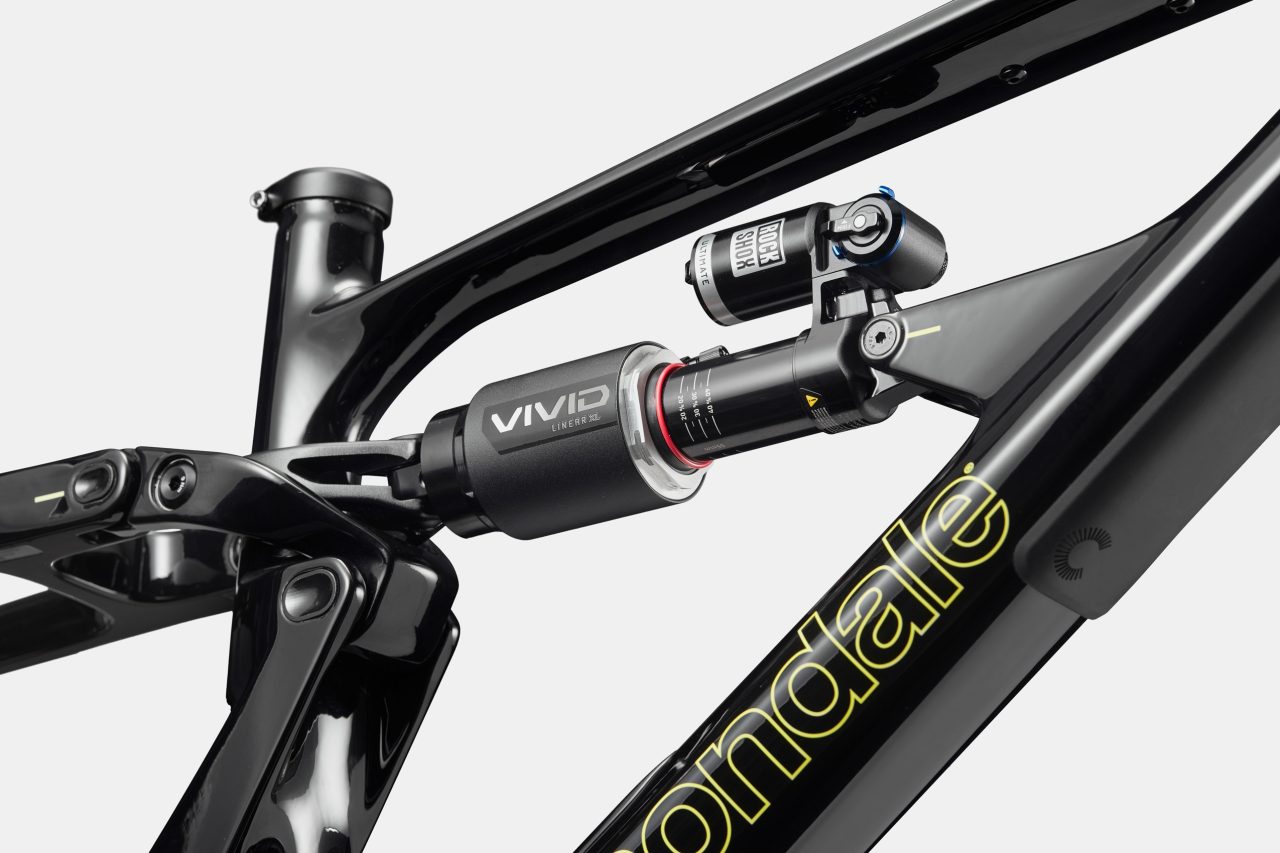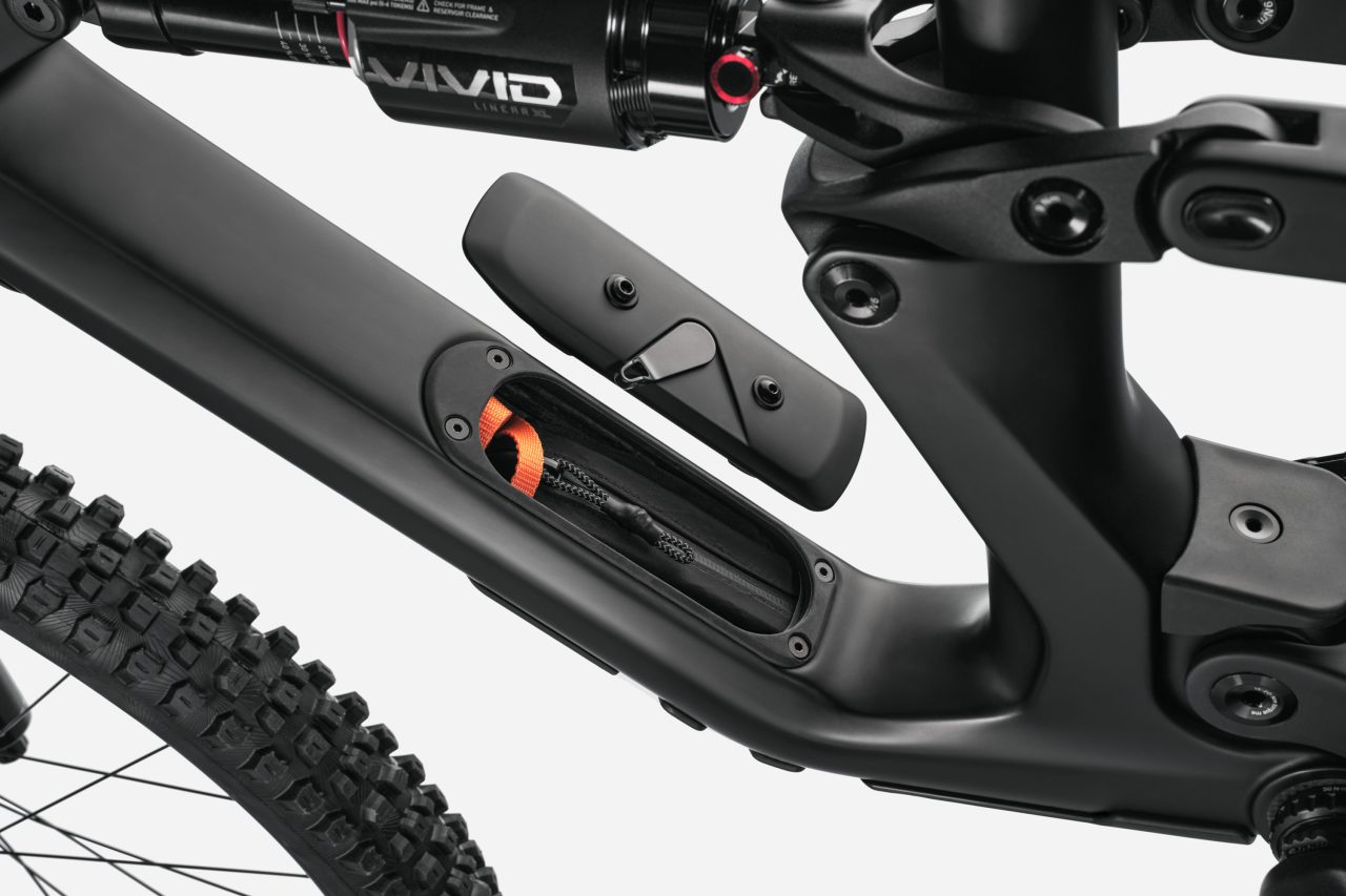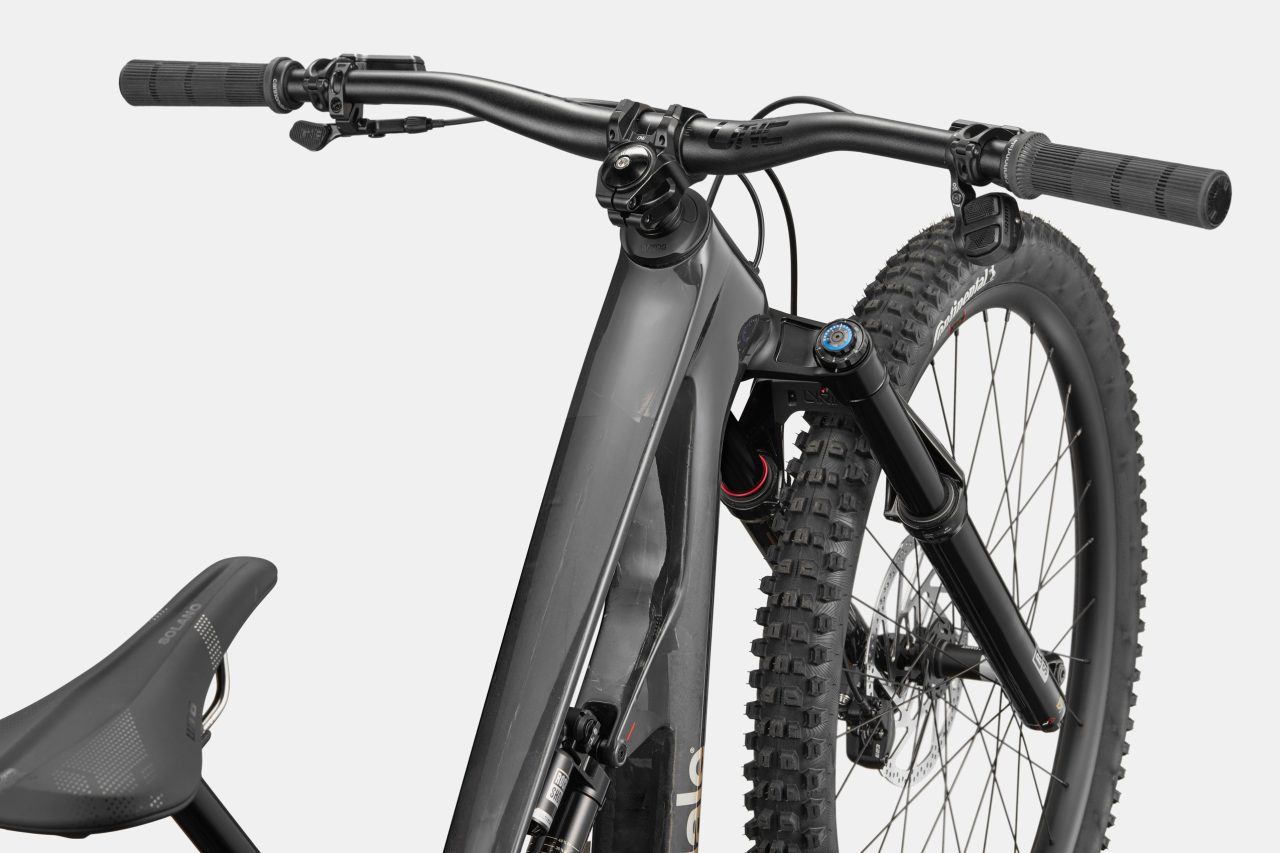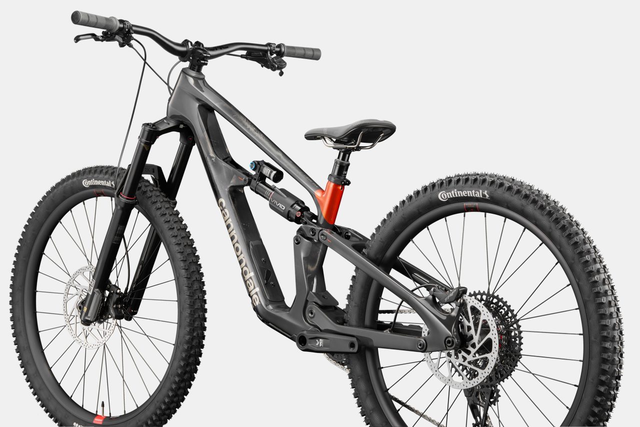 What else? Proportional Response (size-specific kinematics, geometry and construction). Coil or air compatibility. StashPort frame storage (a first for Cannondale MTB). 34.9mm diameter seat tubes for long-travel droppers (up to 280mm insertion on L/XL). Full carbon frame. Shuttle and chainstay protection. Threaded BB. Metric shock. UDH hanger. 160mm (S/M) or 165mm (L/XL) cranks. Warrantied for life (as outlined in Cannondale’s limited Lifetime warranty policy). Up to 170mm for single crowns and 180mm for dual crowns (bring back the Lefty Max!)