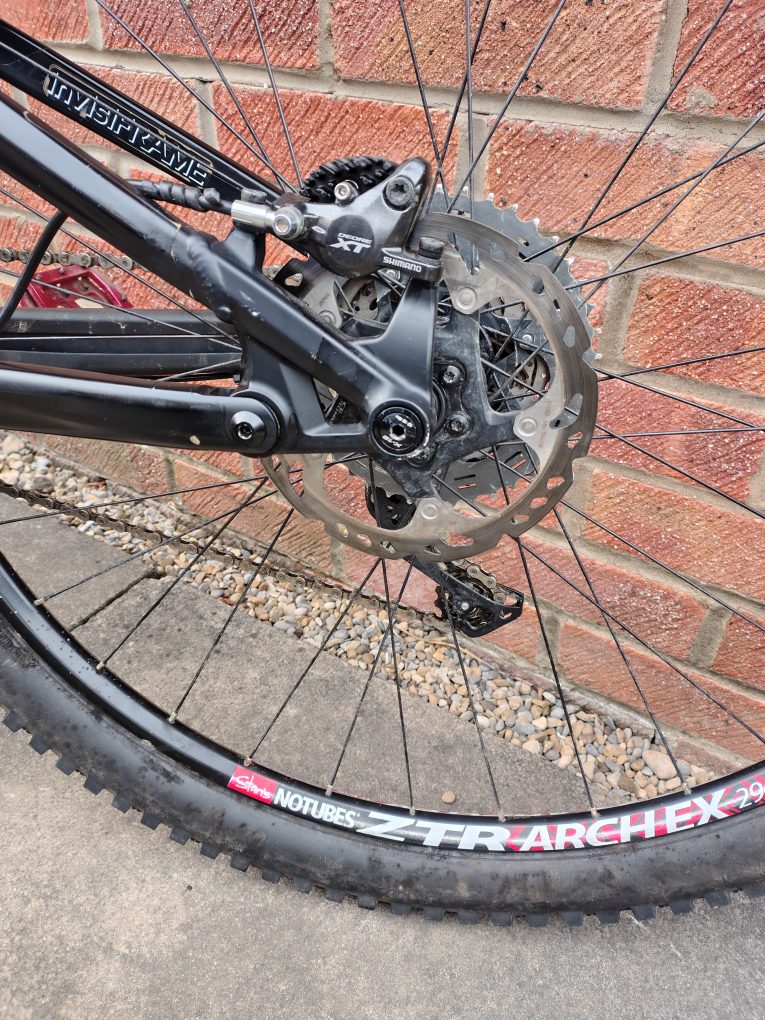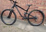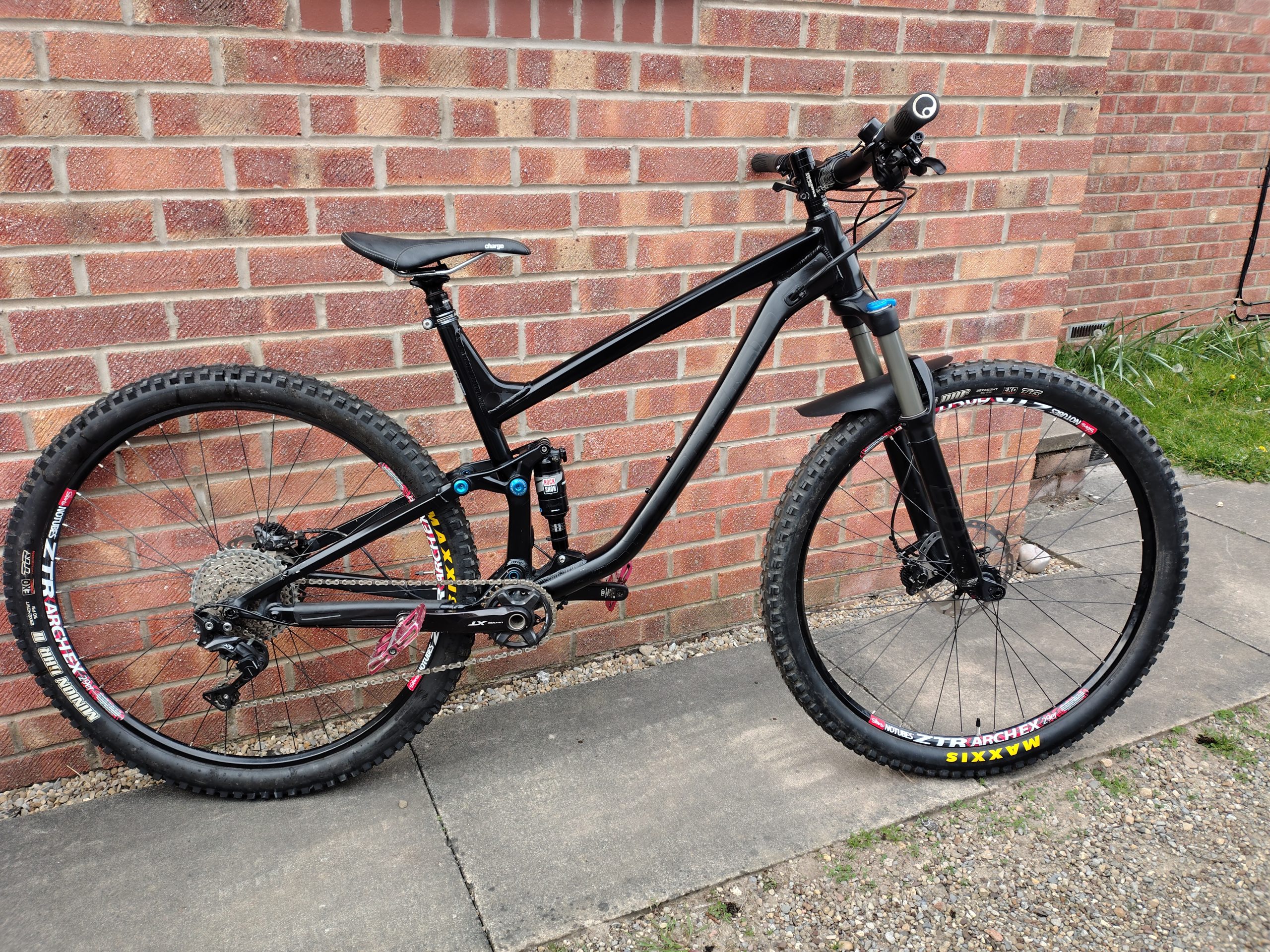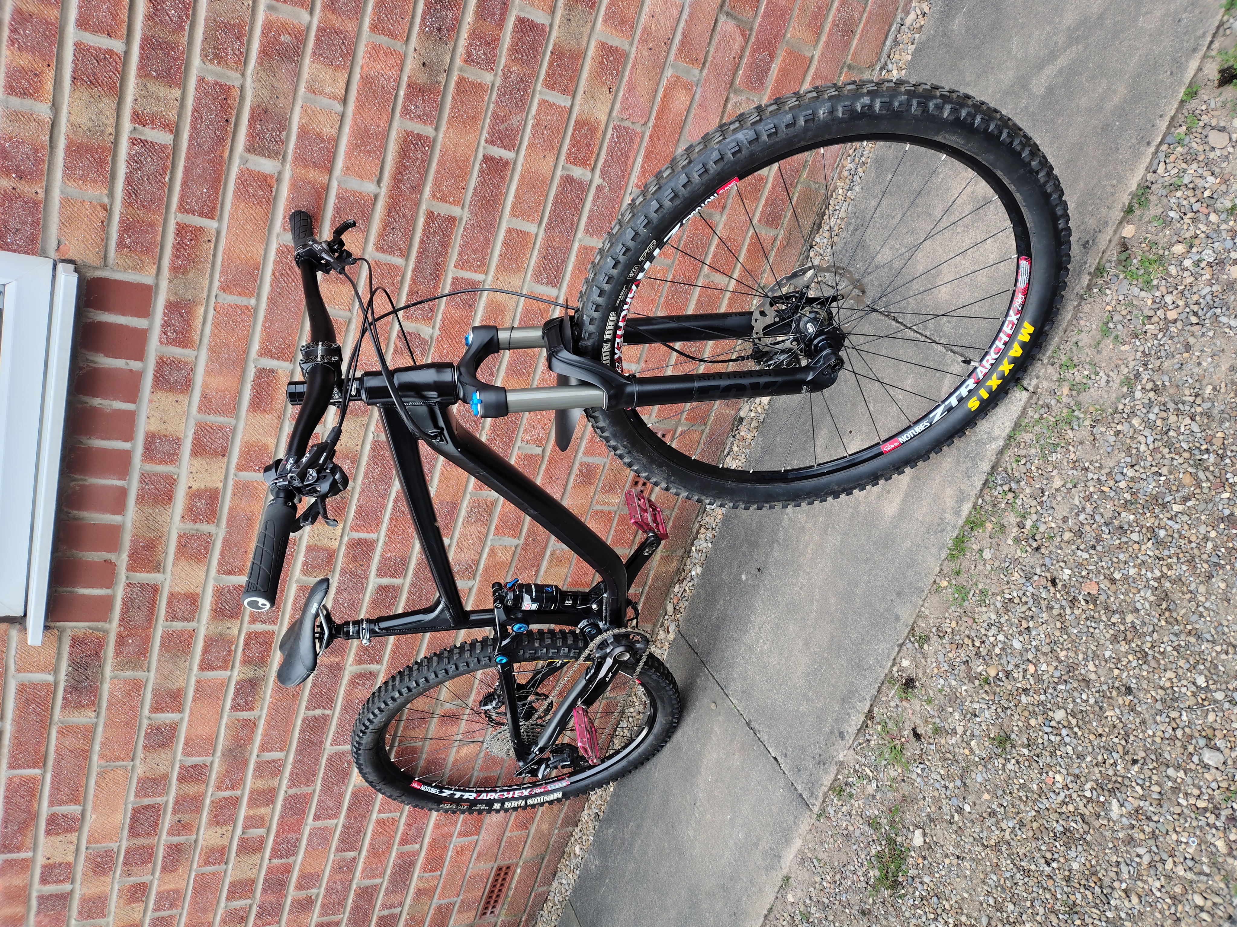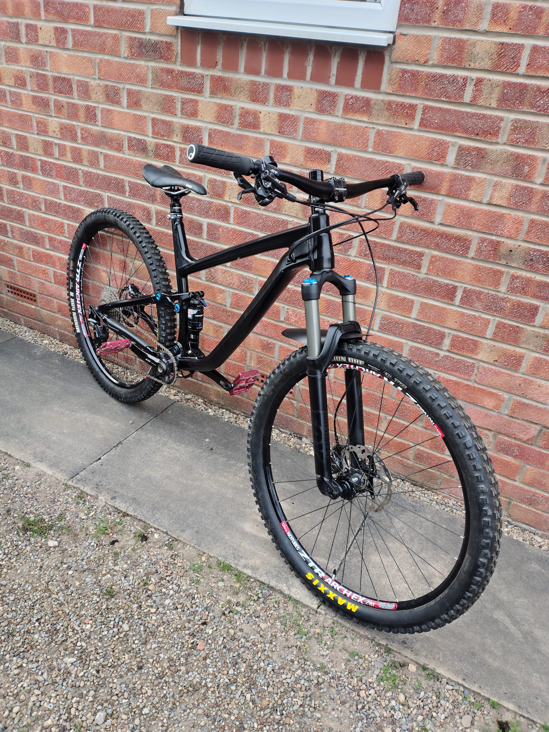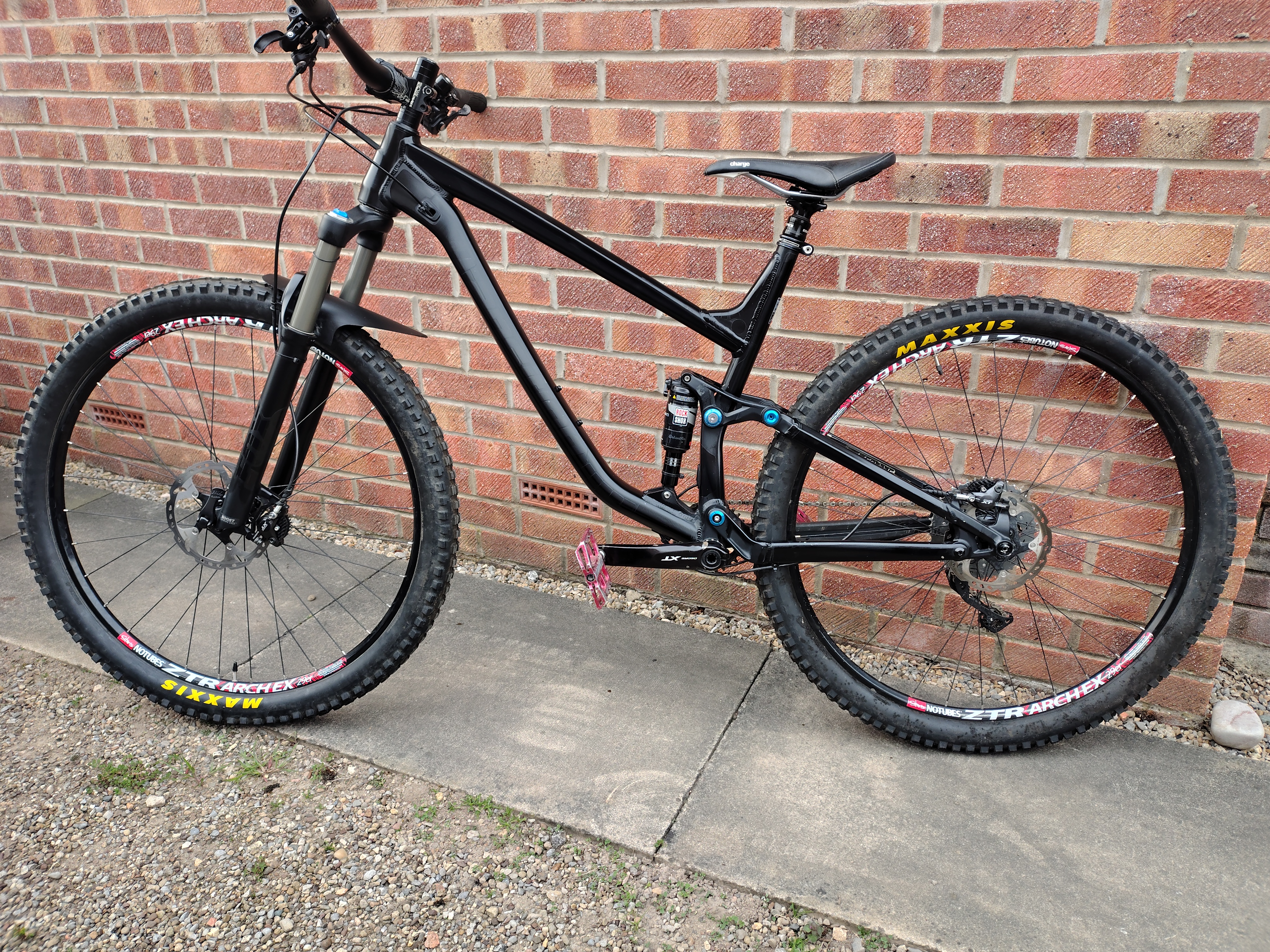 Custom build 115mm of rear travel 130mm Fox Rhythm 34 fork. Xt brakes and drivetrain. Stans Arch ex wheels on hope pro 2 hubs. Raceface dropper post.