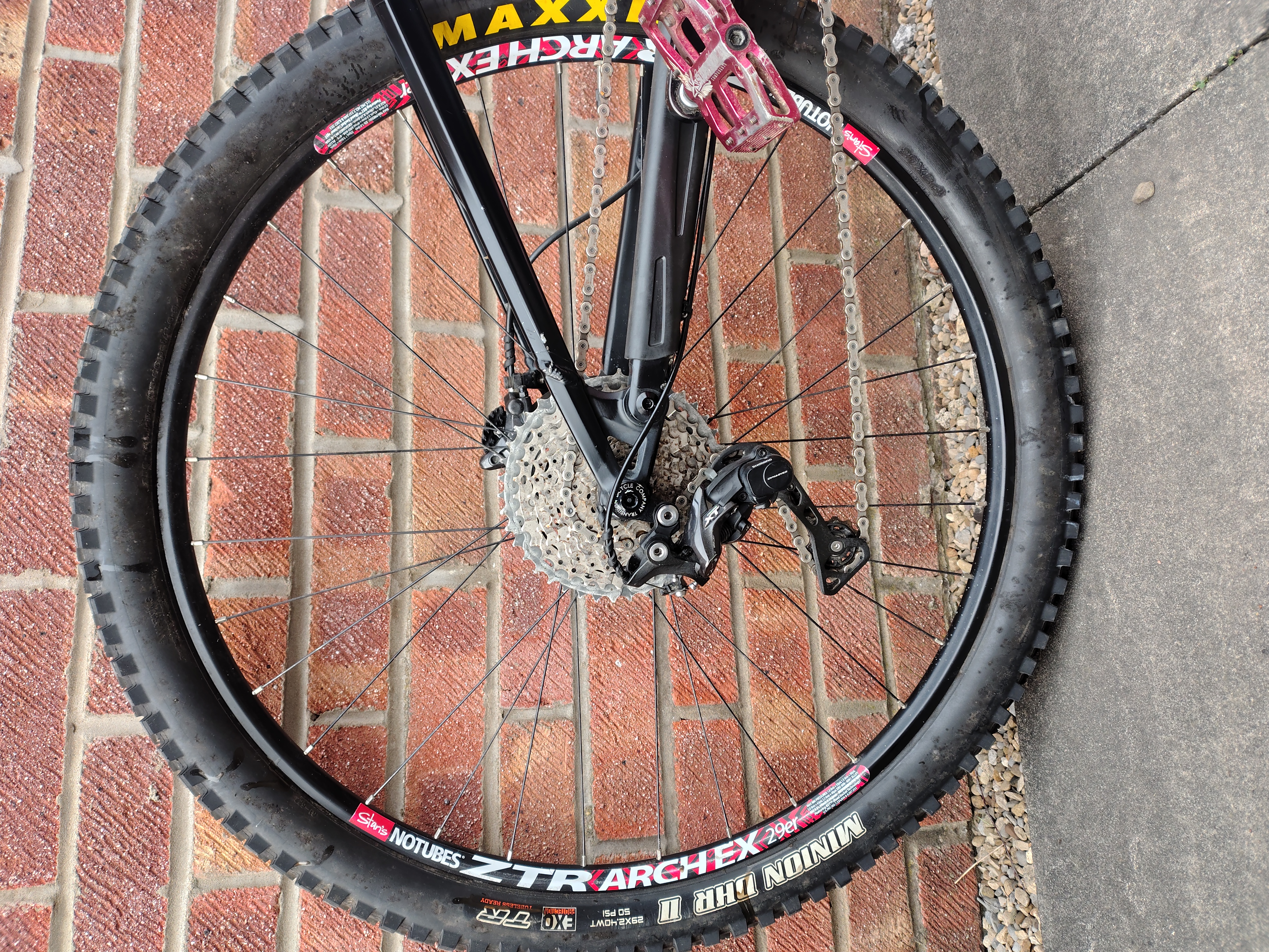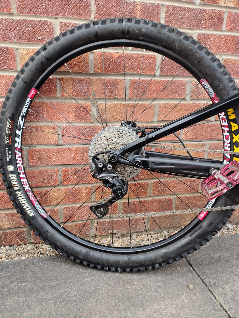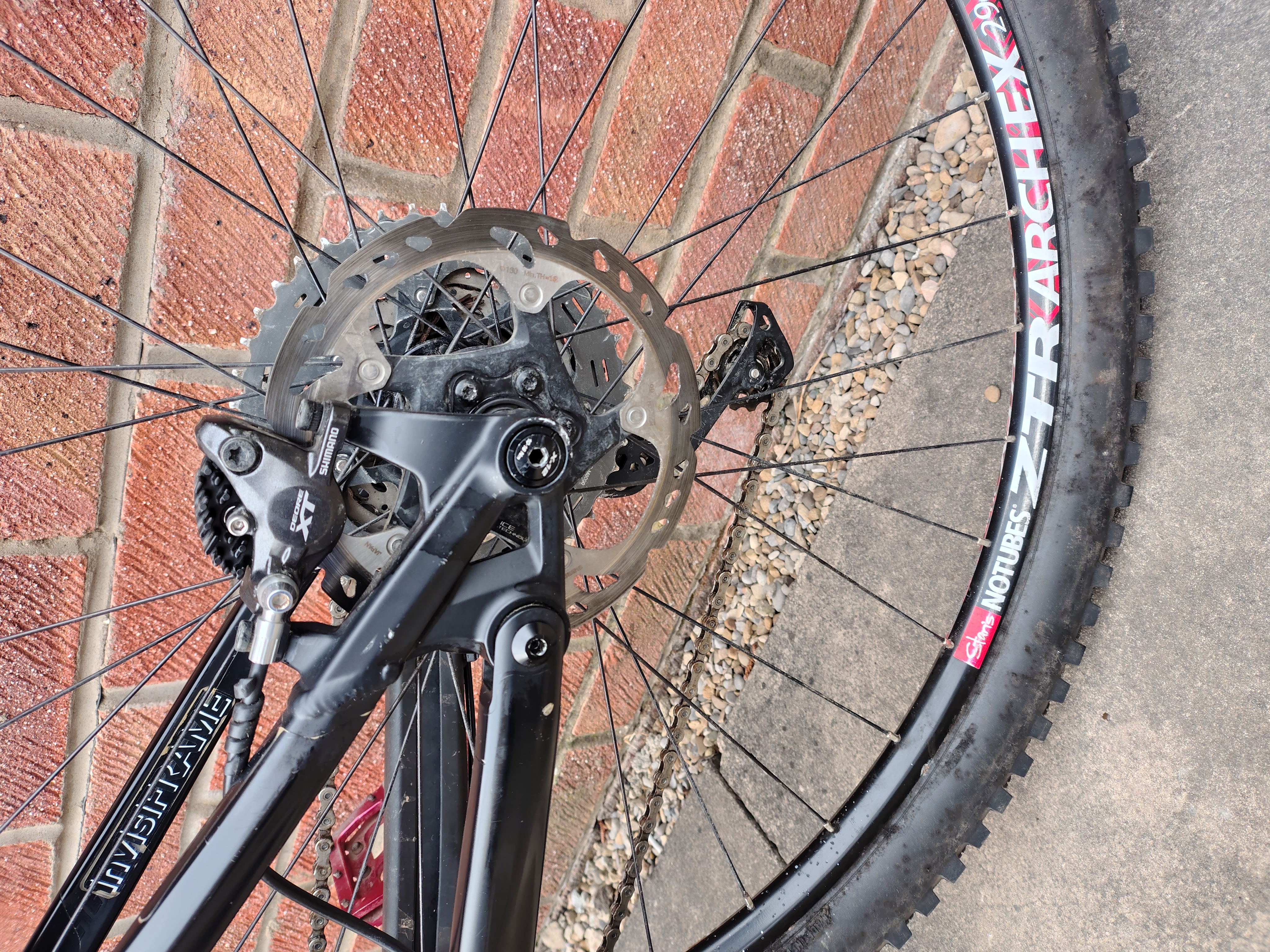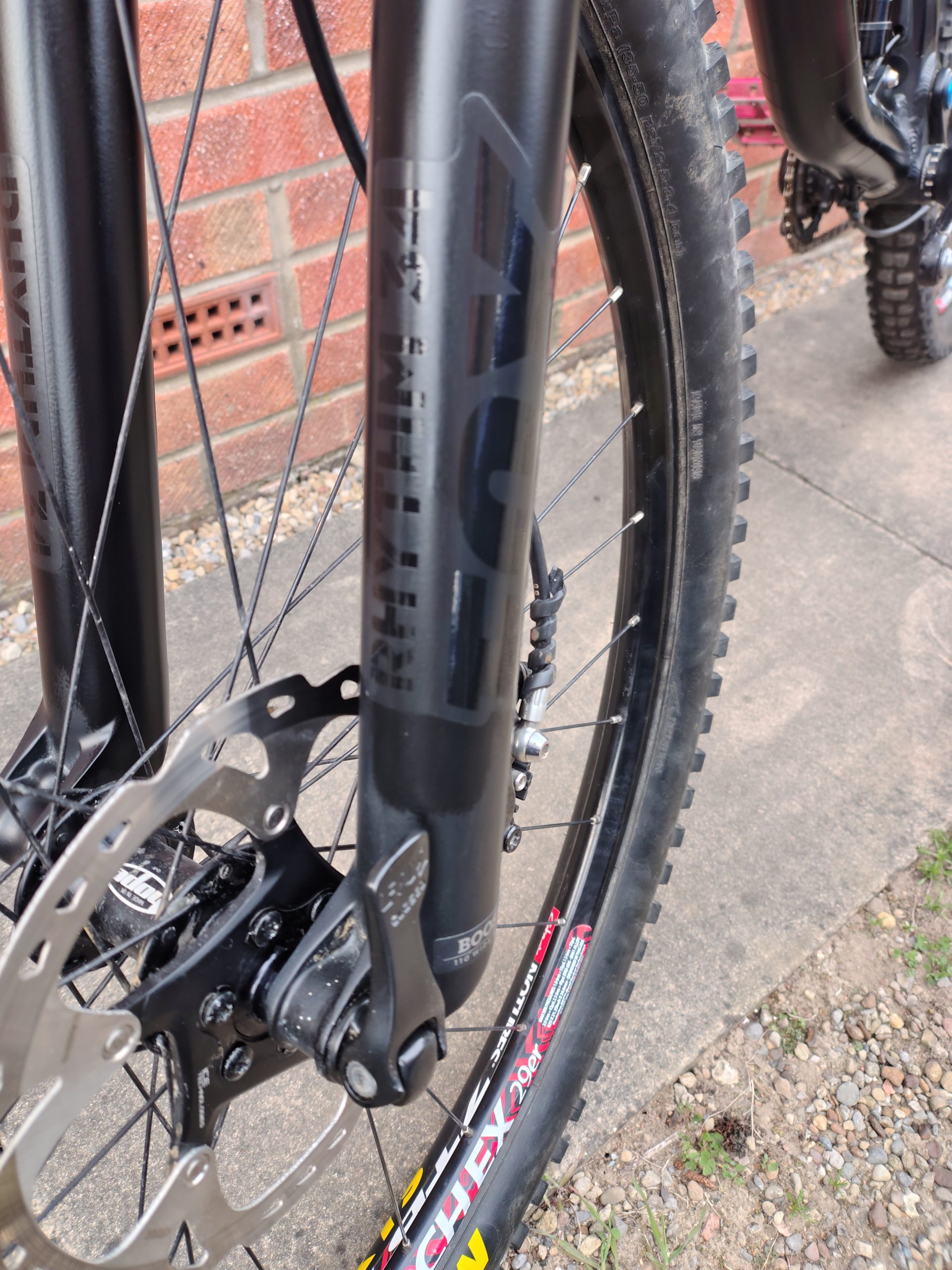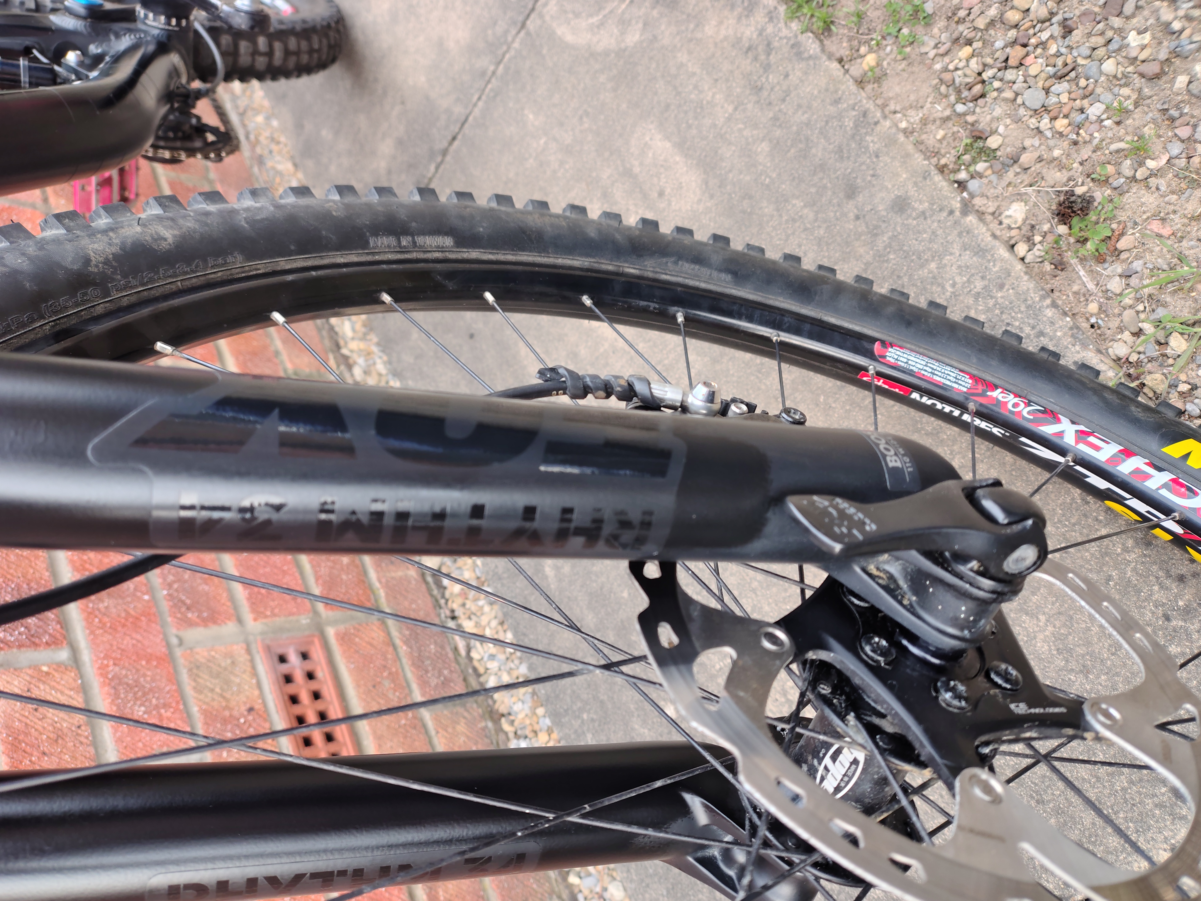 Custom build 115mm of rear travel 130mm Fox Rhythm 34 fork. Xt brakes and drivetrain. Stans Arch ex wheels on hope pro 2 hubs. Raceface dropper post.