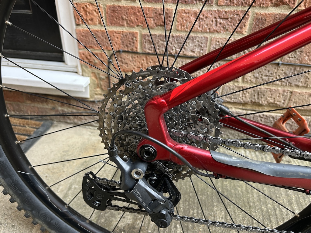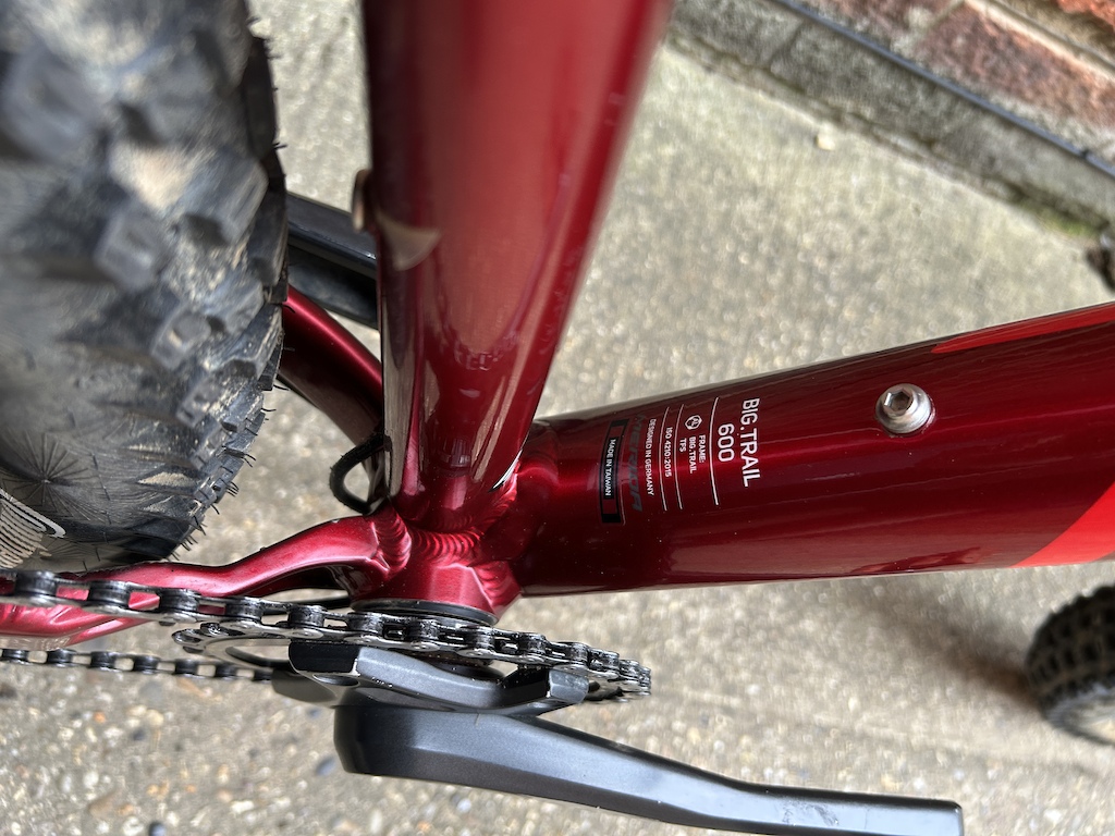 There’s some marks on the frame from use and water bottle rub but nothing you wouldn’t expect from a used bike. It’s a lovely looking frame.