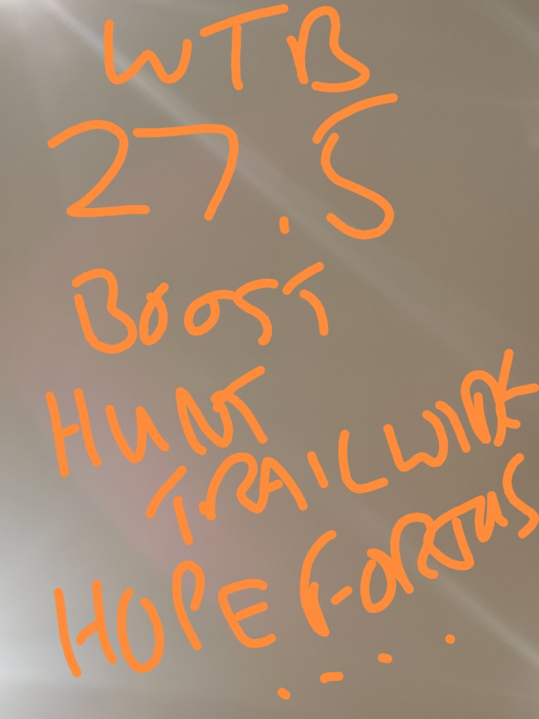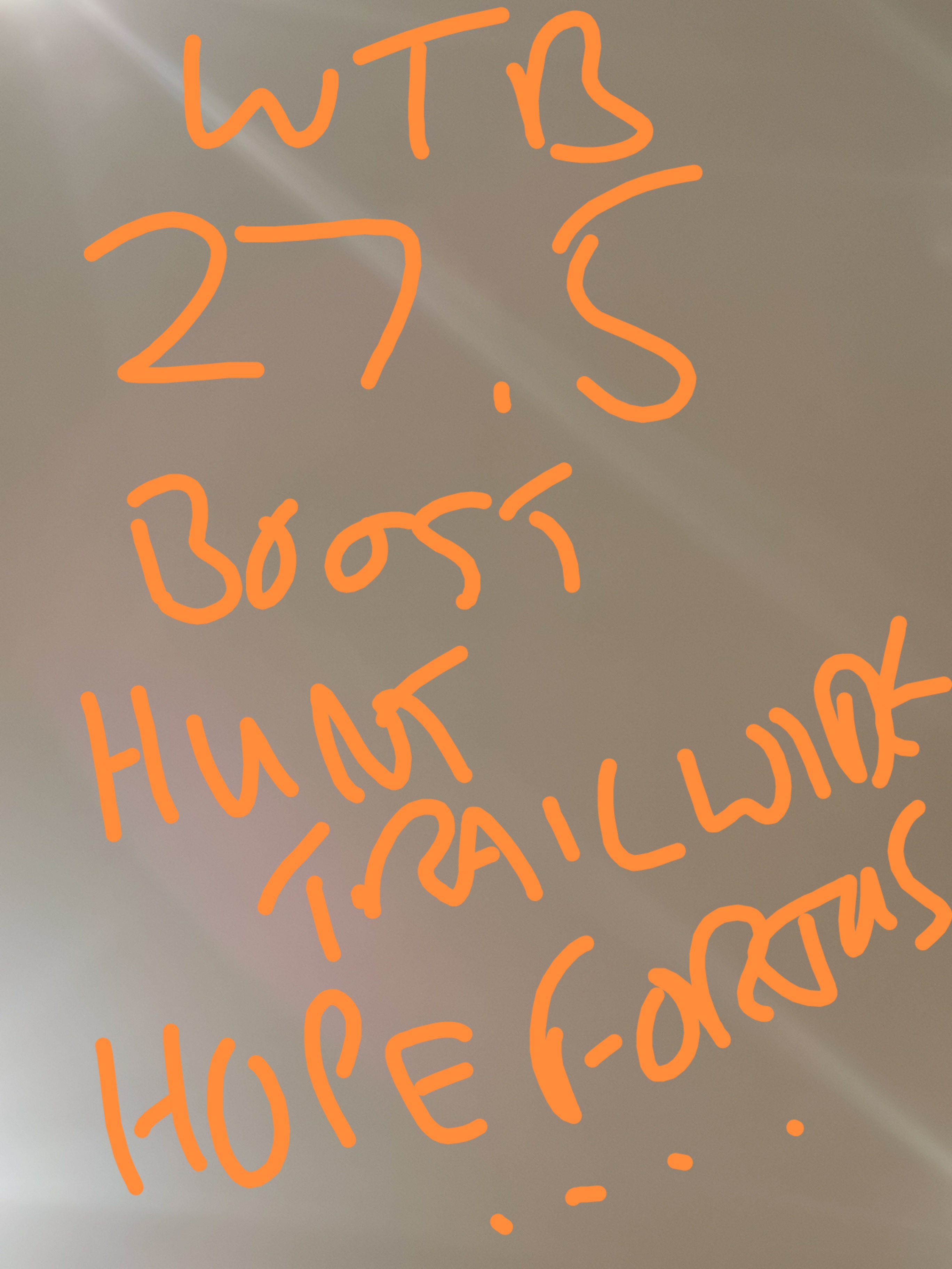 Looking for a set of 27.5 boost wheels, Shimano HG. I’m kind of set on hunt trailwide or hope fortus just because I’m familiar with both and spares are ready to come by for both. Used is good, damaged is not good.Â