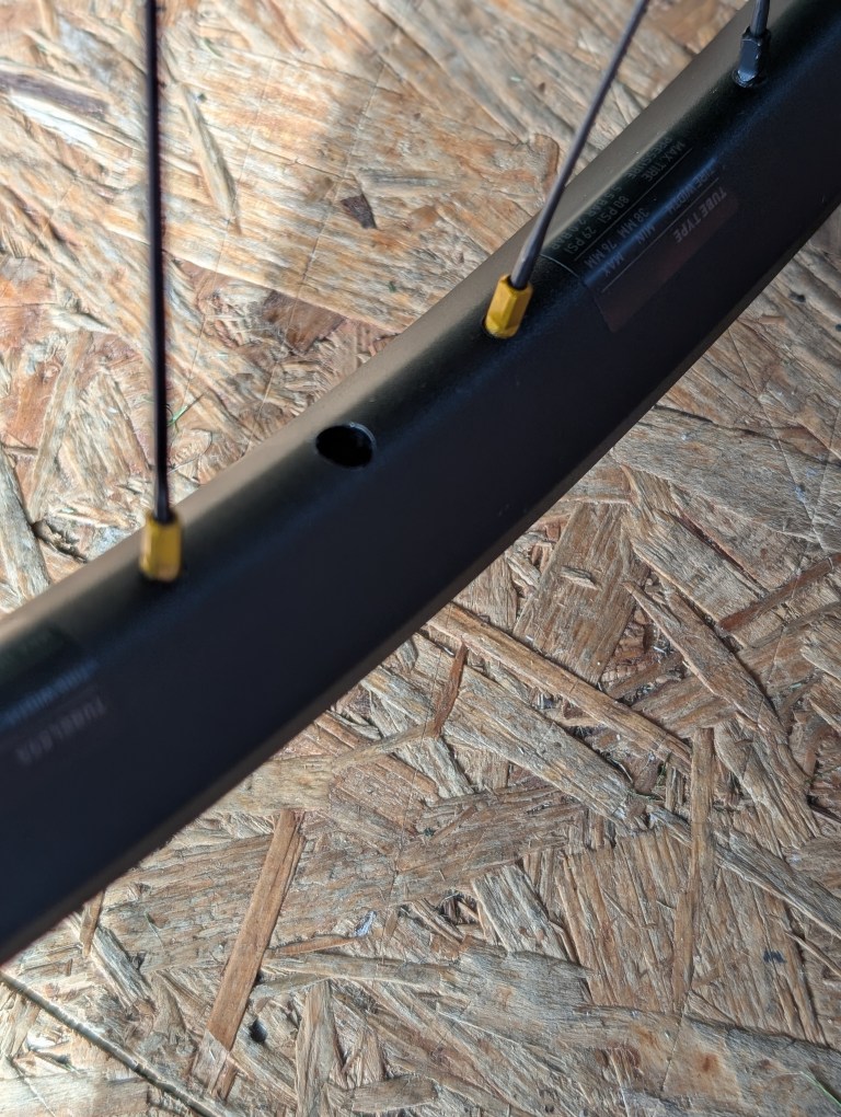 Nipples – Sapim brass, Black. Two Sim Works raw brass at the valve hole.