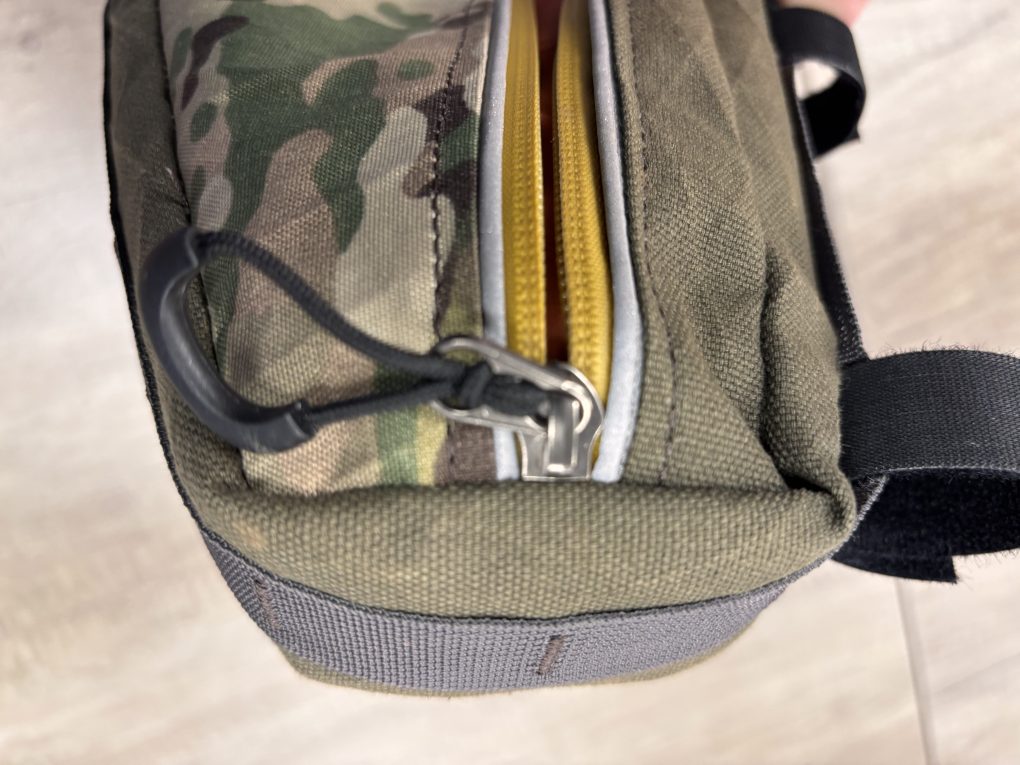 With fully waterproof outer materials, it’s highly water-resistant, protecting your bits and bobs in bad weather. The stitching isn’t seam-taped though, so we’d always recommend wrapping any electronics in a dry bag.