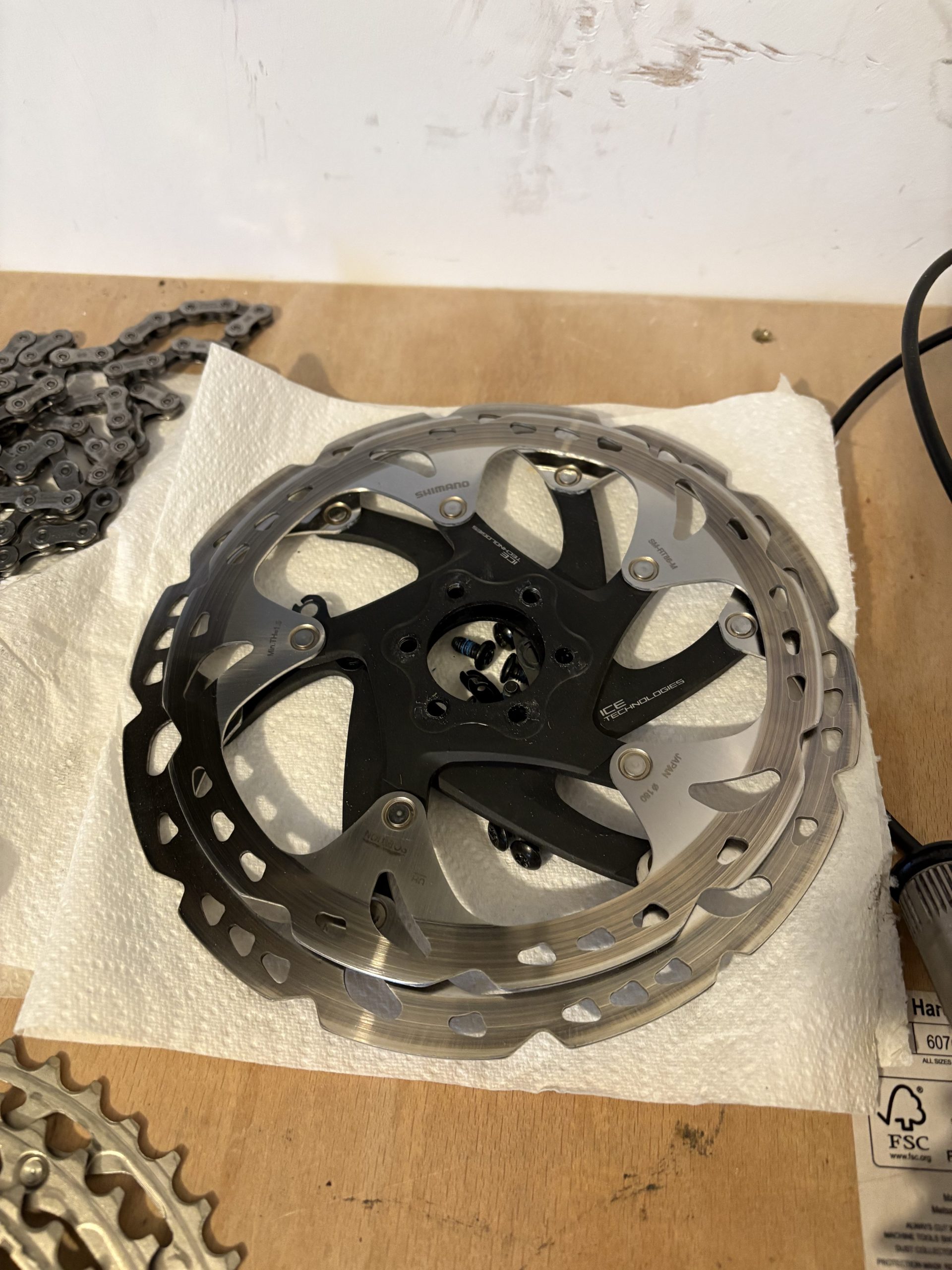 - Shimano XT icetec rotors 180mm and 203mm £60