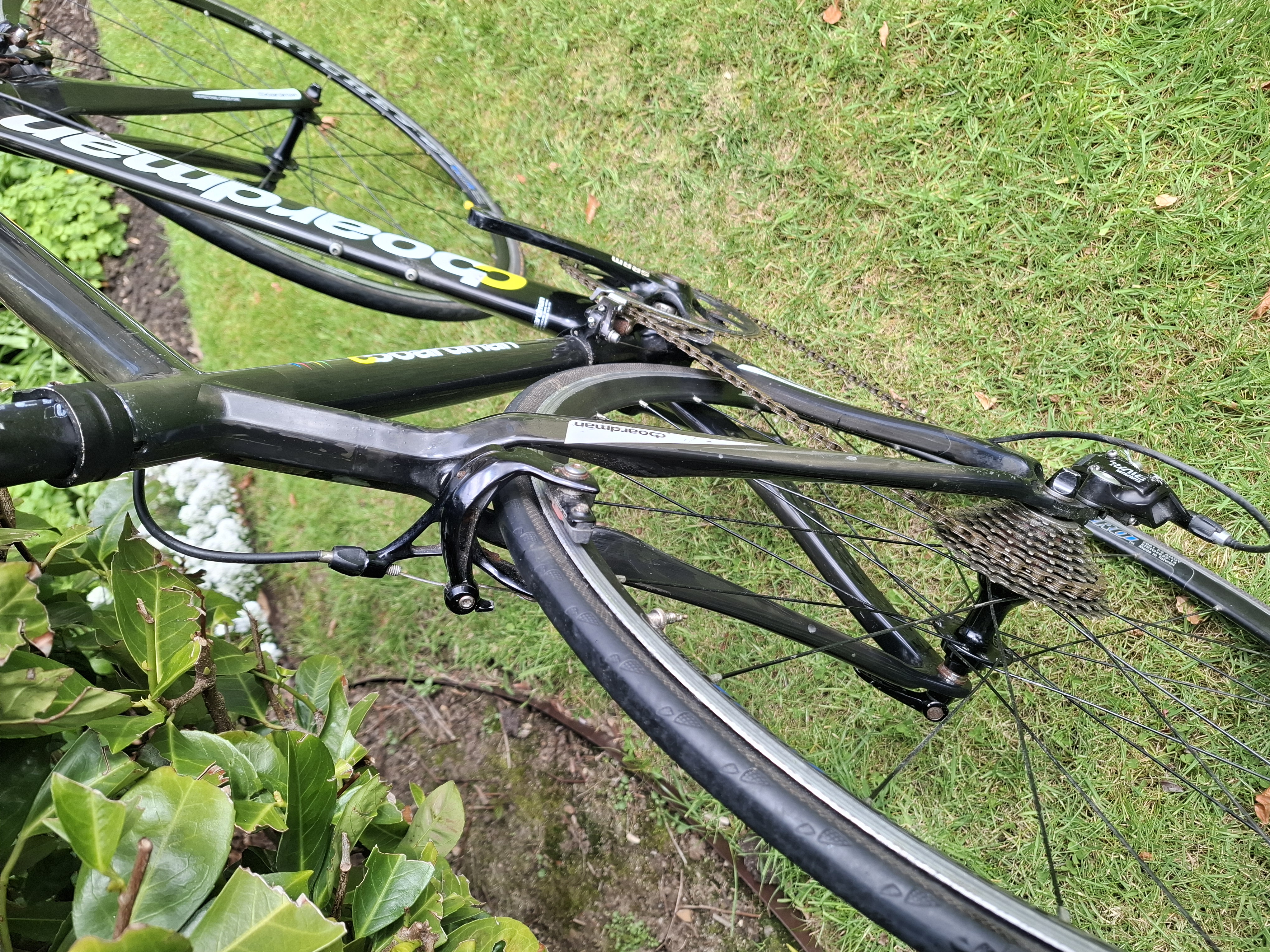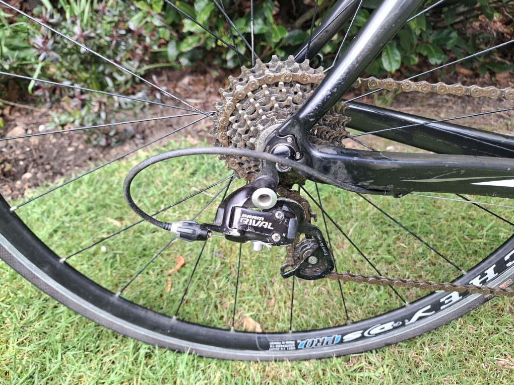 I’ve had this bike for a few years, and it’s just been sat on the TurboTrainer. I’ll be honest and say that it’ll need some TLC before it’s road ready again. Everything works, to a fasion, and I’m sure it’d be a fine bike if everything was properly overhauled or replaced as needed.