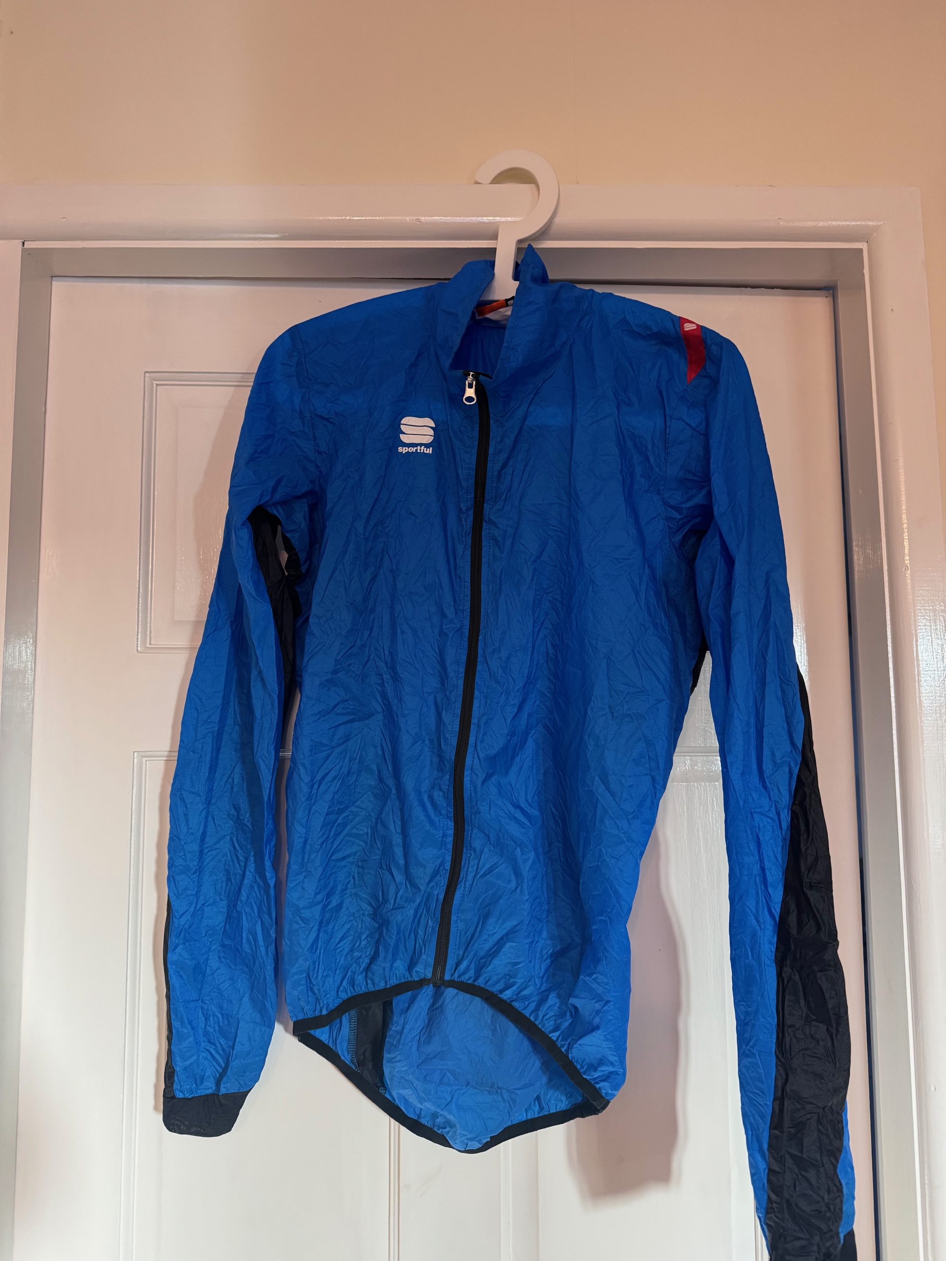 Large, electric blue Sportful Hotpack jacket.