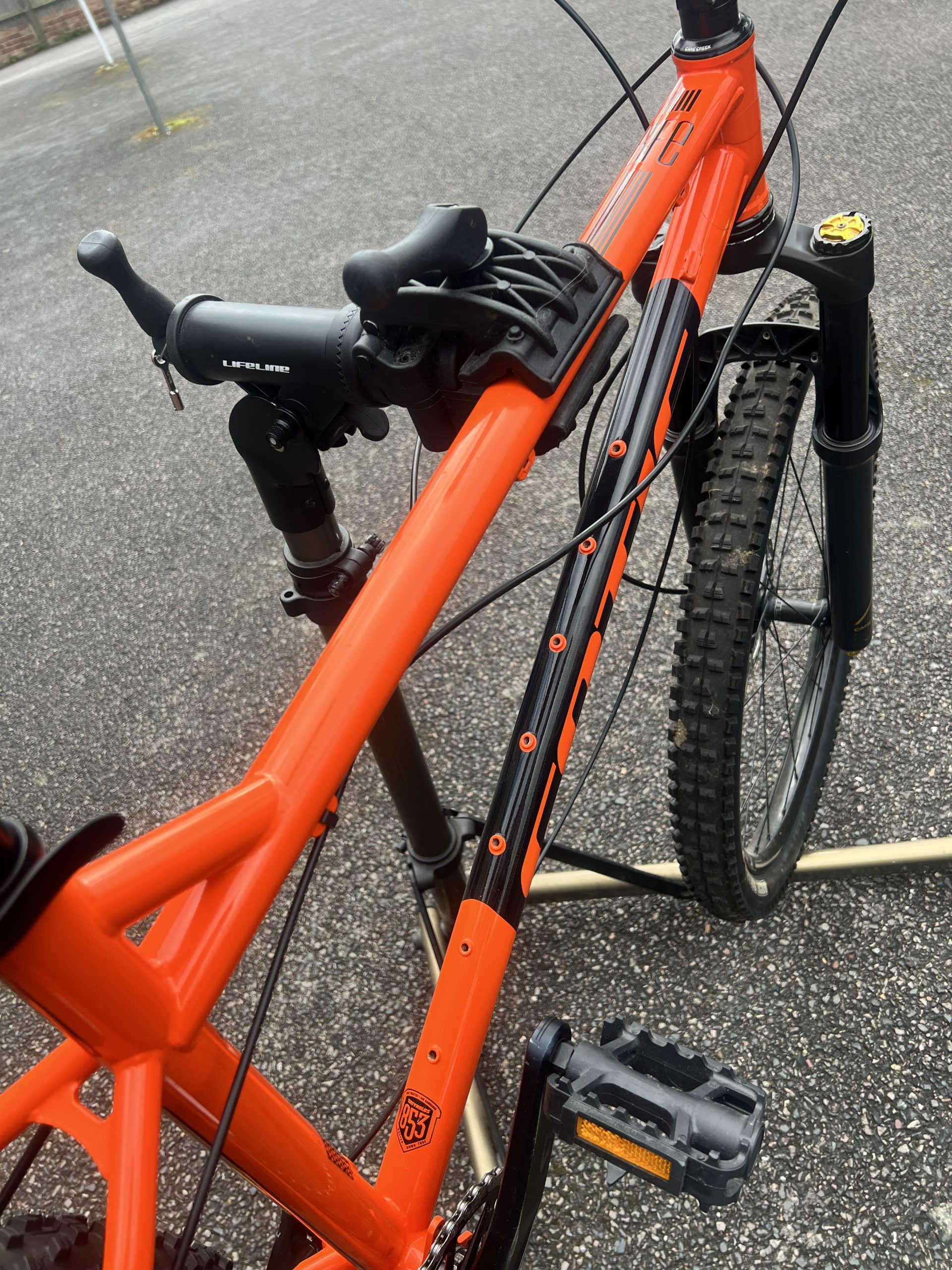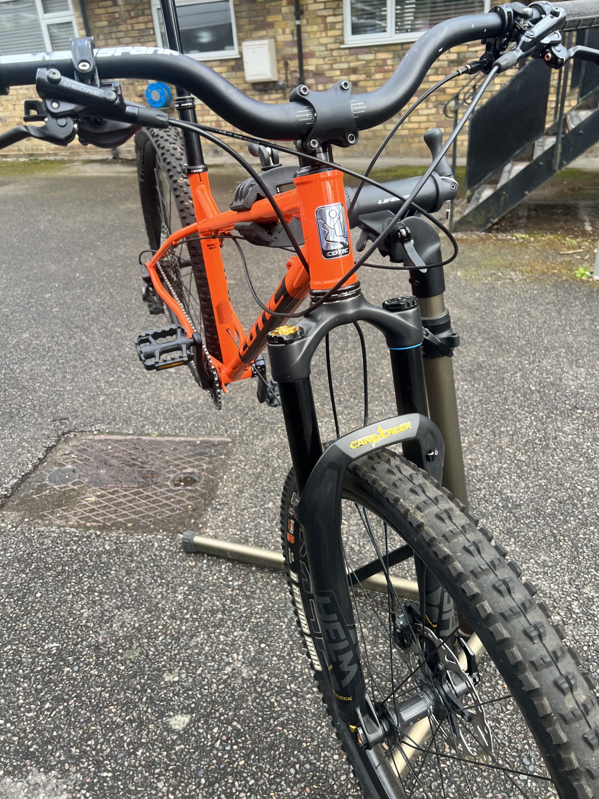 The bikes drivetrain has a set of SLX cranks and a Hope bottom bracket, but the chain and cassette and brake callipers are XT. I’ve upgraded the brake cables to Jagwire.