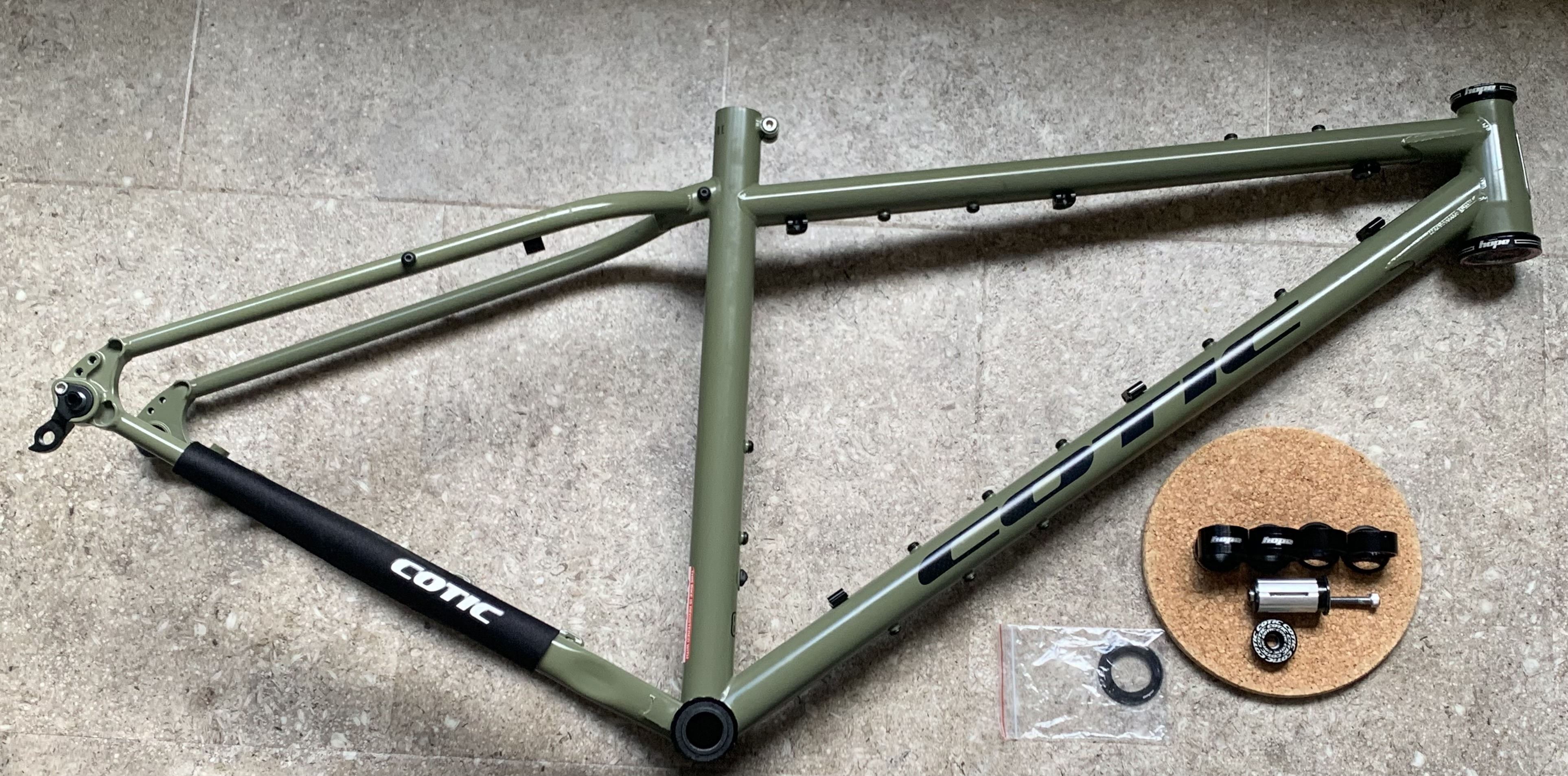 Cotic Cascade frame from 2024, Â with Hope headset and BB. Â This frame is also available with a Salsa carbon fork – which is also available separately. Â Please see my other posts.