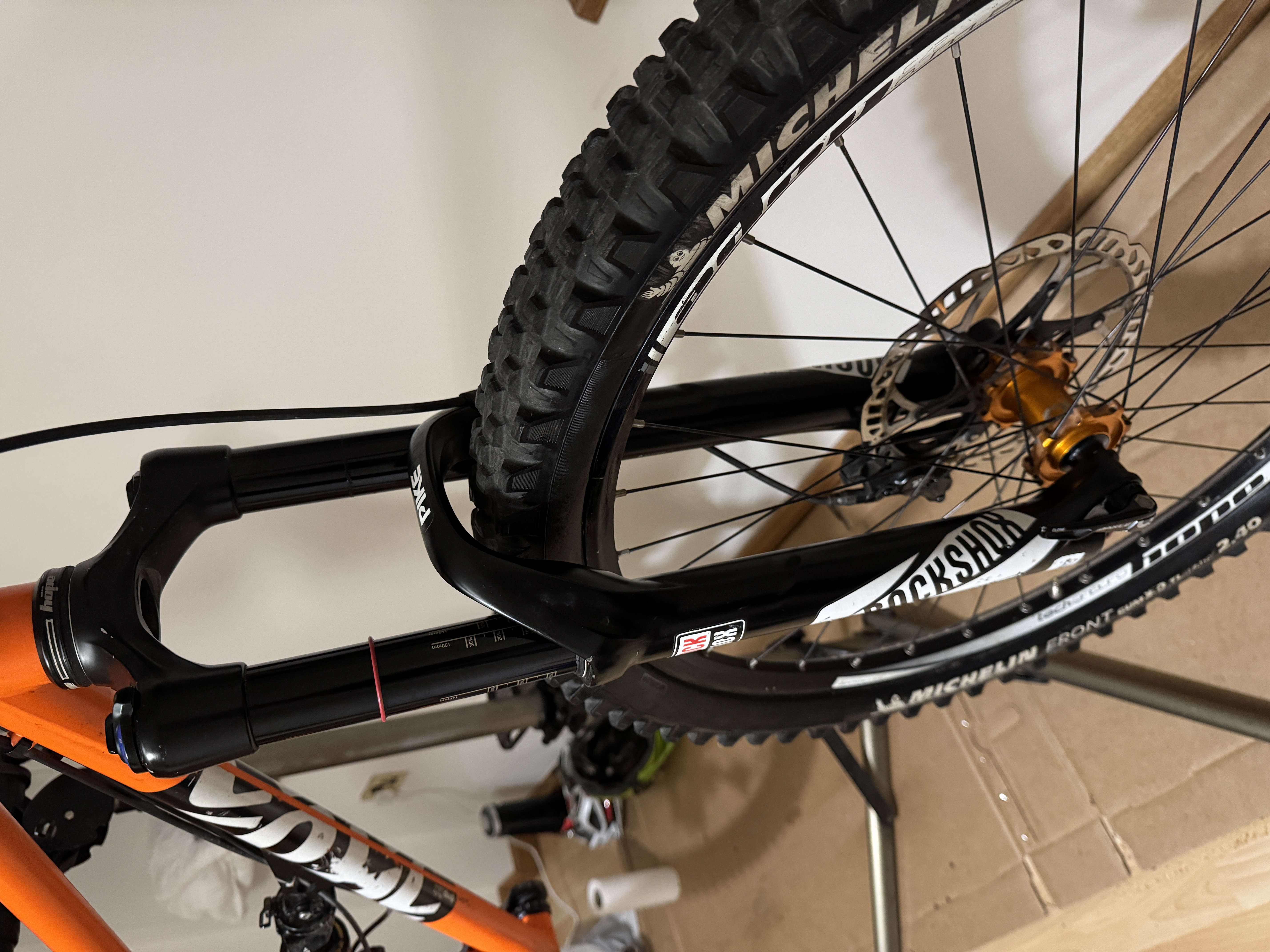 - Hope Pro4 SP (straight pull spokes) hubs with Hope Tech Enduro rims