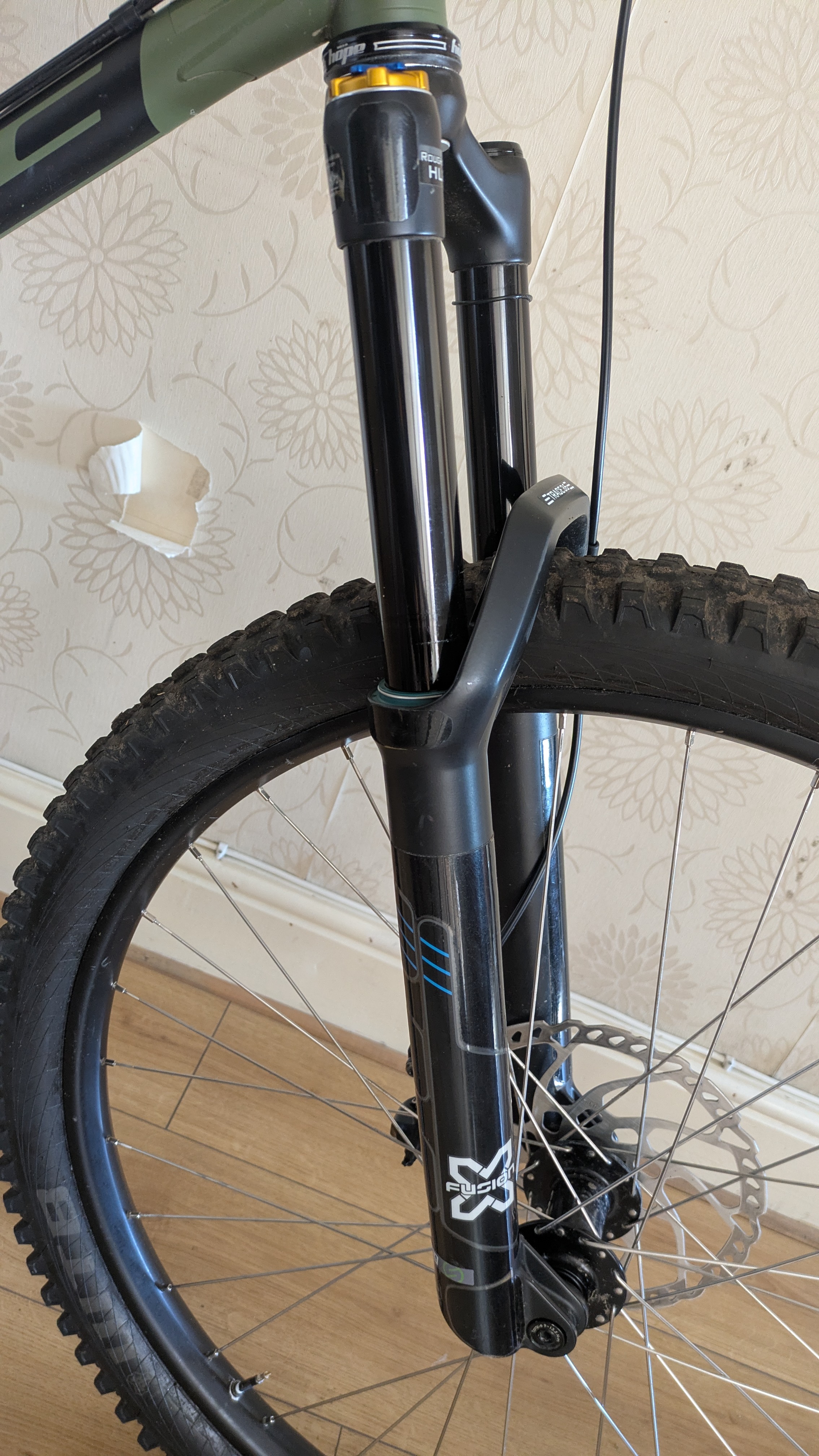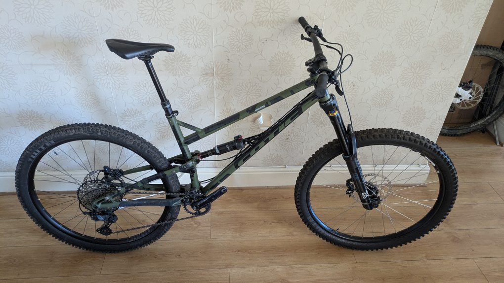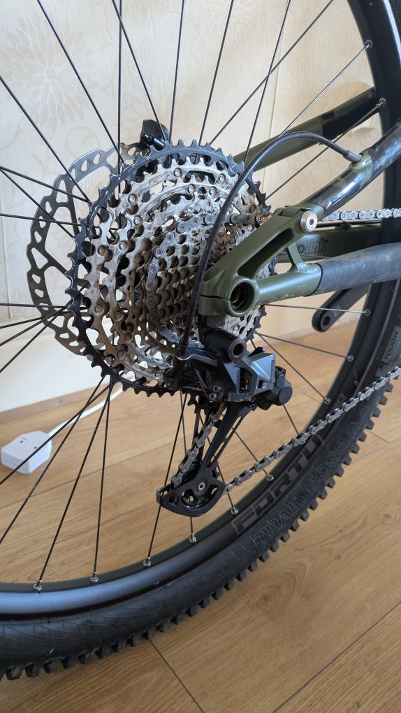 Fork – X-Fusion Trace 36 with roughcut HLR damper. Serviced by Sprung suspension including bushing re-sizing (rides so much better than stock) in 2025. Paint worn where there was a mud guard.