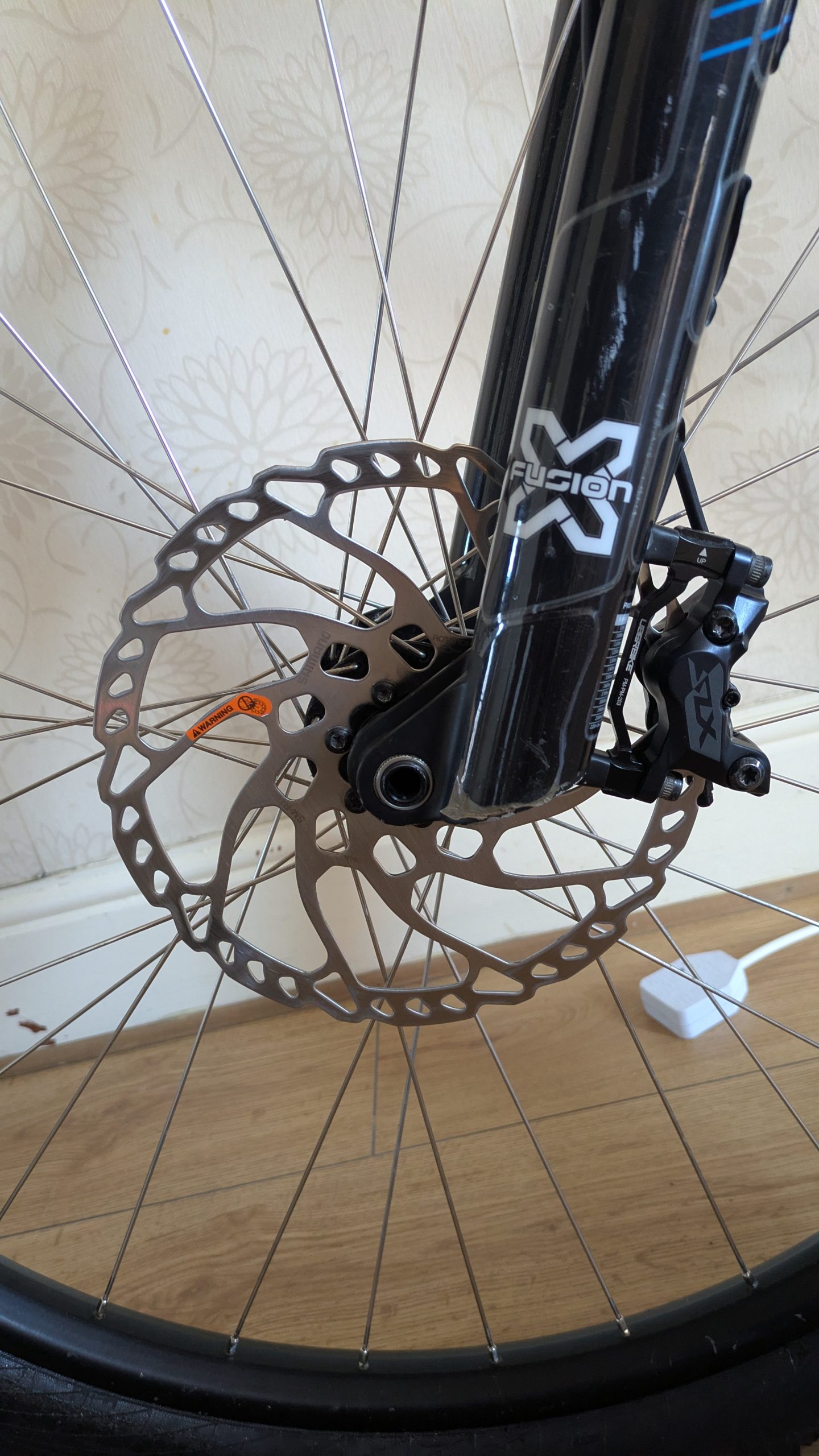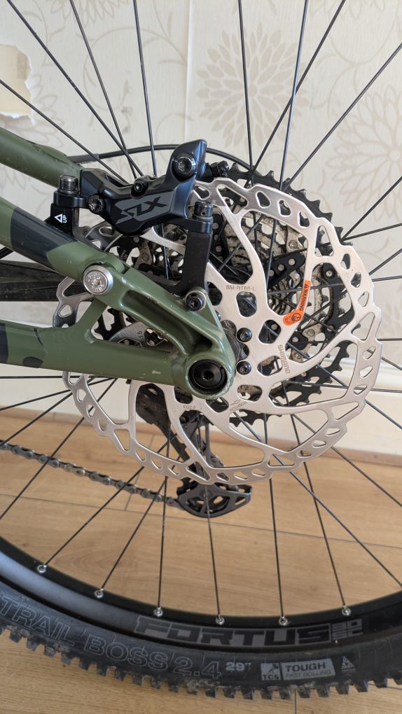 Brakes – Brand new Shiamno SLX 4 pot brakes and 203mm discs (came off the replacement RocketMAX Gen4).
