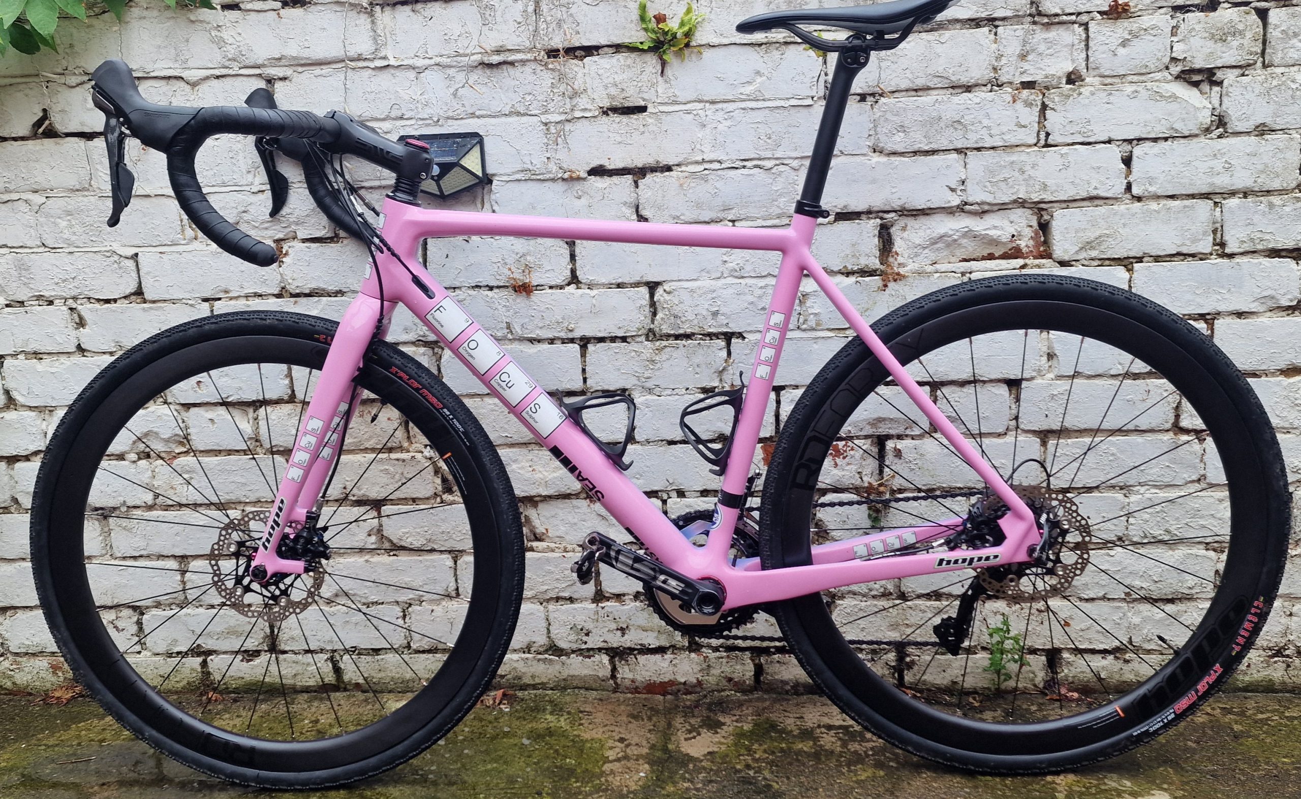 Hope RD40 40mm carbon clincher wheels (tubeless – although running them with tubes as I’m not a tubeless fan) on Hope RS4 straight pull hubs.