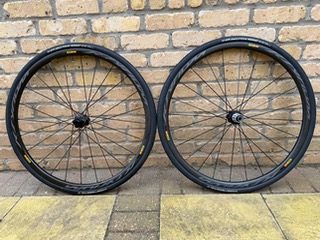 Mavic Ksyrium carbon 11 speed Shimano wheelset- disc and through axle. As new. These are NOT tubeless compatible