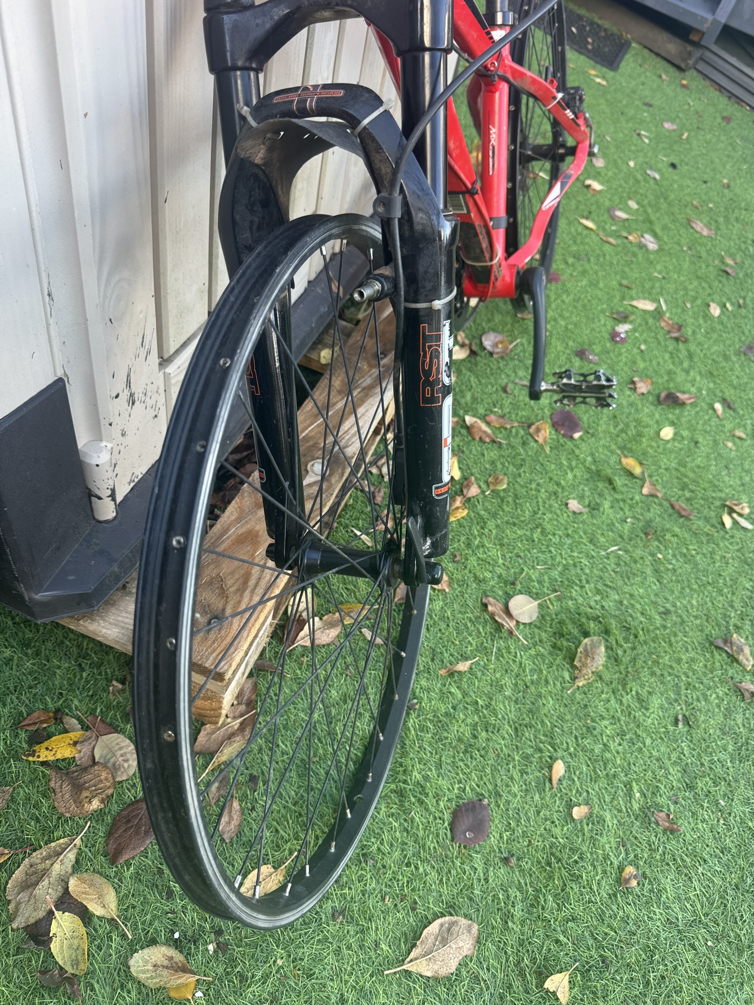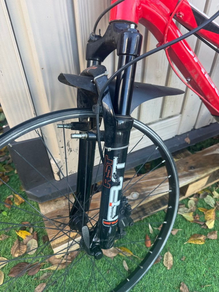 - RST F1RST 24″ suspension fork with lock-out (which really fun for kids to lock in)
