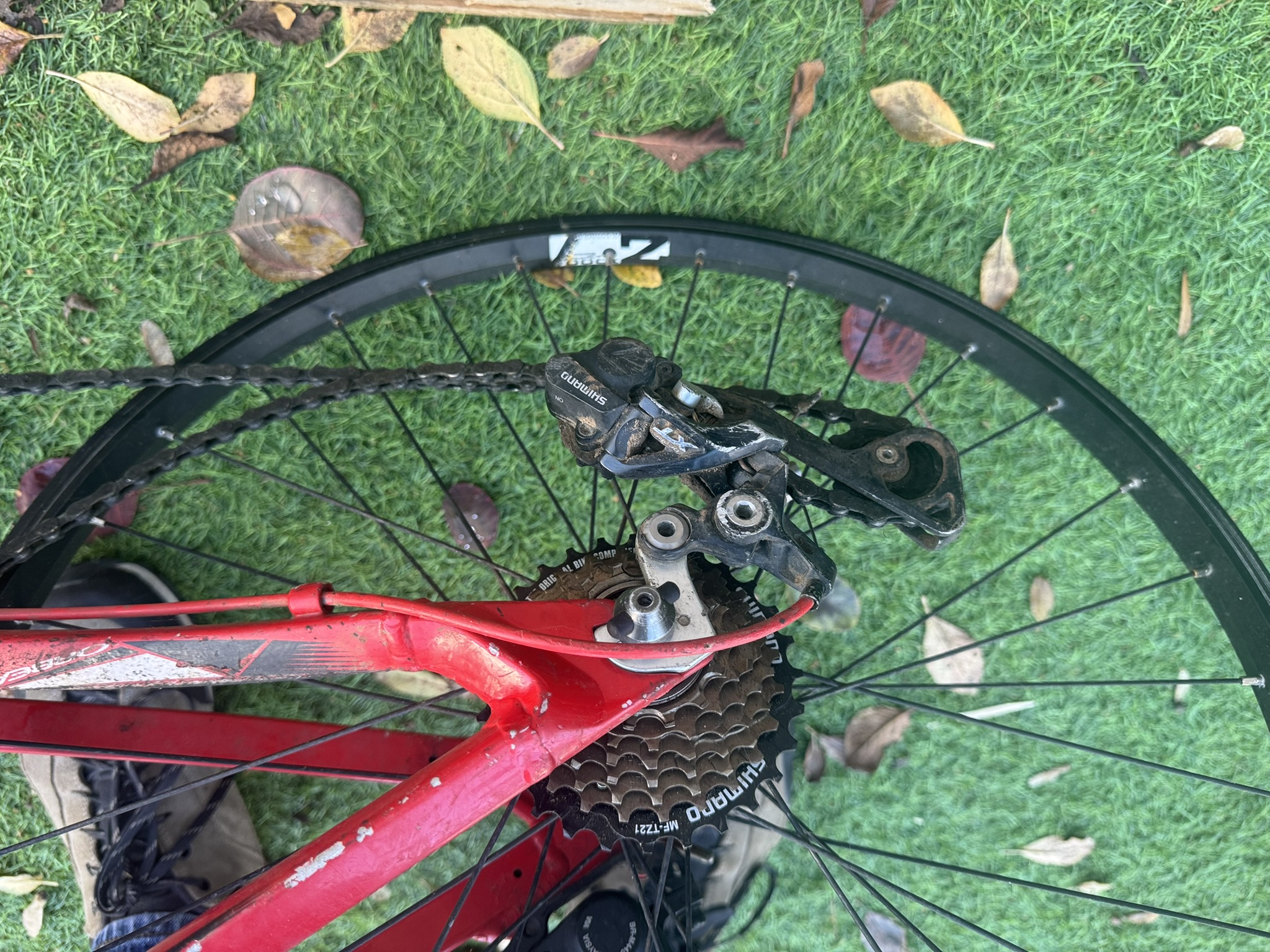 - 10 speed XT drivetrain with expander on the cassette for an easier low gear — cassette not pictured as it doesn’t fit the wheels in the pictures