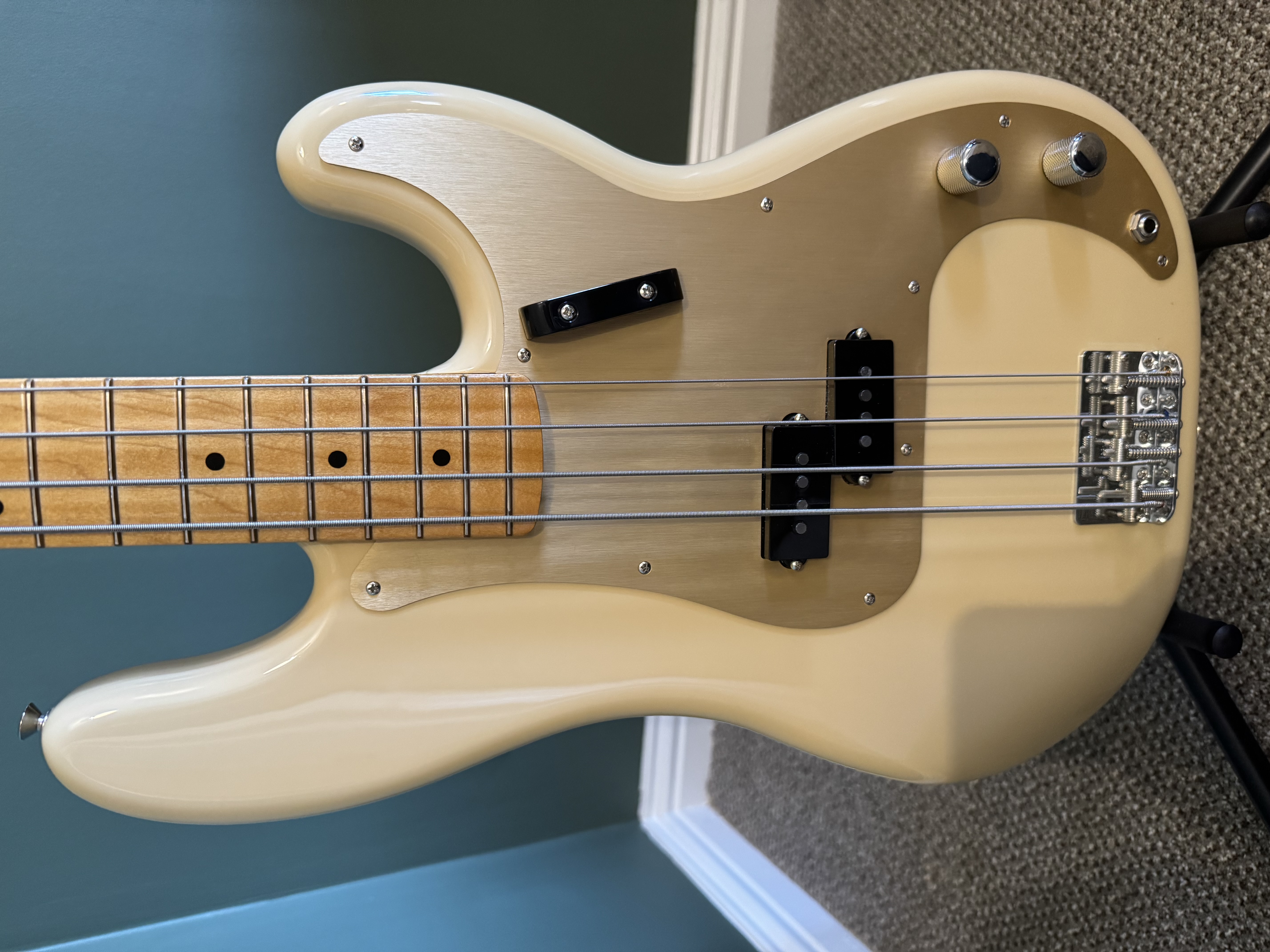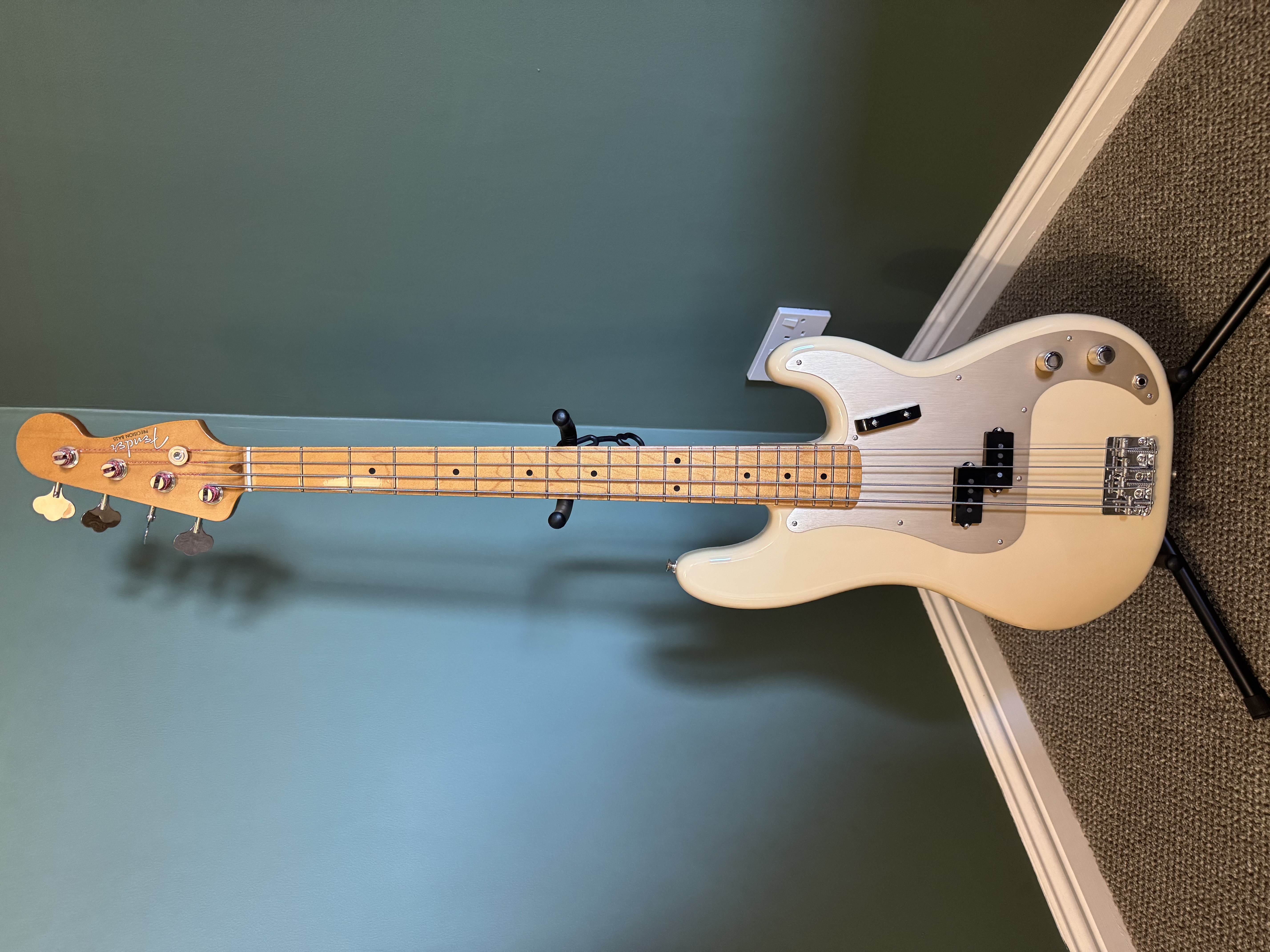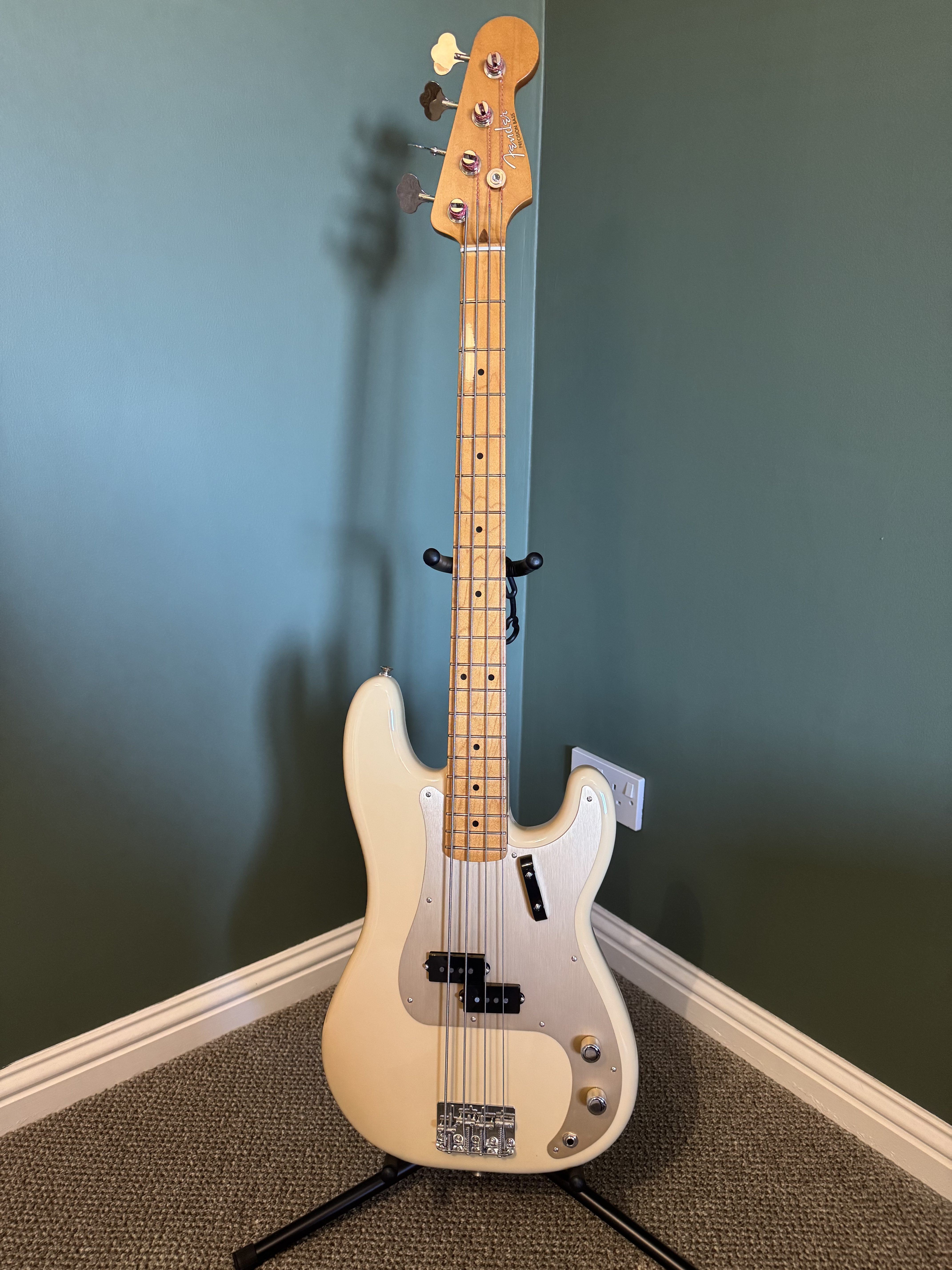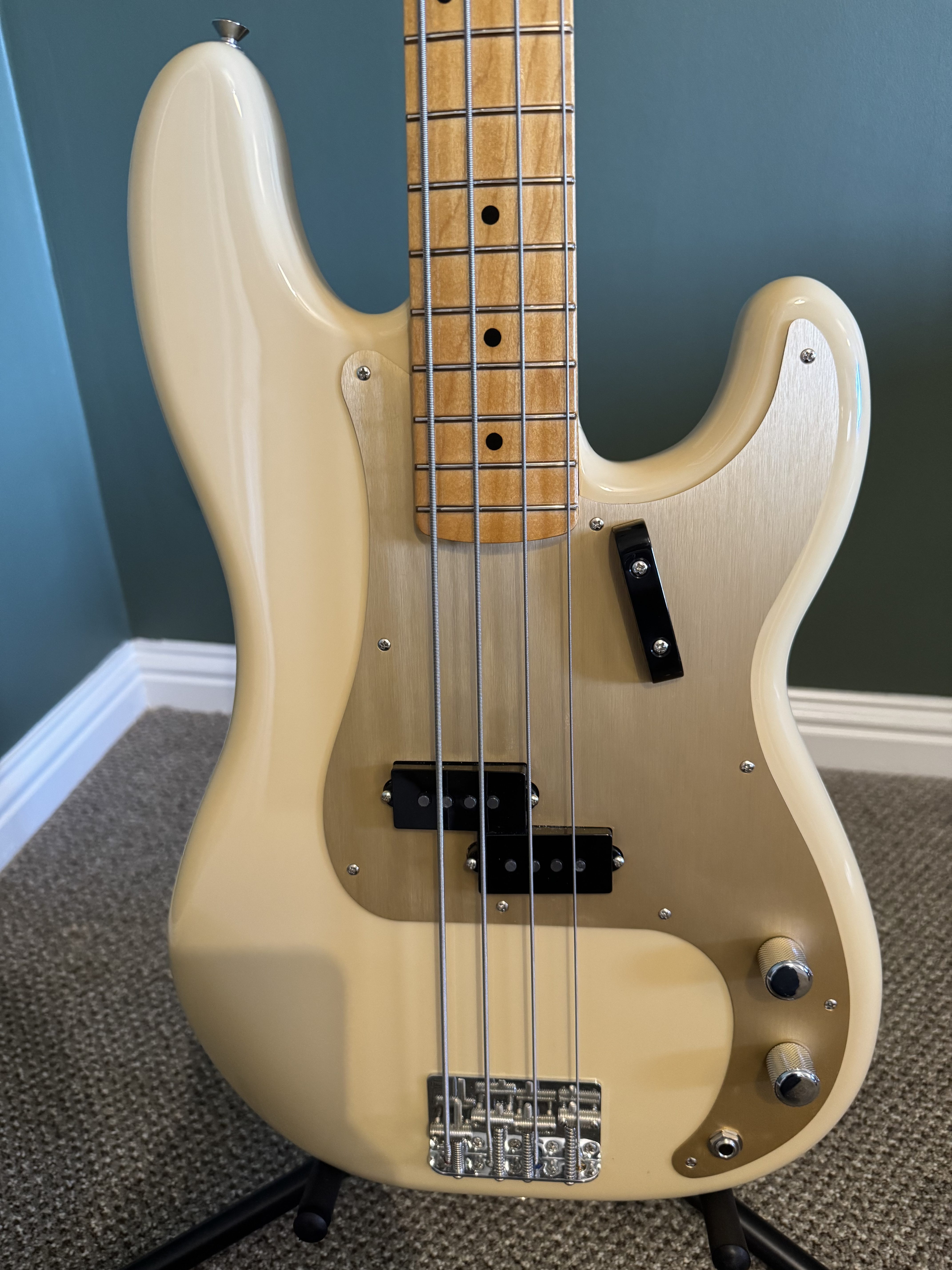 Bought new in August 24 as a companion to my Vintera Jazz bass. 50’s style split coil pick up, combined with vintage style hardware make for an amazing sounding and looking bass.