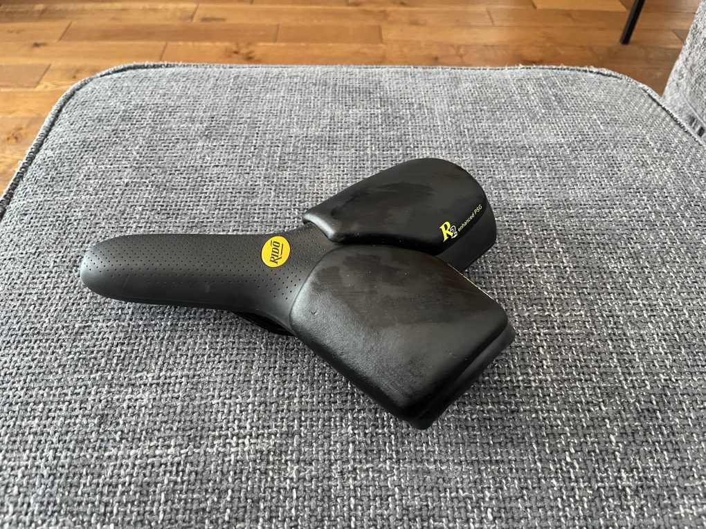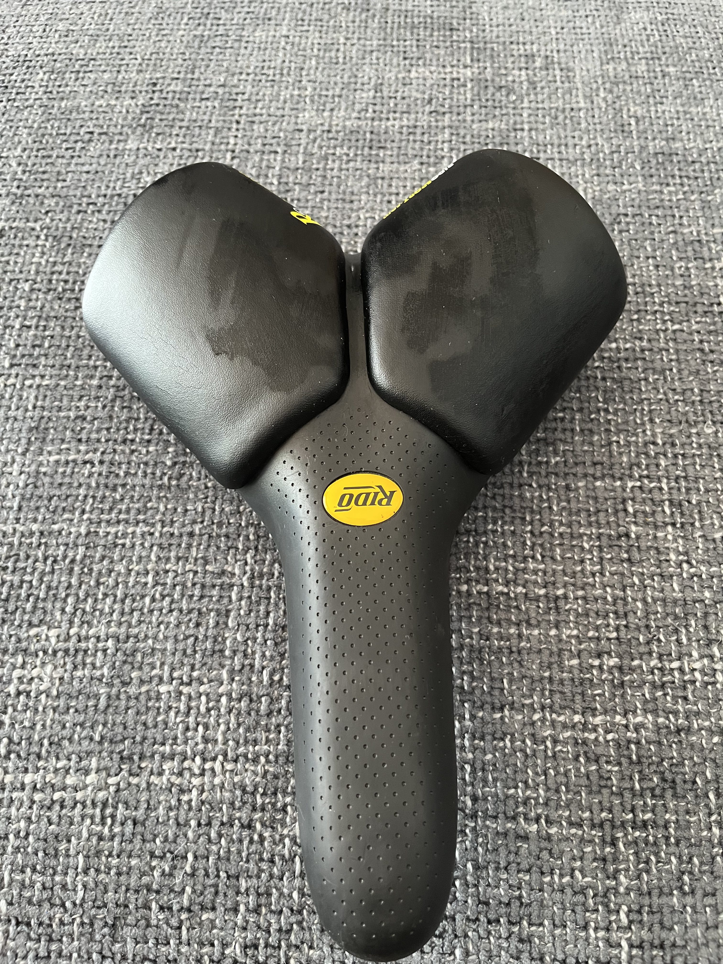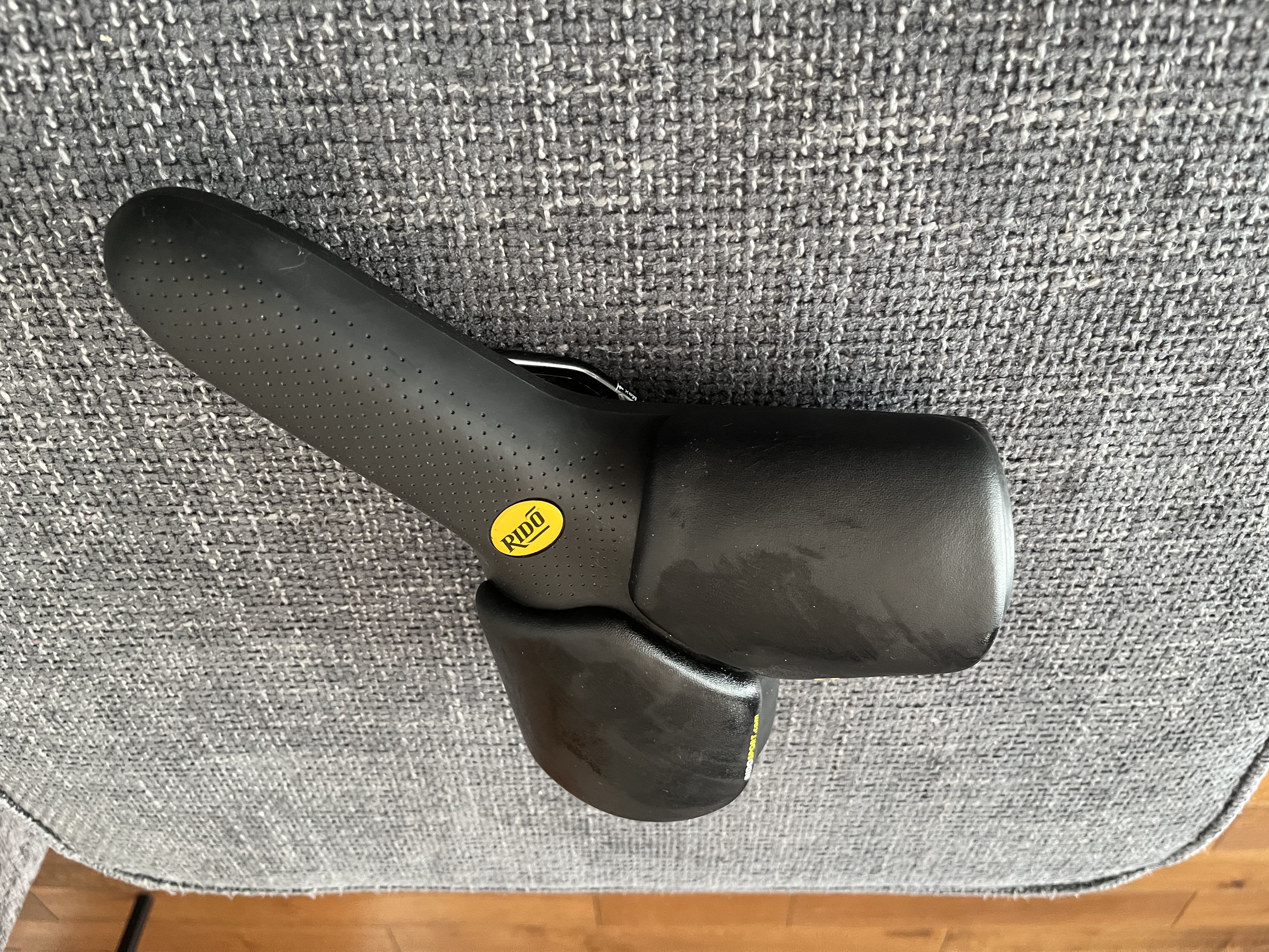 Also free a weird RIDO R2 saddle. Bought from here a few years ago after a coccyx injury to use on turbo.Â