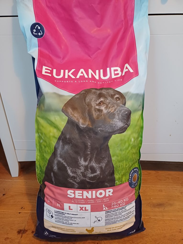 An almost full 12kg bag of Eukanuba Senior Large breed.Â