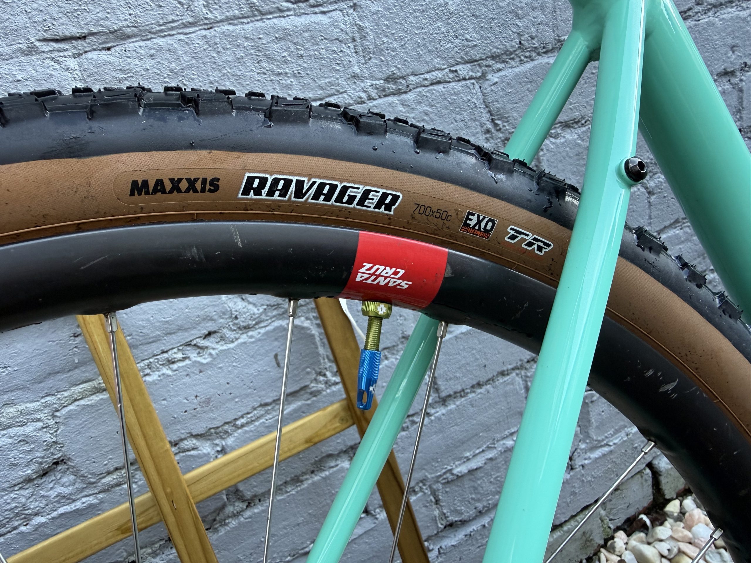 - Custom built Santa Cruz Reserve 27 carbon rims on Bitex green hubs
