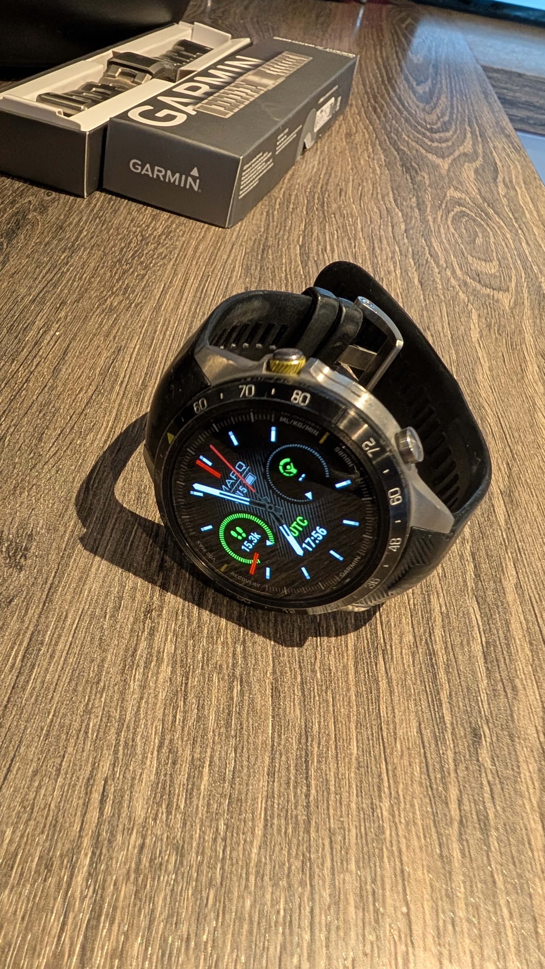 Used Garmin Marq 2 Athlete with brand new genuine Garmin black silicon strap and brand new genuine Garmin titanium band. About £1800 all in when purchased new from Garmin. It’s their top tier watch range with absolutely everything Garmin offer fitness/tracking wise.