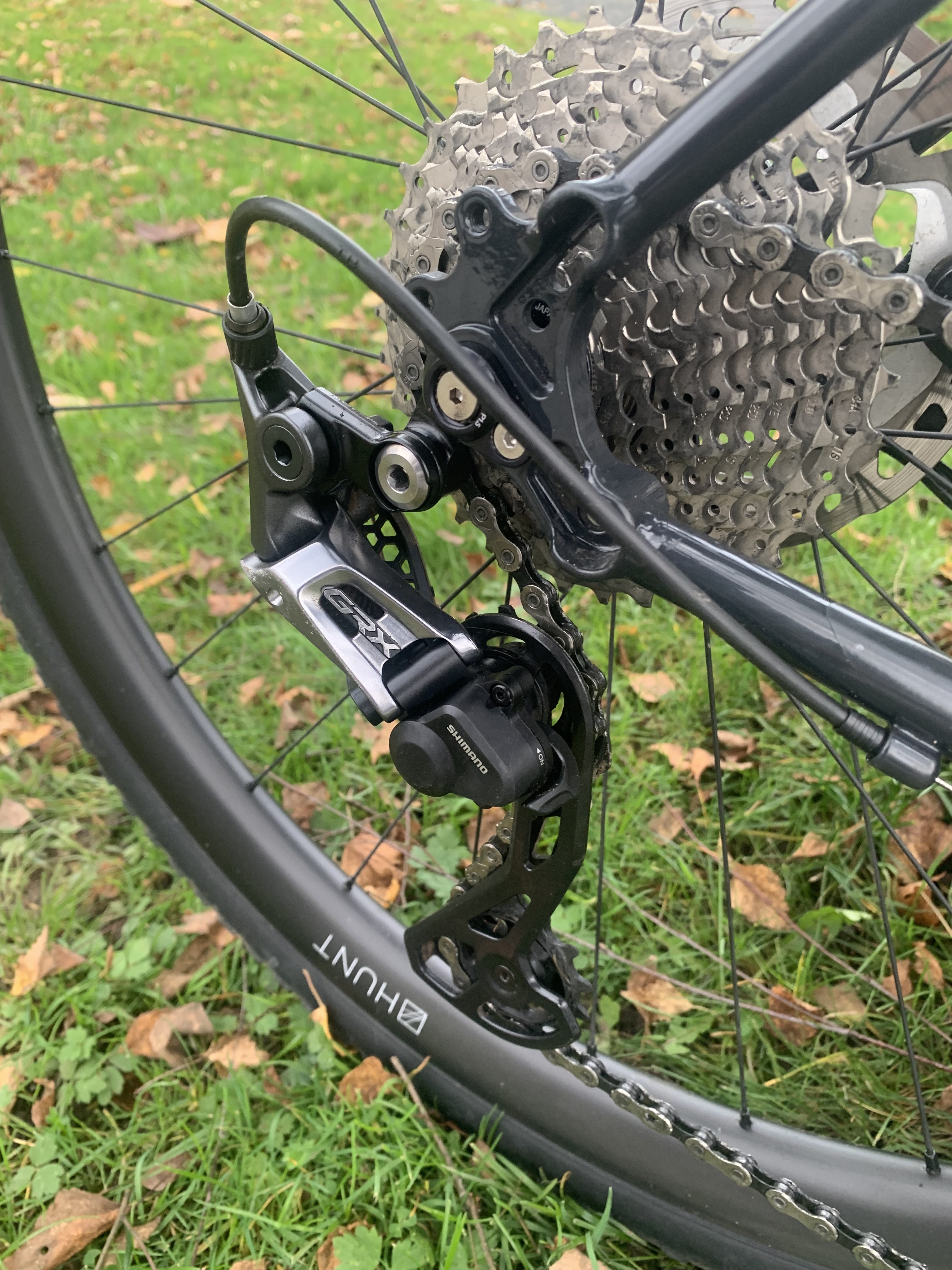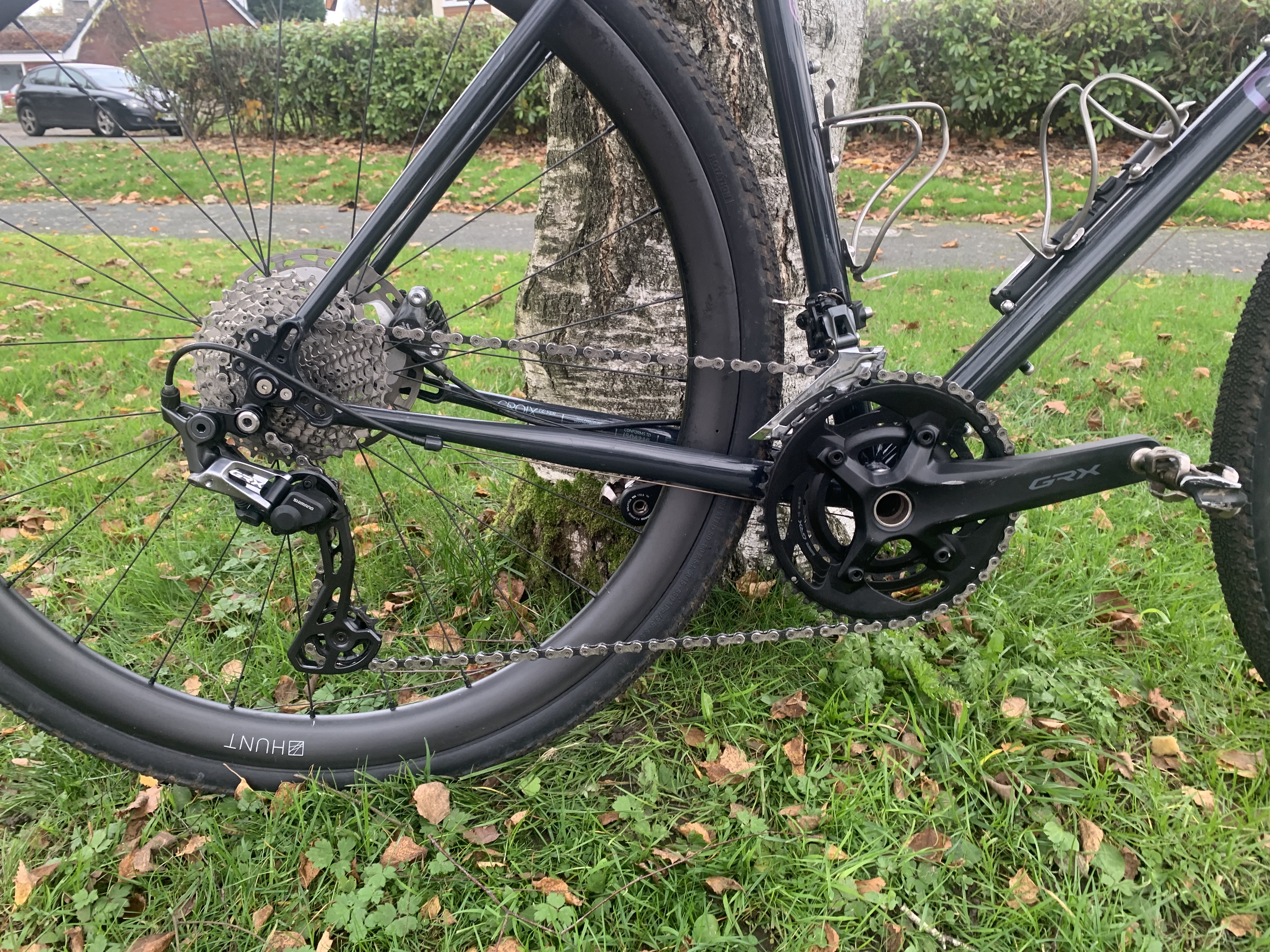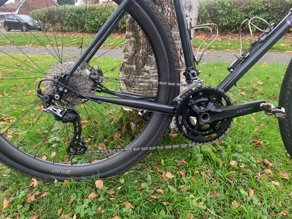 - Shimano GRX 800 series brakes, shifters, cassette and mechs (11-34 cassette)