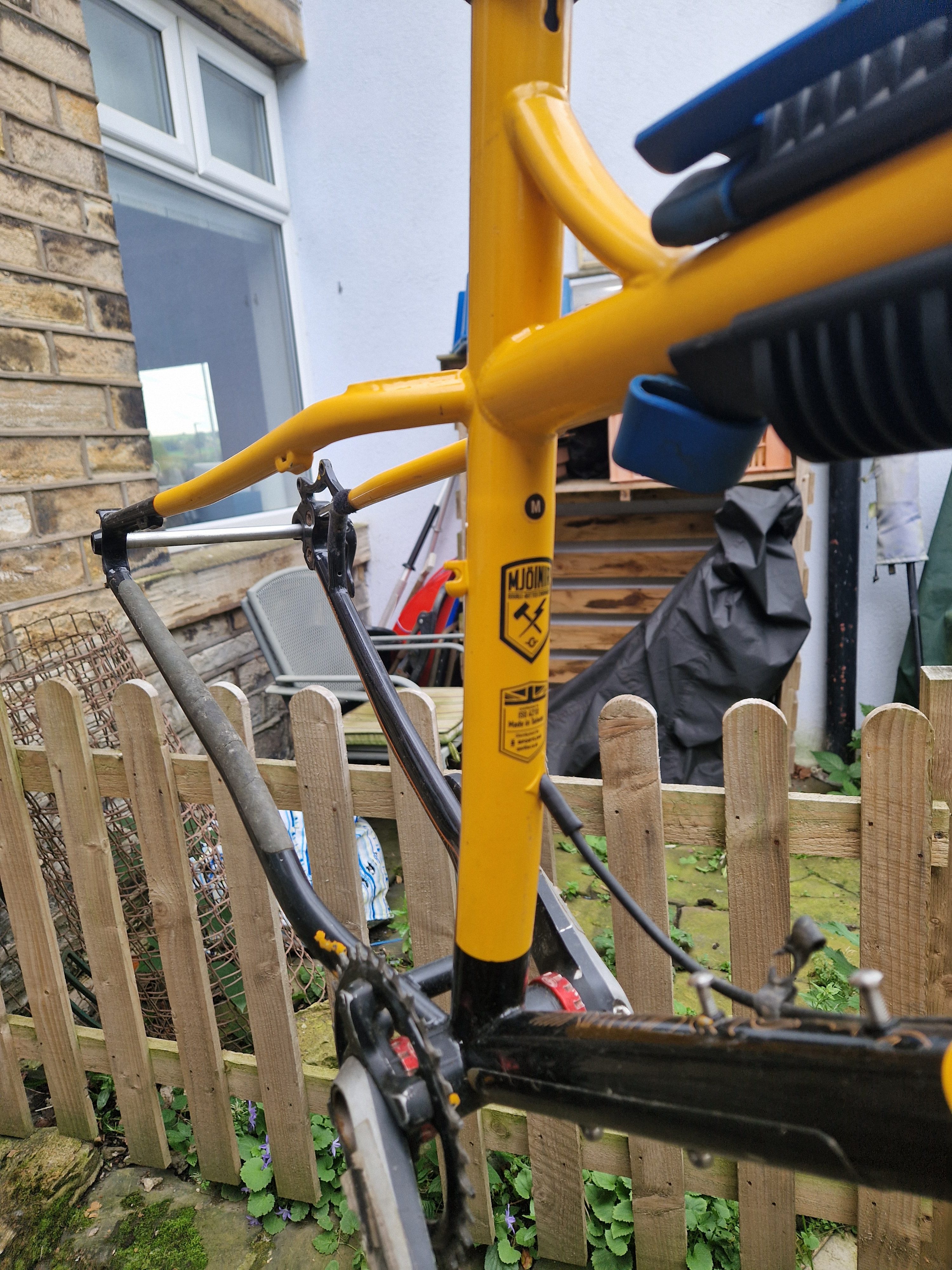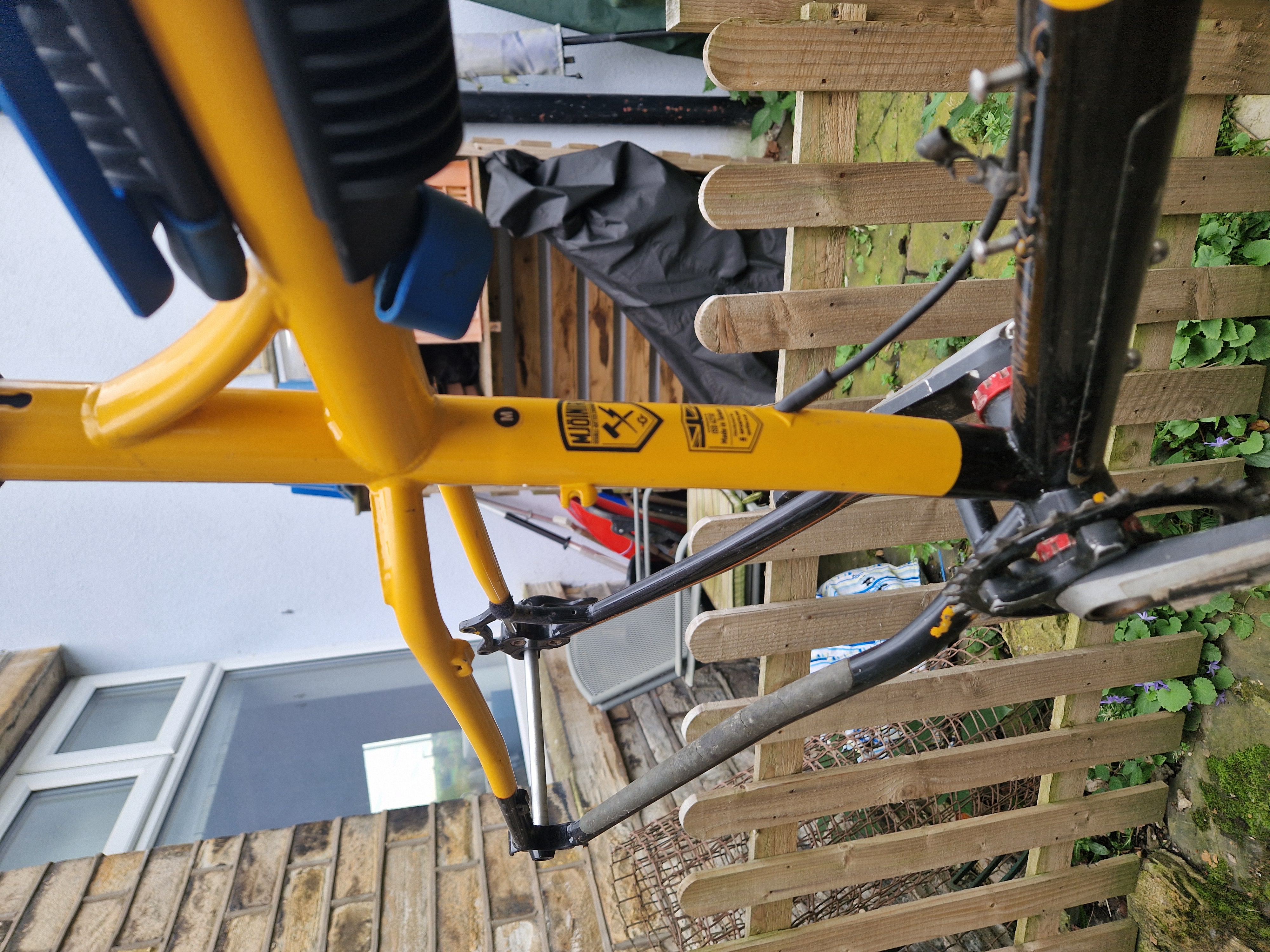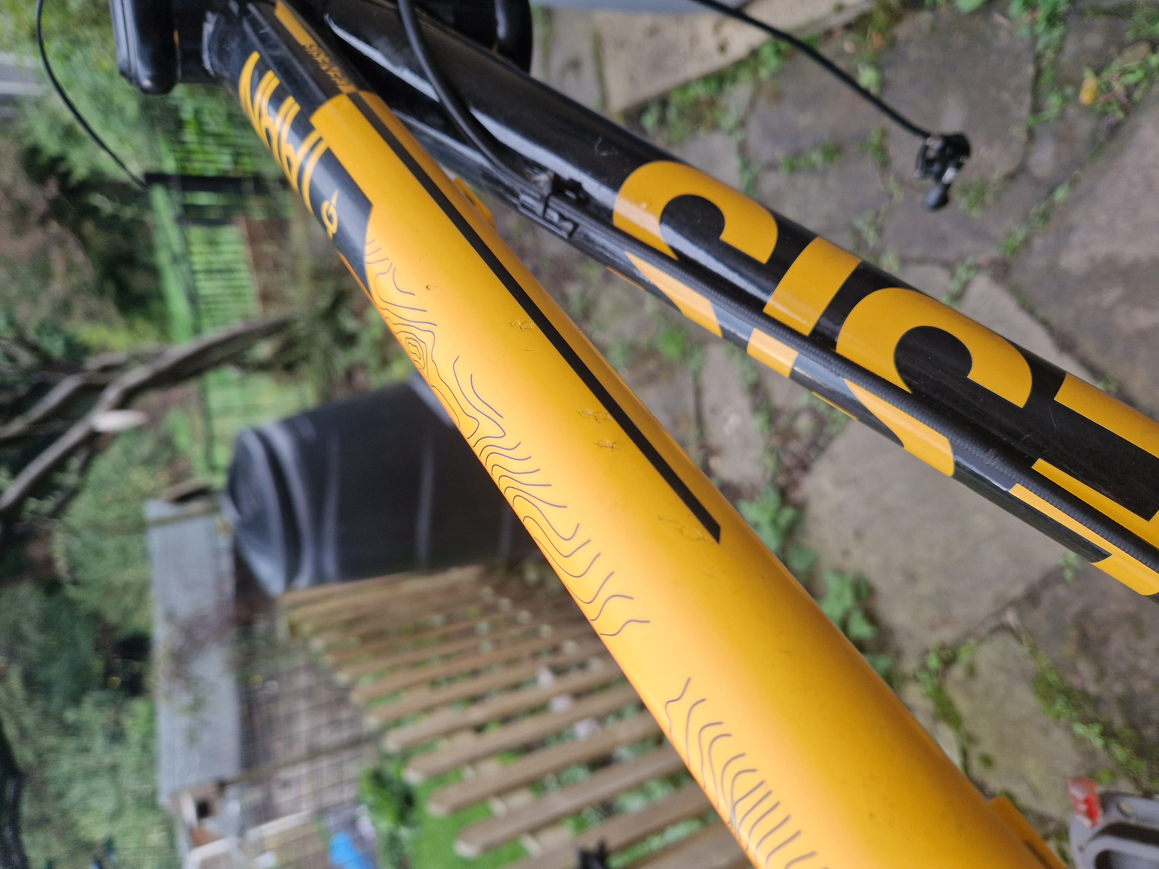 I applied some thick heli tape on the downtube (looks a bit tatty but does the job) and in other key areas, so it’s peeling but that’s to be expected.