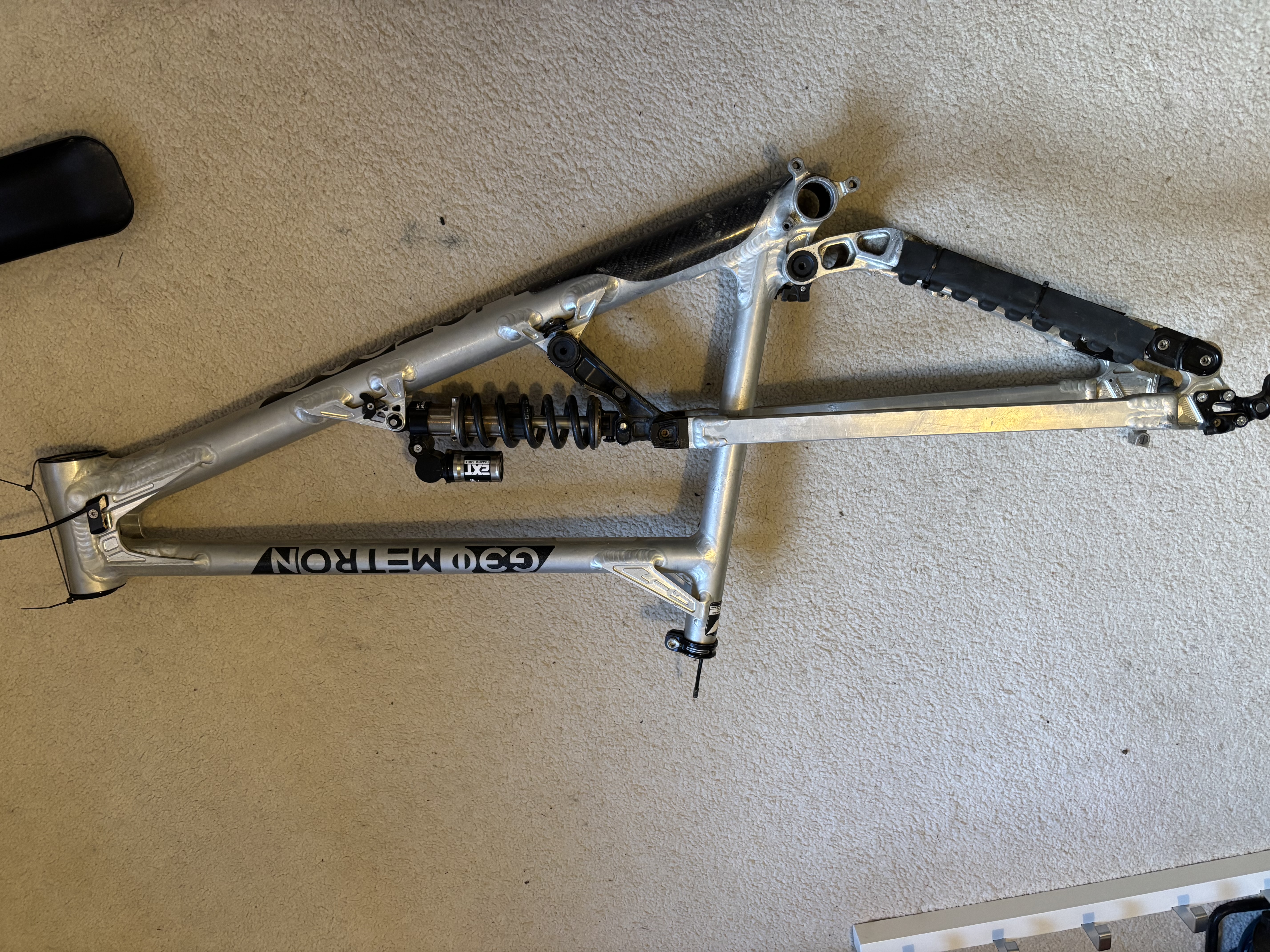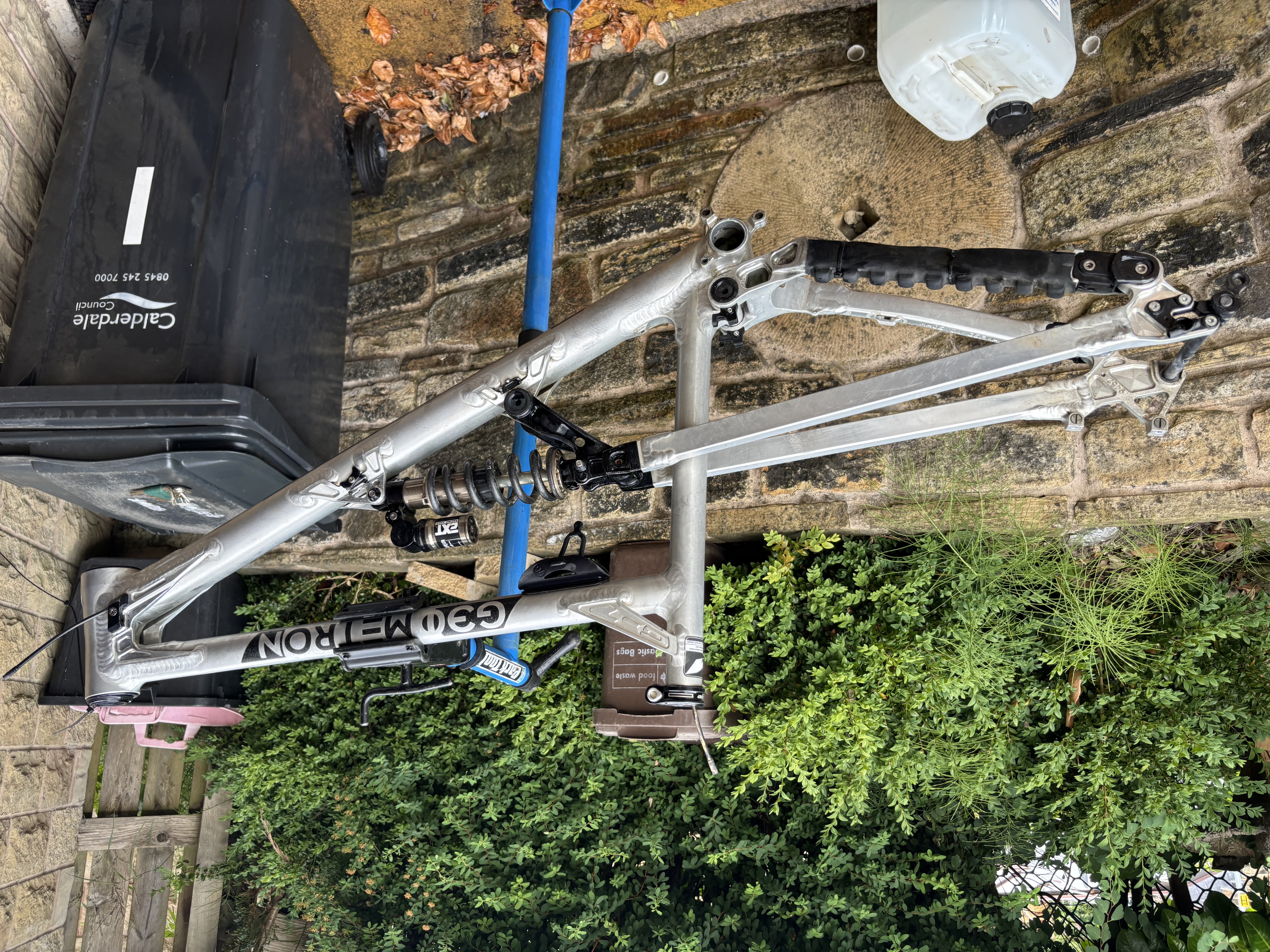 Geometron G1 in XL. Comes with EXT Storia v3 plus Hope Headset and seat clamp. The bike was stripped down in June ahead of my new frame arriving and hasn’t been used since. The shock was serviced by Jack at Mojo at the end of Feb. Comes with rockguardz which has protected the frame since new, and the original chainstay protector, plus spare mech hanger. Bombproof frame, any questions give me a shout. I’m located in Halifax, West Yorks but can post at cost.