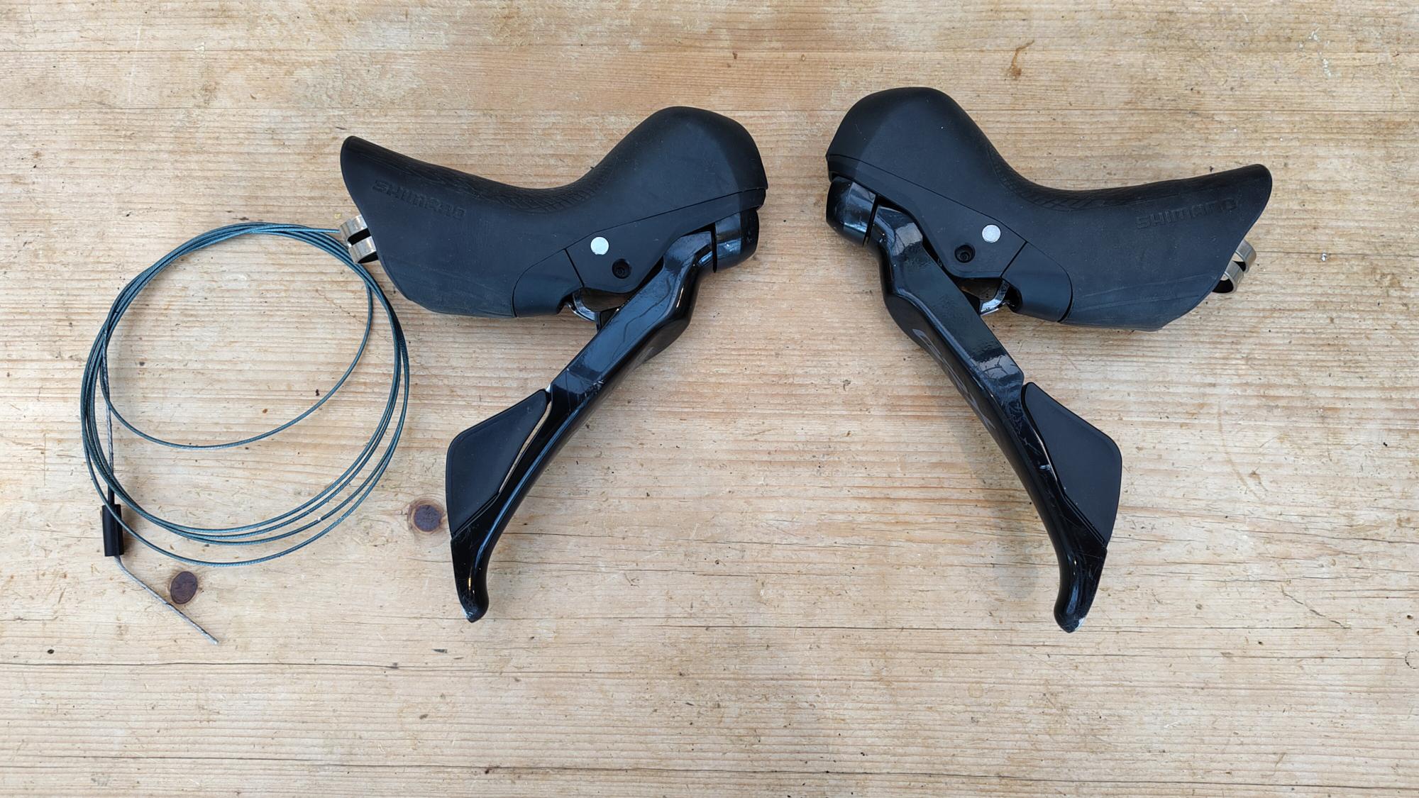 These are 2×10 speed, working perfectly but with a couple of light scratches to the outside of the brake levers.