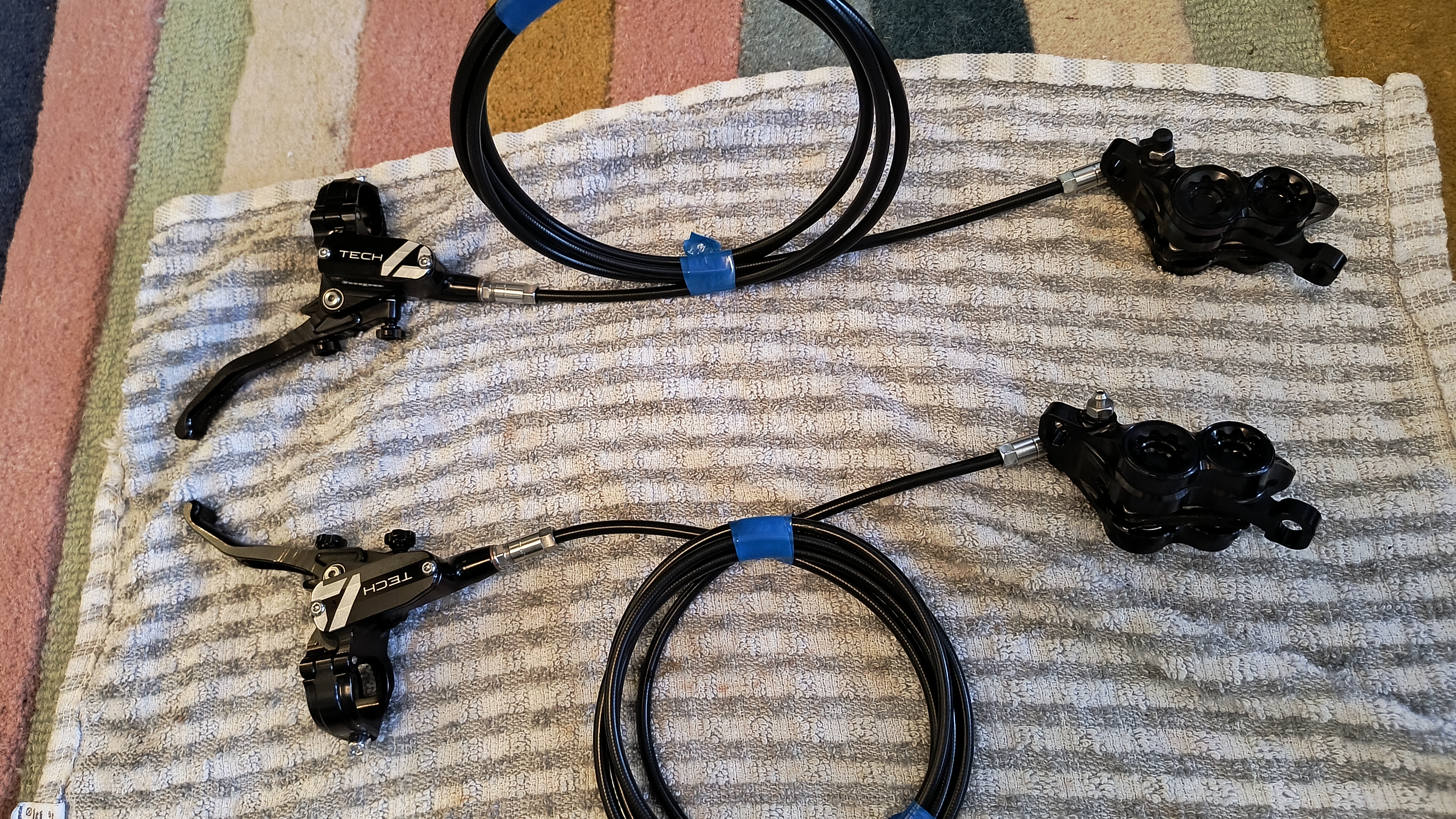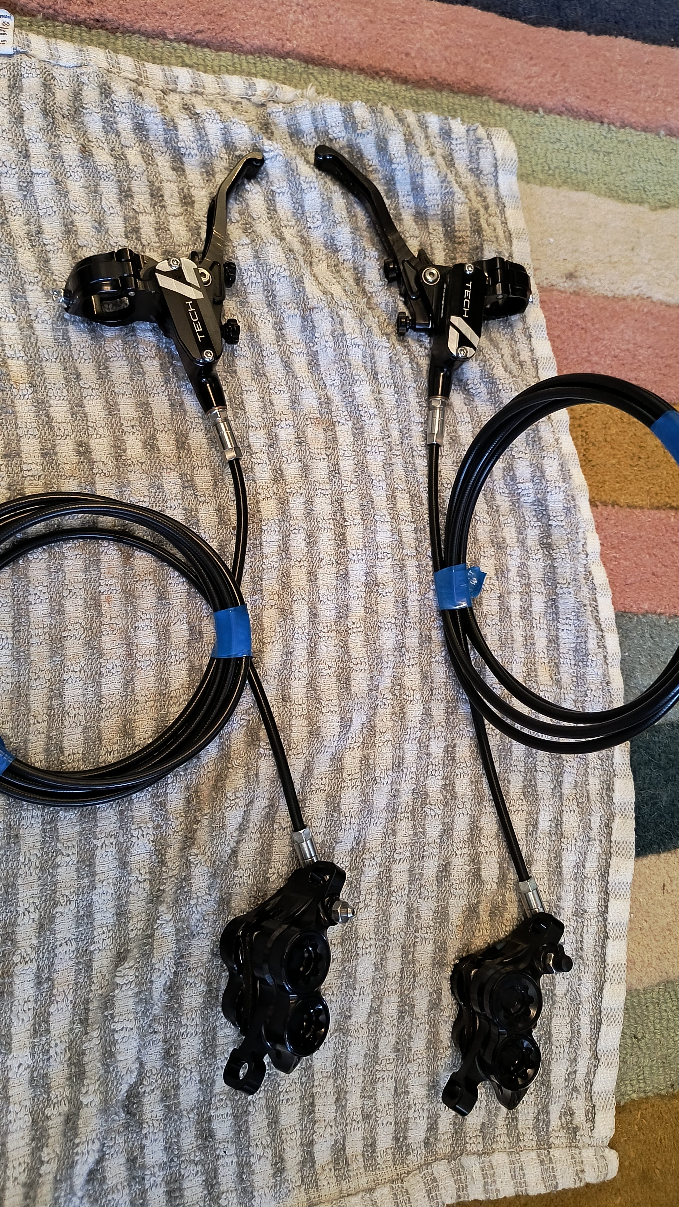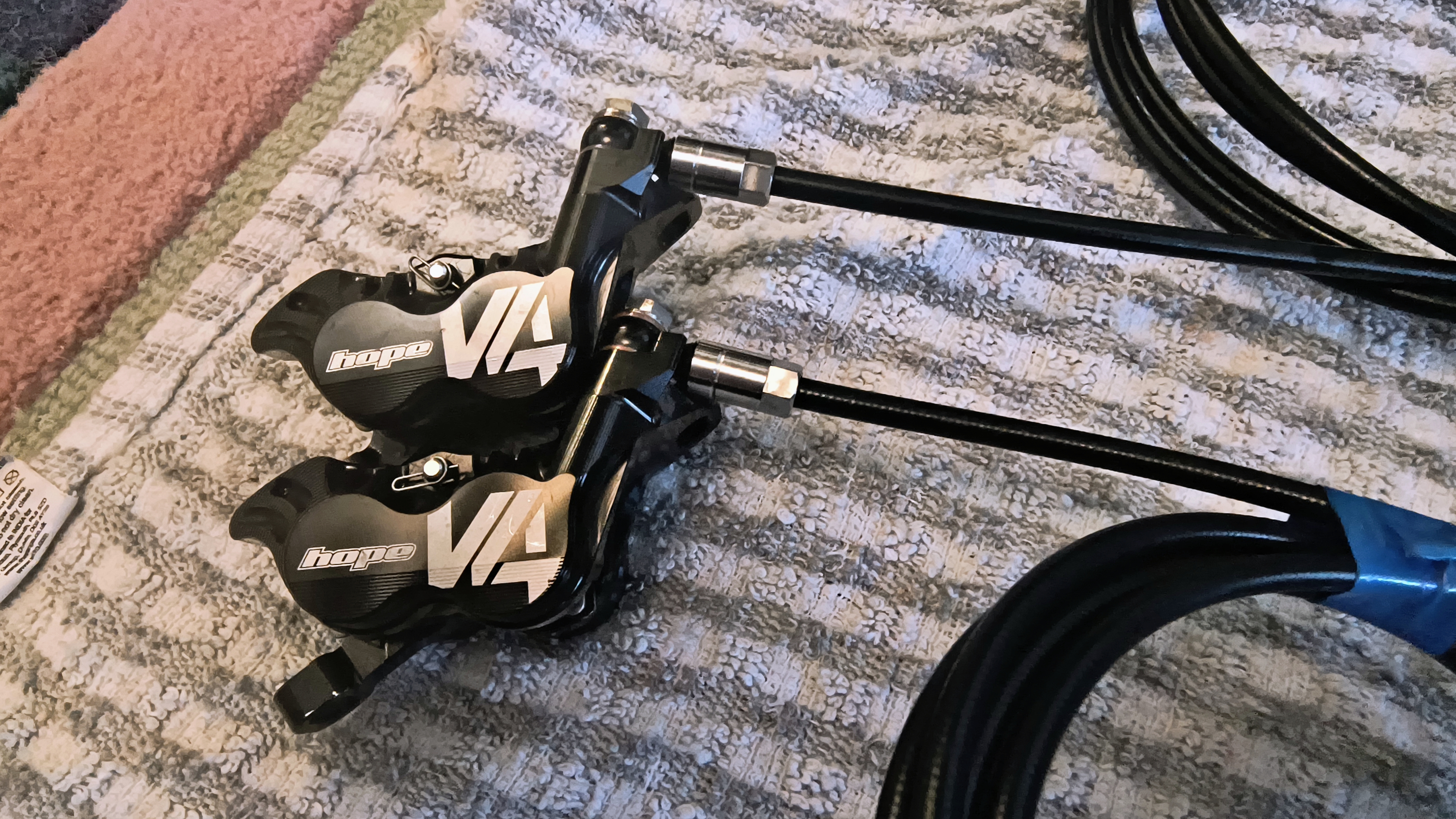 Hope Tech4 V4 front and rear, in black/black with 1700mm new hoses (both will need bleeding).
