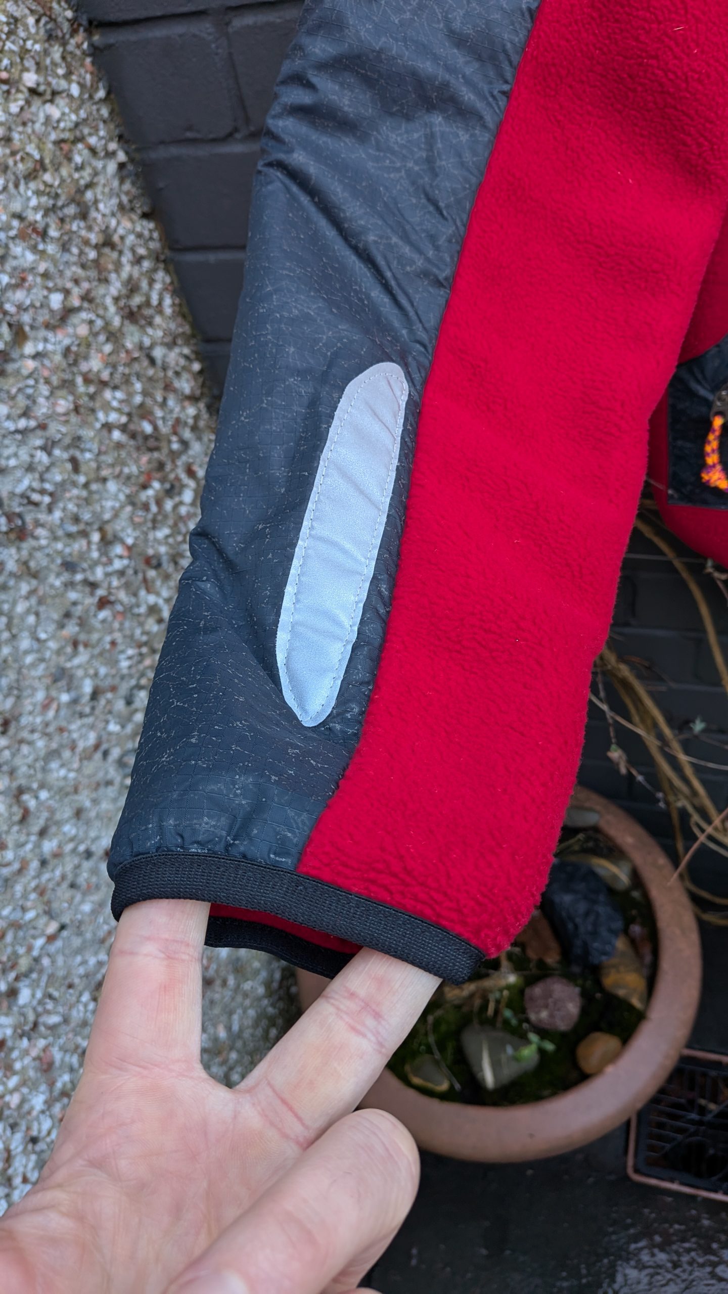 Primaloft fleece and windproof front. Perfect for this time of year.