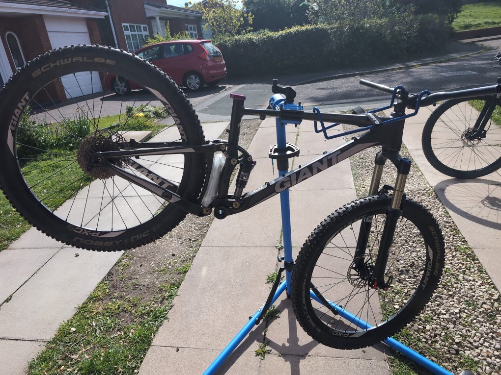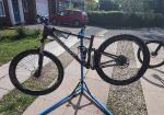 Incudes the frame, fork, 26″ wheels (non boost bolt through front, qr rear) spare, new BB because I forgot to fit a spacer when I did the BB, meaning I had to run the crank without the retaining bearing cap.