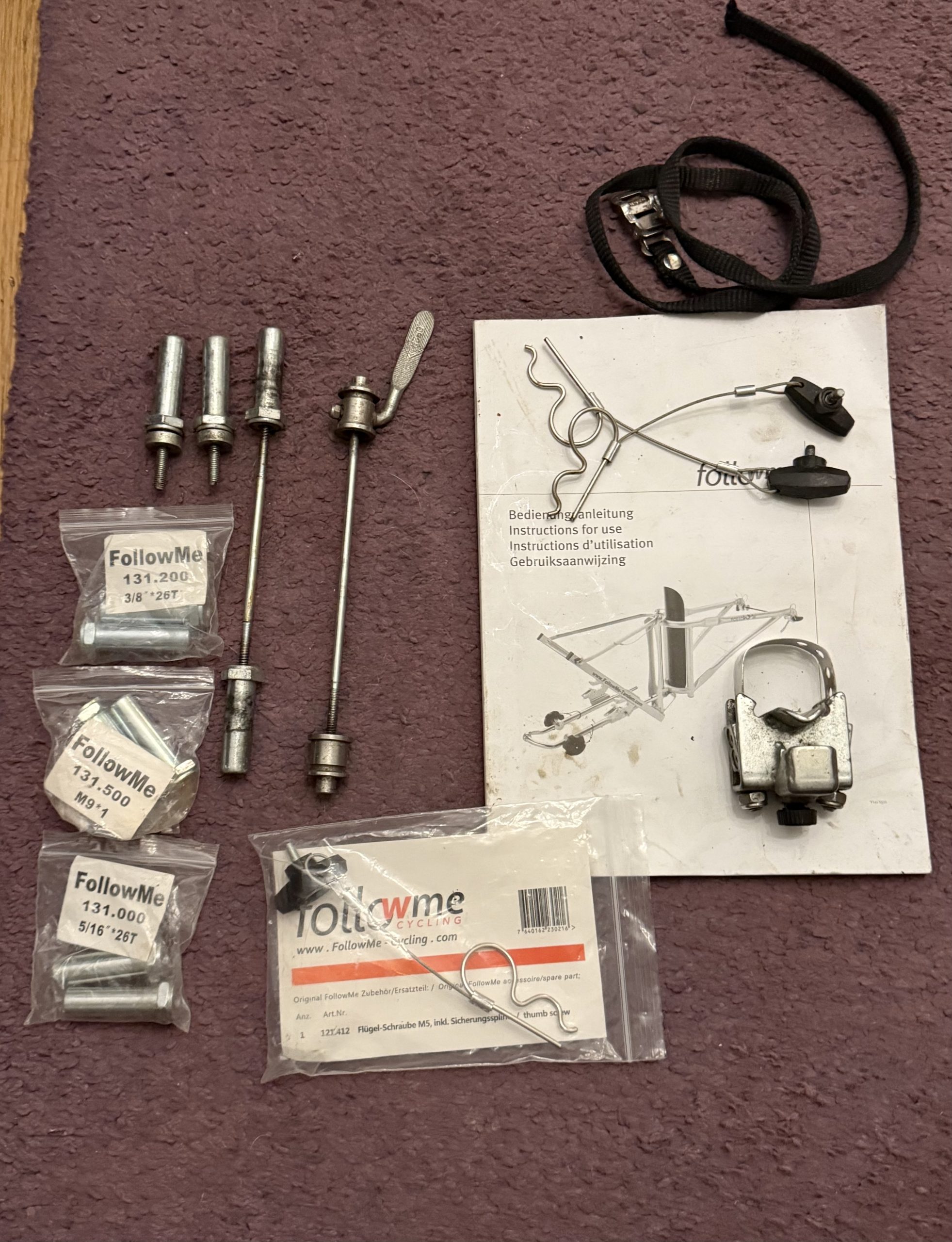 we used it with frog and Isla bikes and the required adaptors are included as well as the unused extras. We replaced the storage strap at some point with the one included. A couple of metal straps are included for the fitting kit, these were cut to suit 14/16/20 bikes.