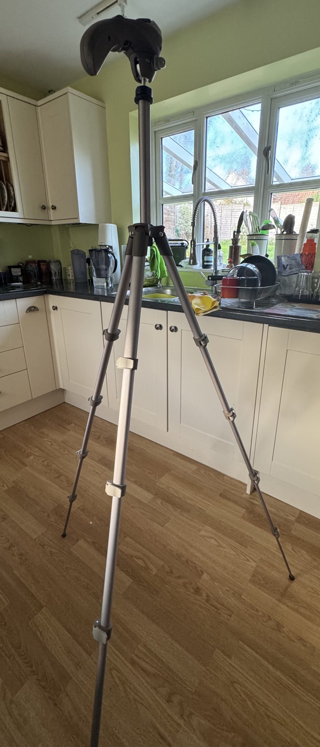 Manfrotto compact series tripod. As new, I don’t think it’s ever left the house. Extends to 5 feet tall. Boxed with tags and manual.