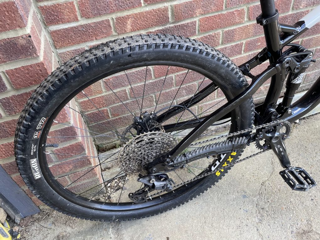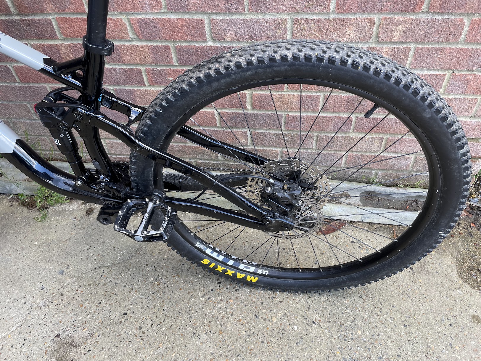 WTB i30 rims on SRAM hubs with Maxxis Recon and Assengai tyres set up tubeless.