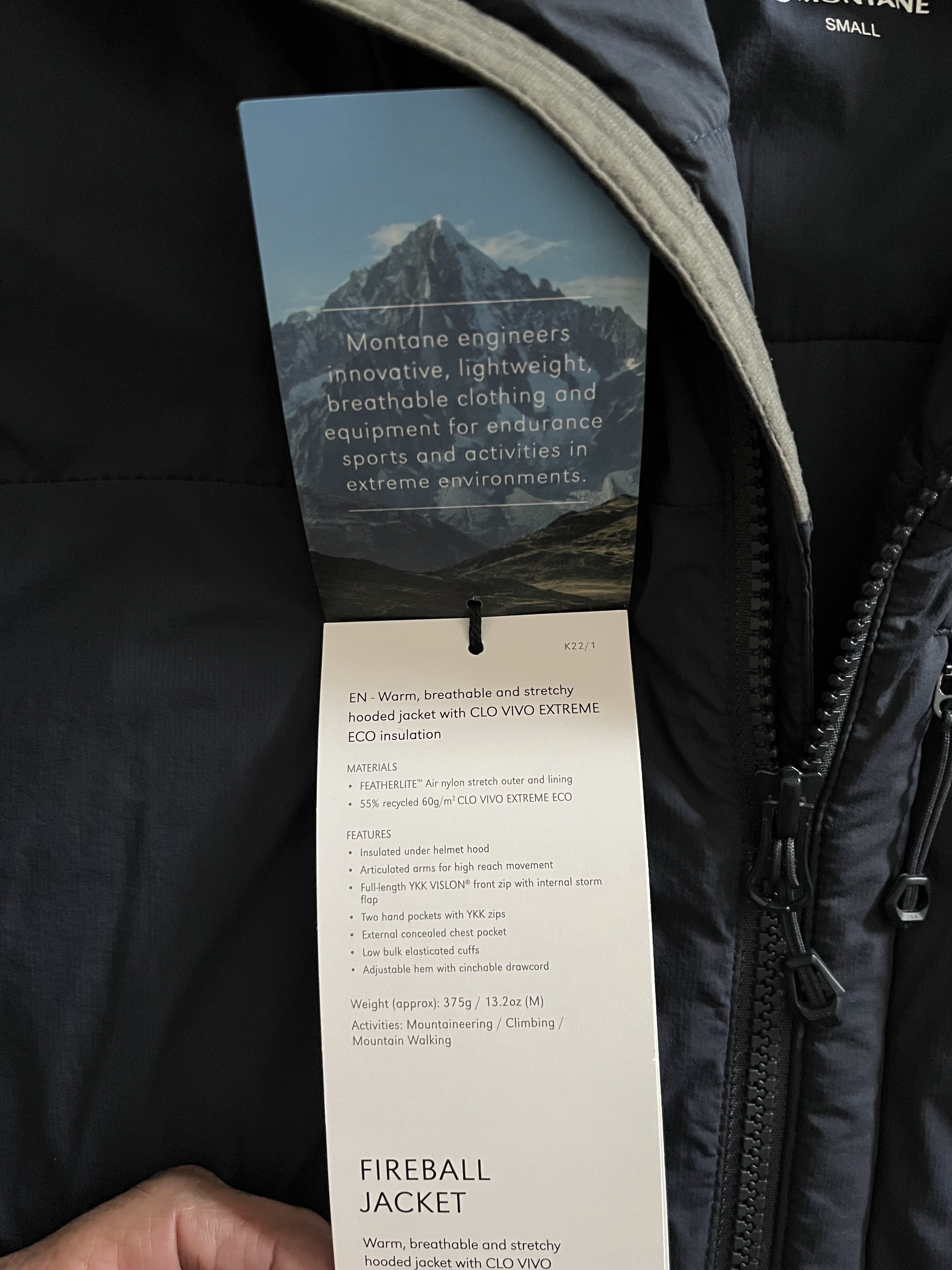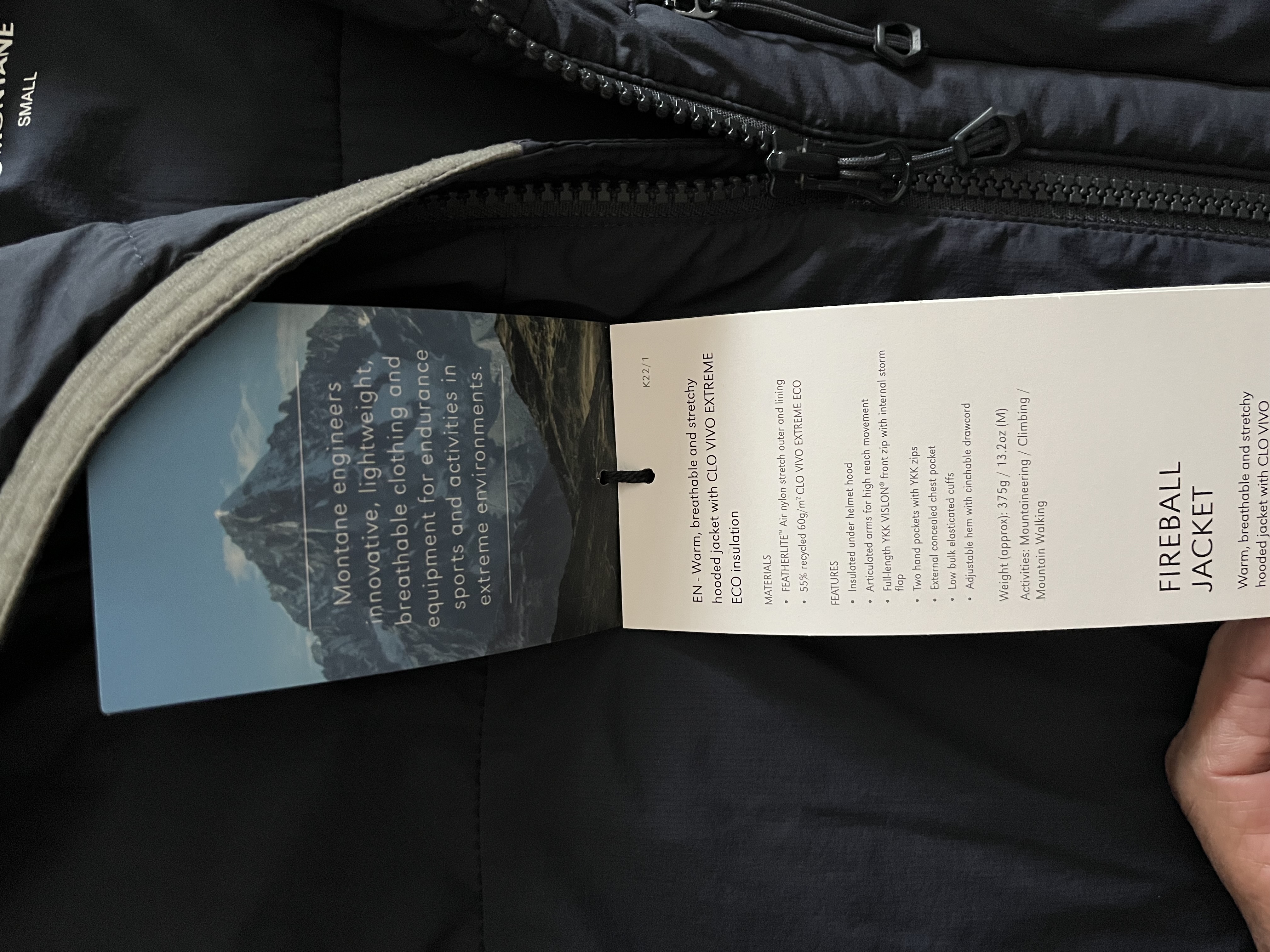 Montane Fireball insulated jacket. Men’s small in eclipse blue (dark blue). Excellent condition, no marks or wear. Price includes postage.Â