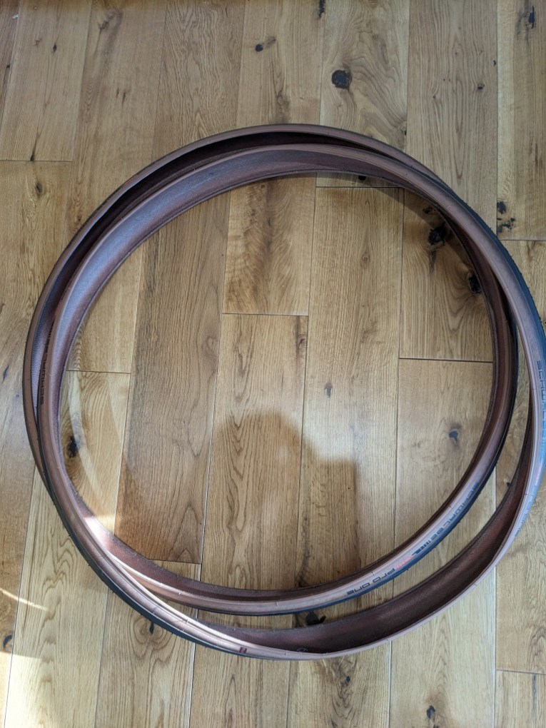 Brand New pair of Schwalbe Pro One Tyres 28mm TLE Addix, black & tan.