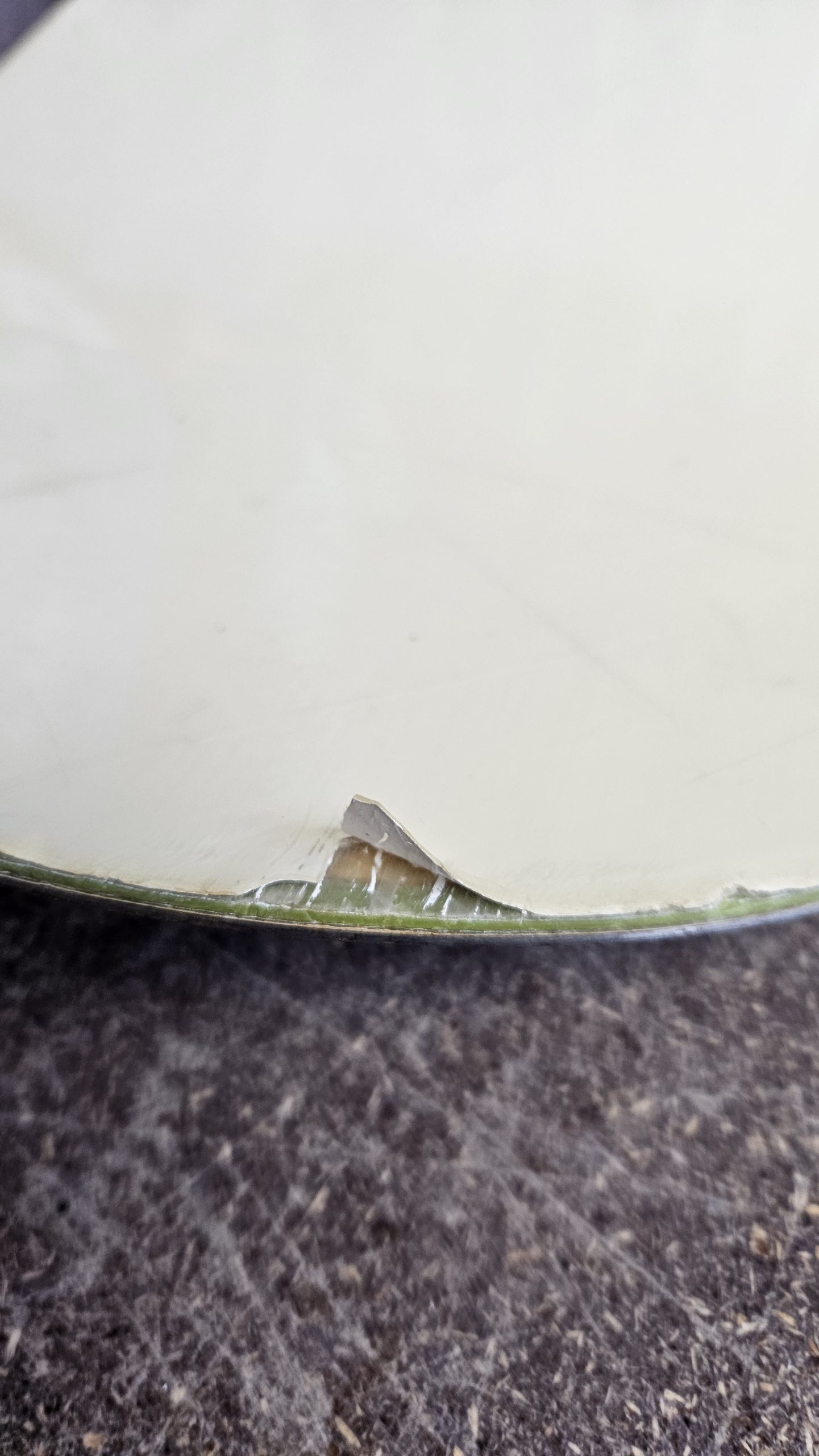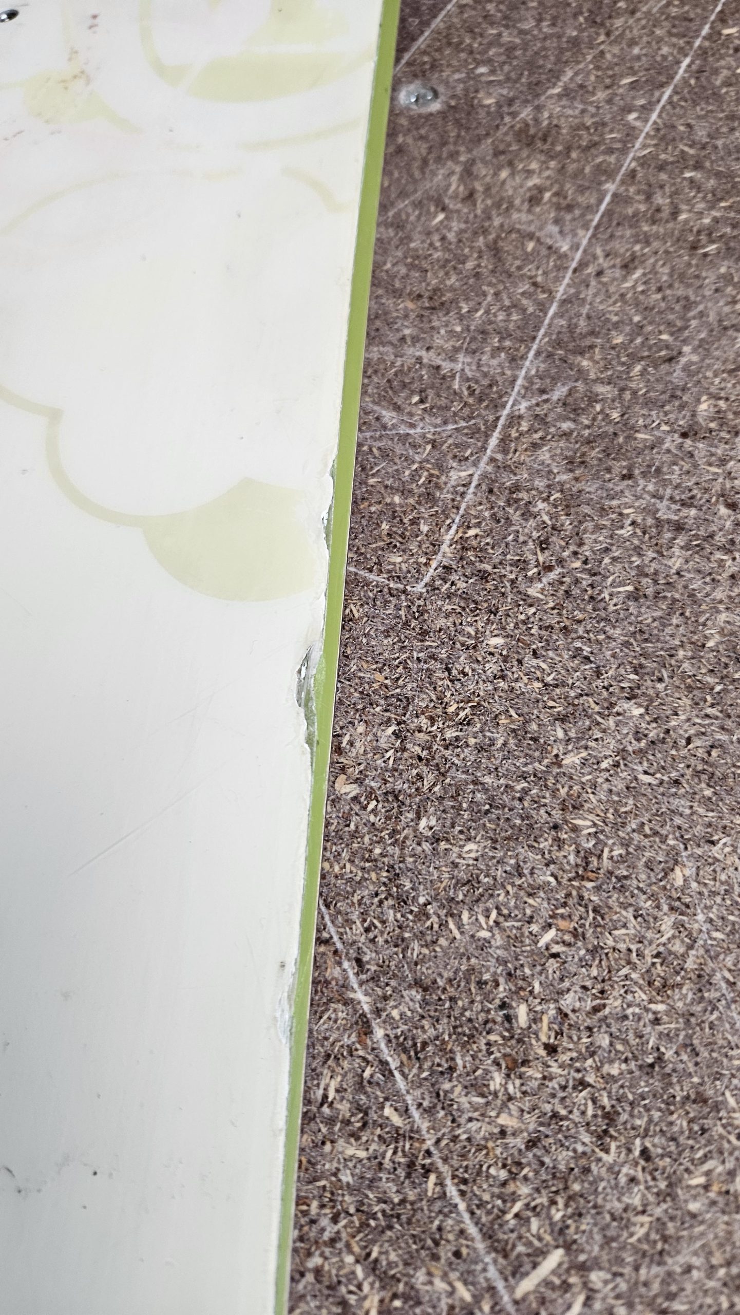 This has been well used over several trips (not recently unfortunately) and is showing the wear and tear you would expect. There is large chip on the top of the tail and various other chips all round. The top sheet has also yellowed slightly from the UV, it is noticeable where the bindings were installed.