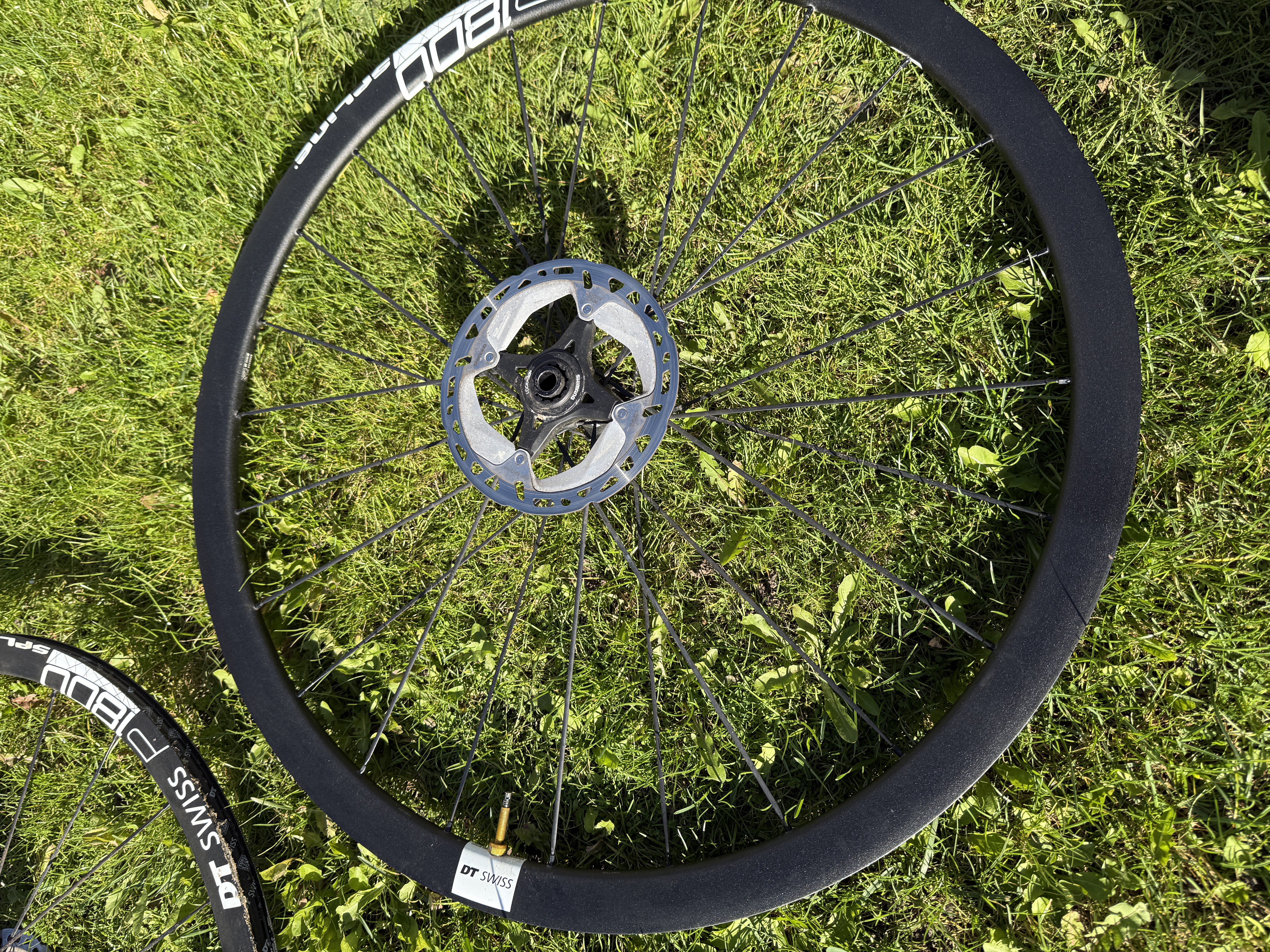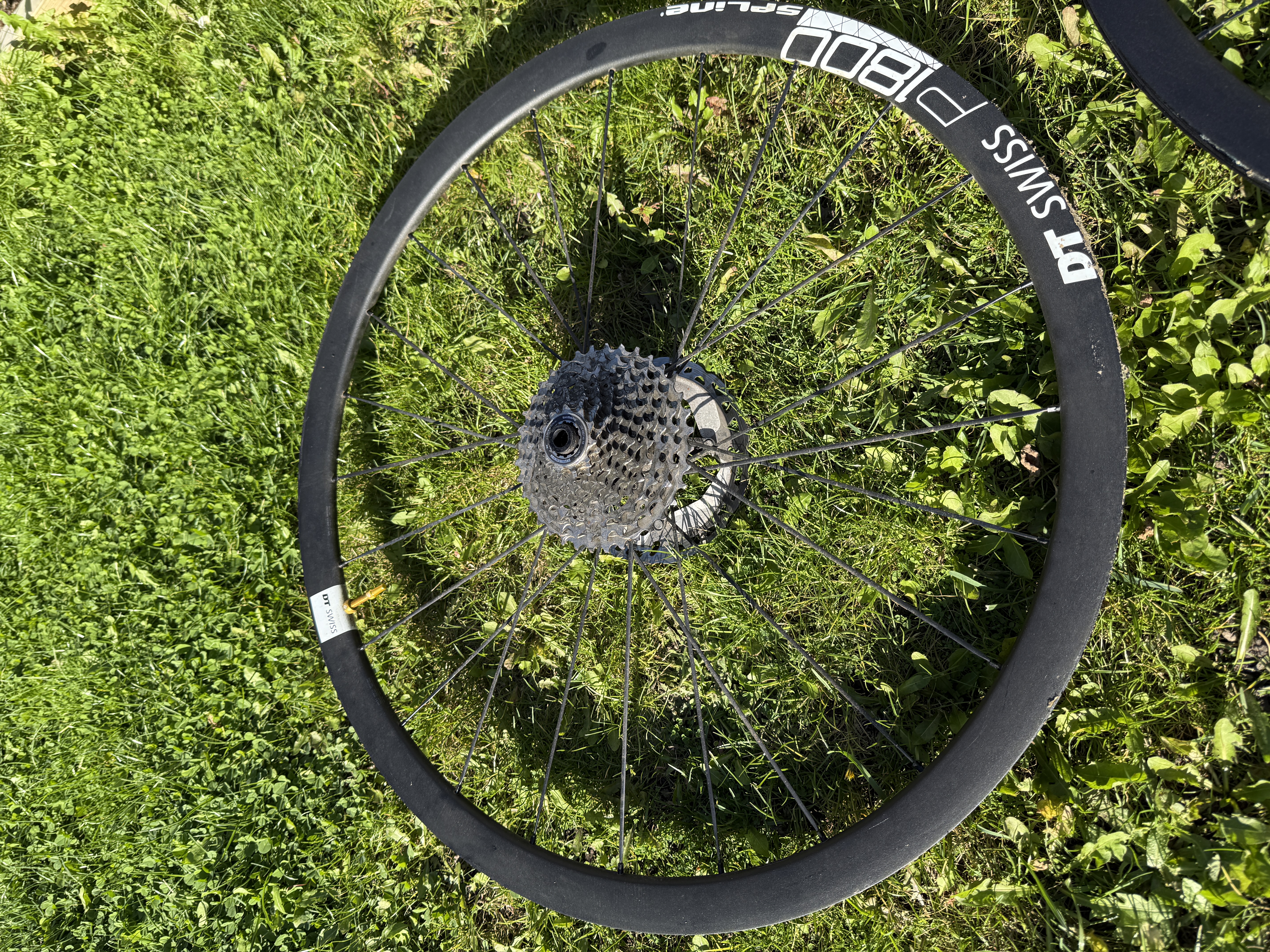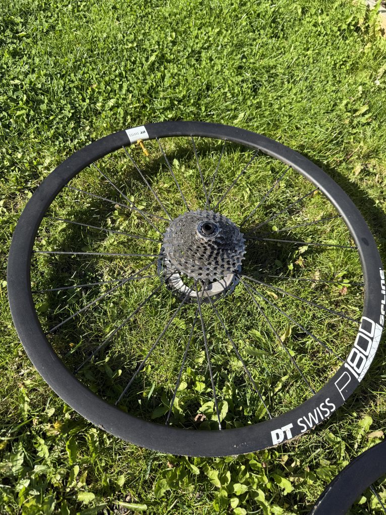 – Spare set of DT Swiss P1800 road wheels – have been set up tubeless but will come without any tyres mounted, Complete with cassette and discs.