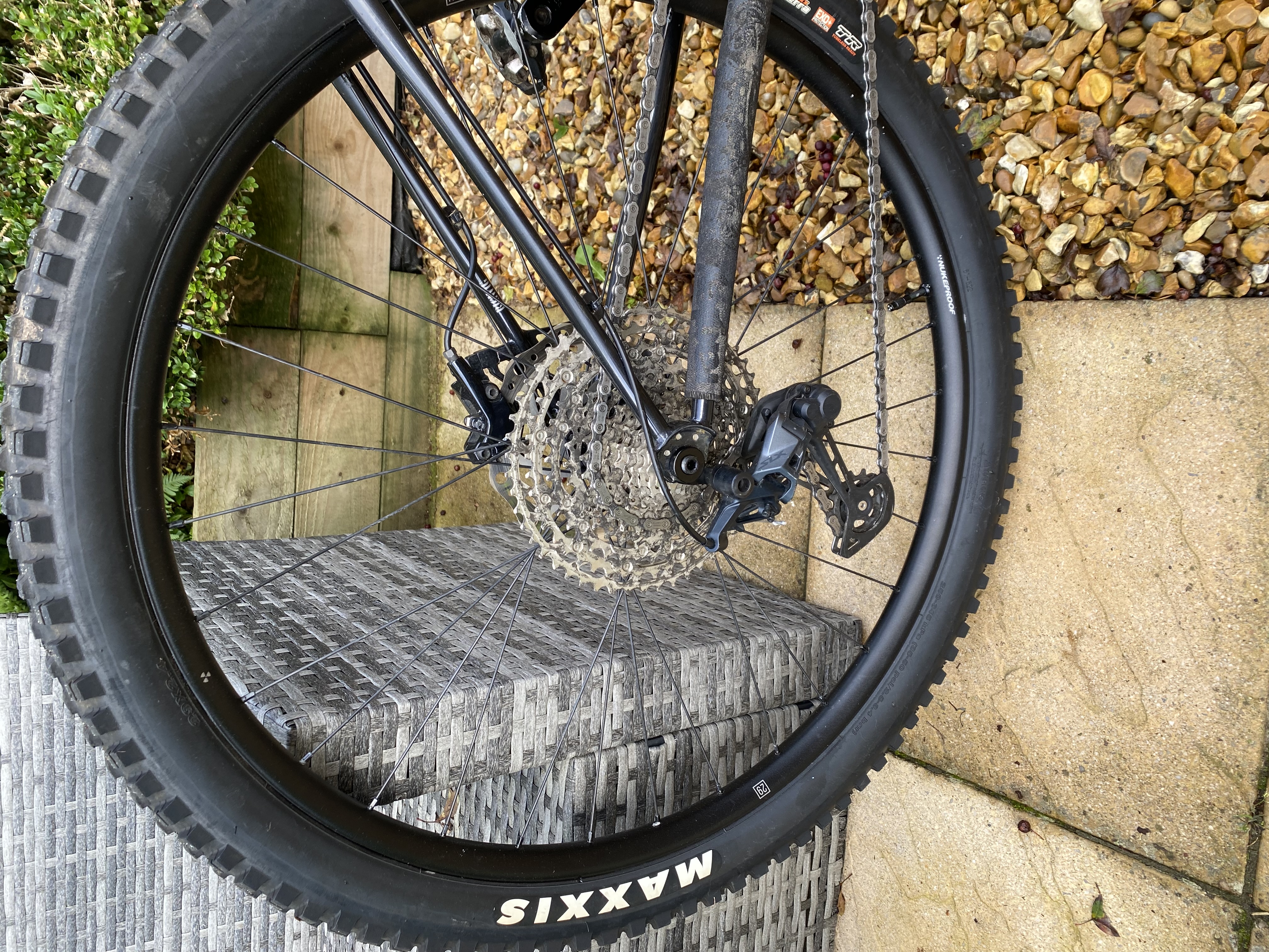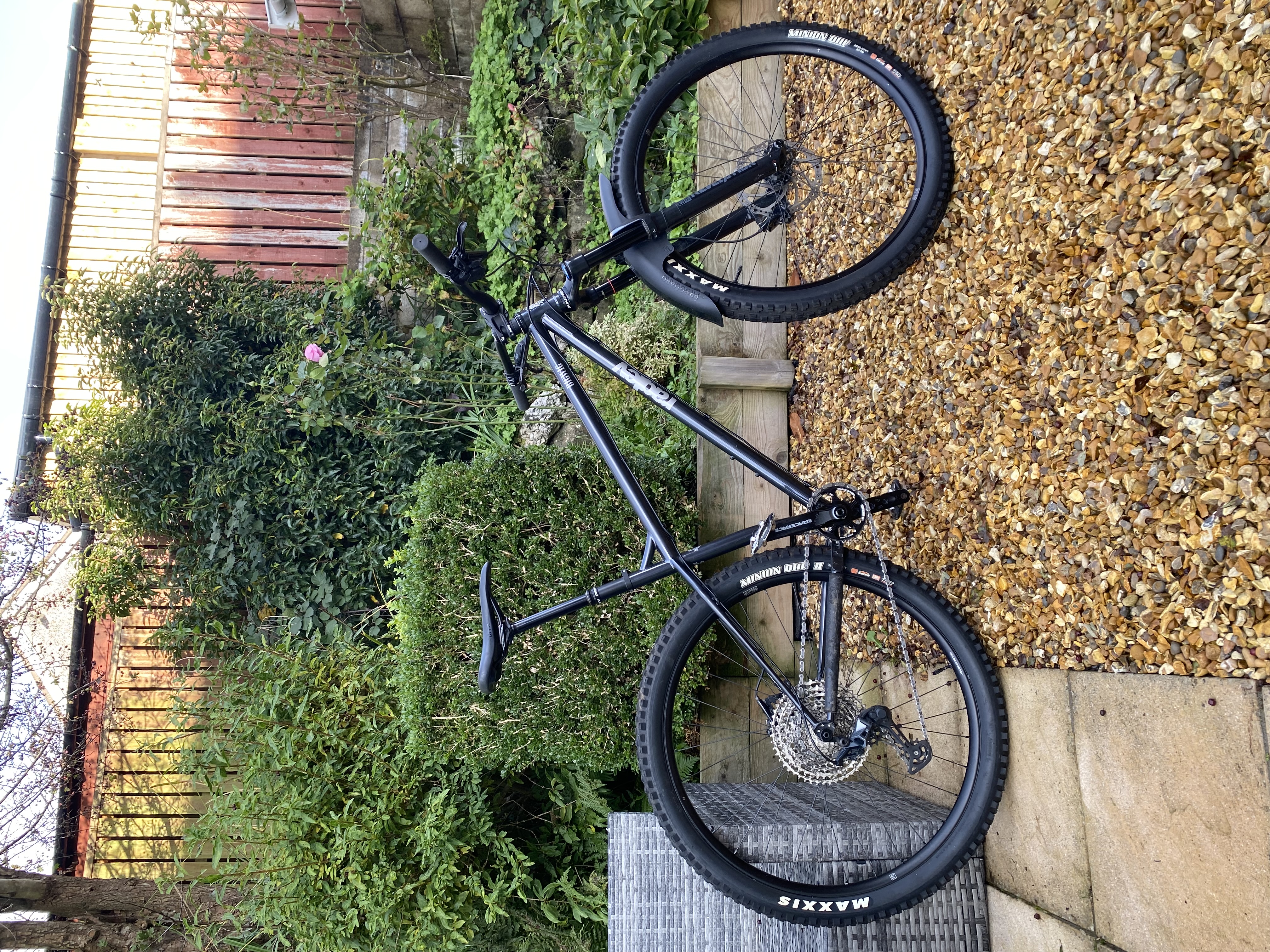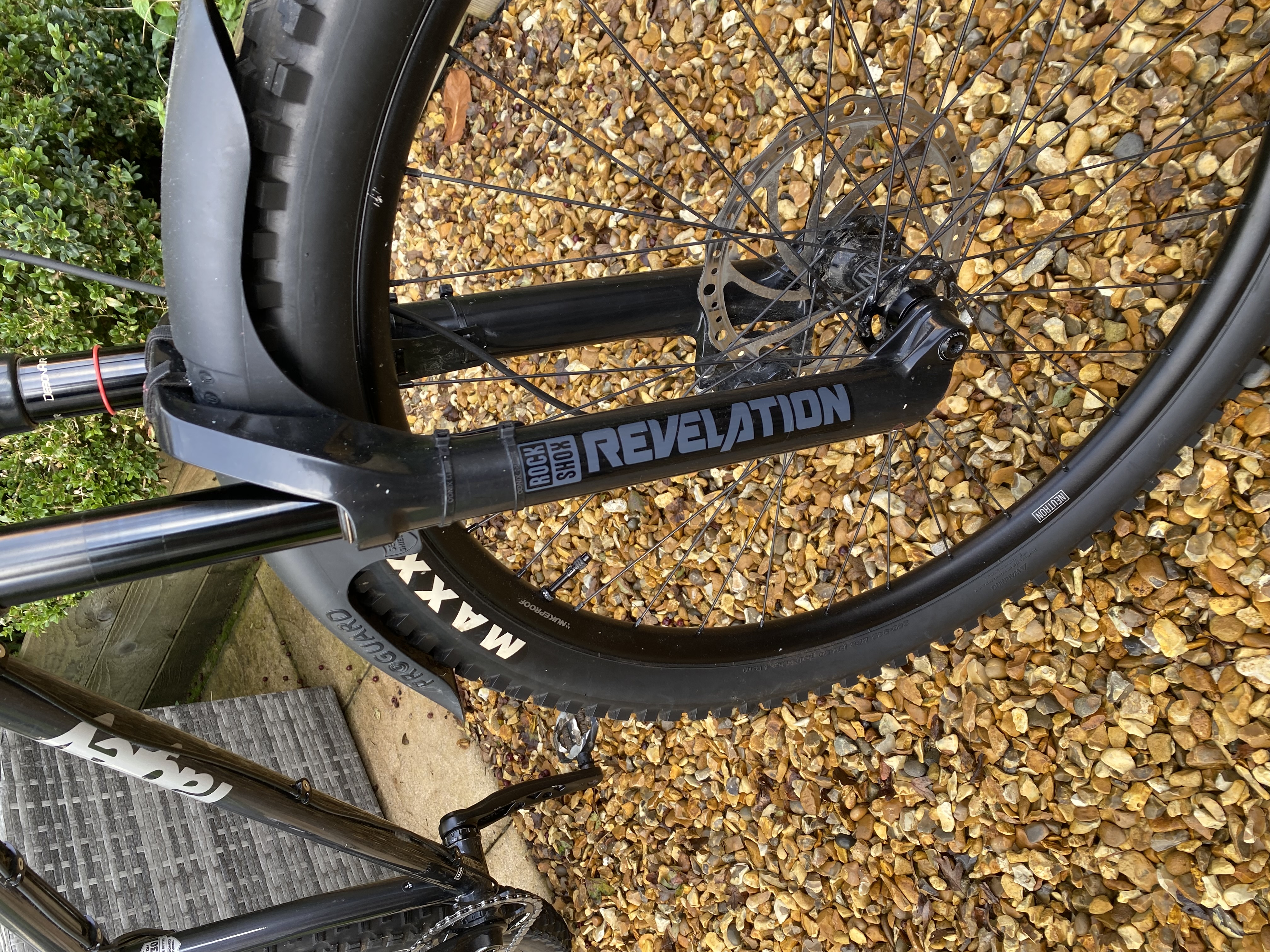 Wheelset: Nukeproof Neutron tubeless ready shod with Maxxis Minion DHR & DHF tubeless tyres. (Set up tubeless with Stans sealant).
